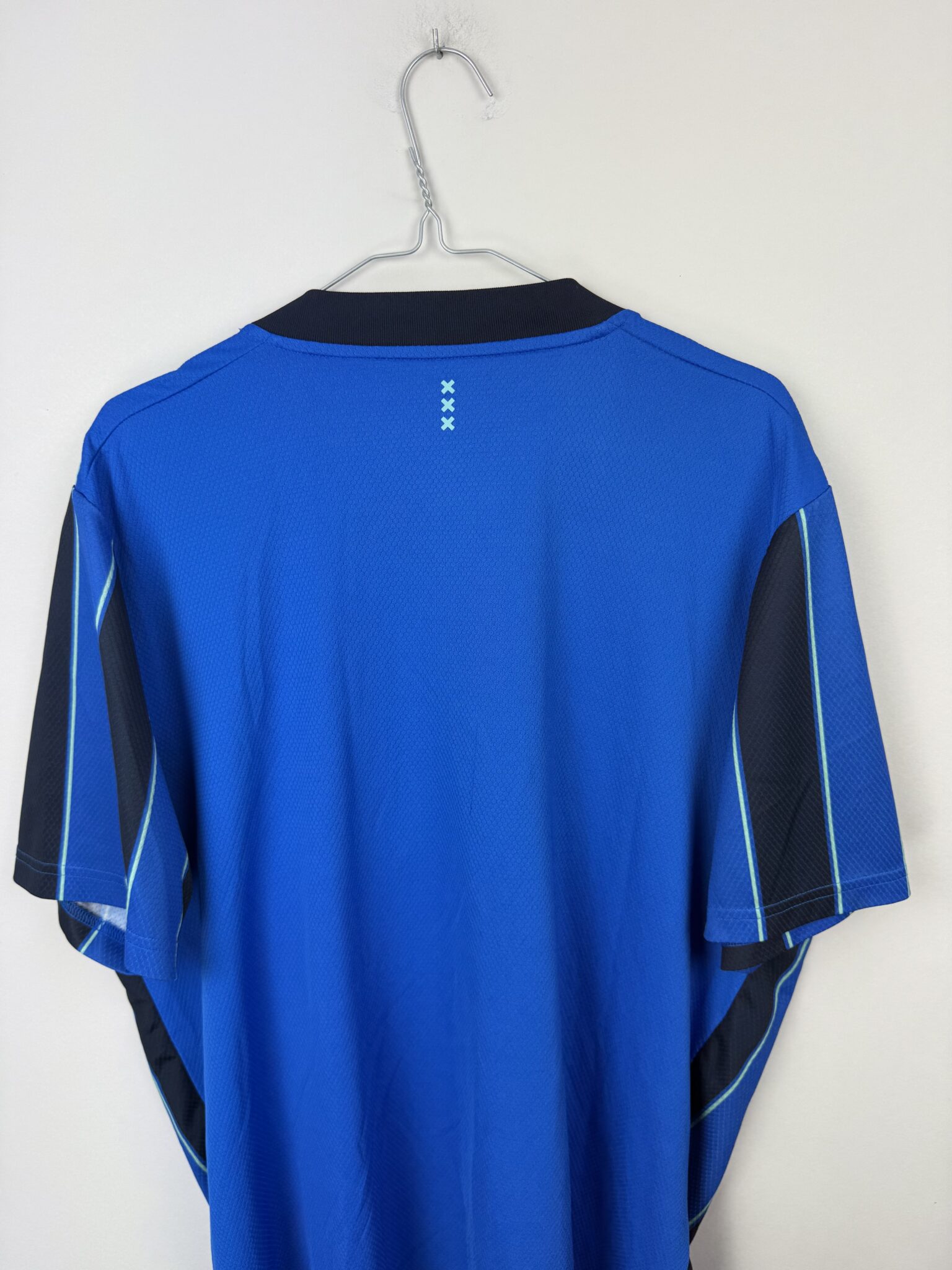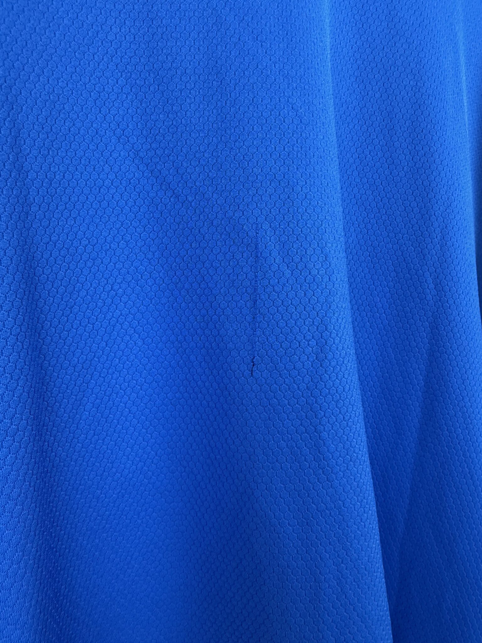 Stan: Zadowalający – mikro zaciągnięcie na froncie oraz cienkie rozcięcie materiału na plecach.