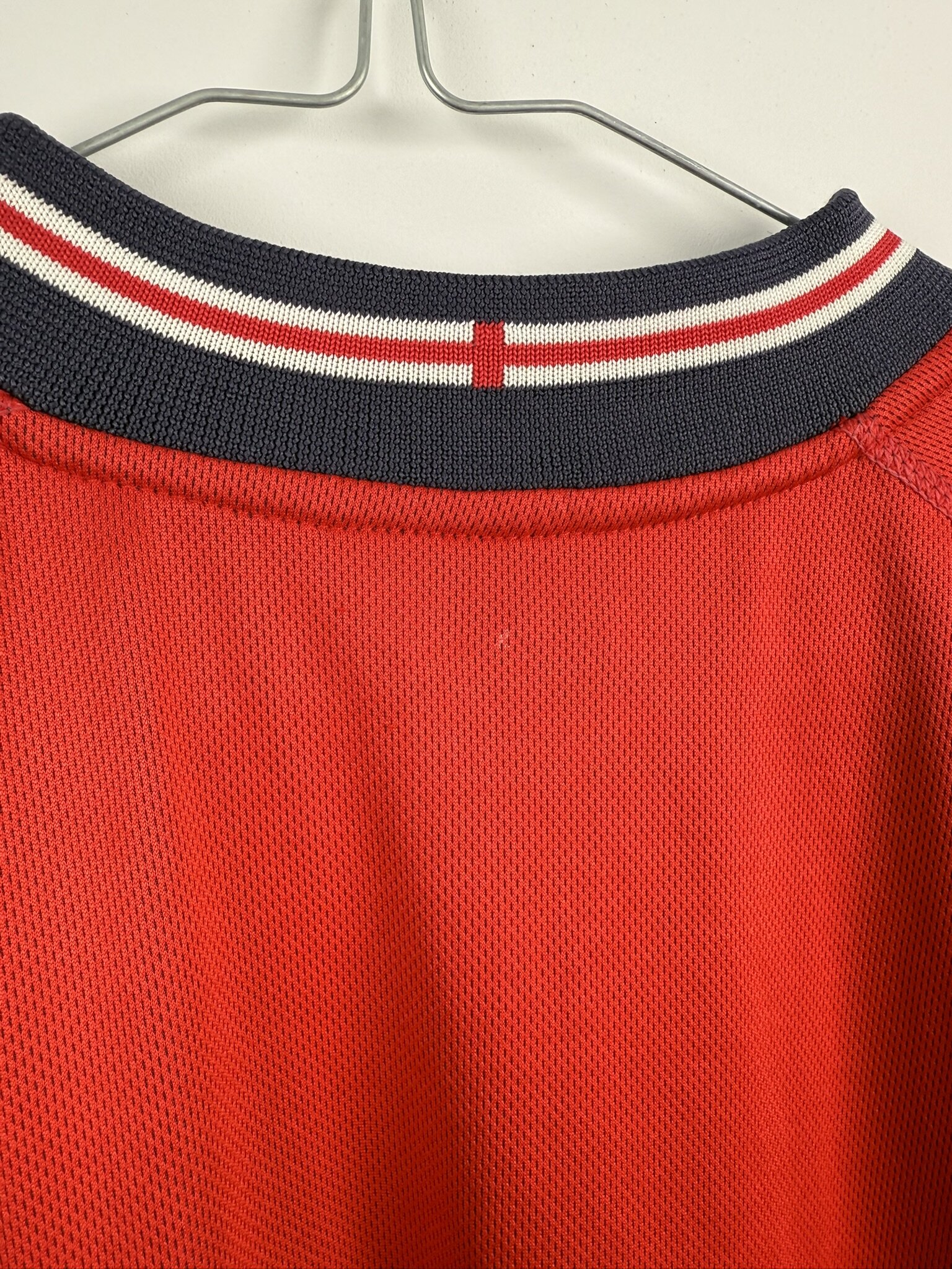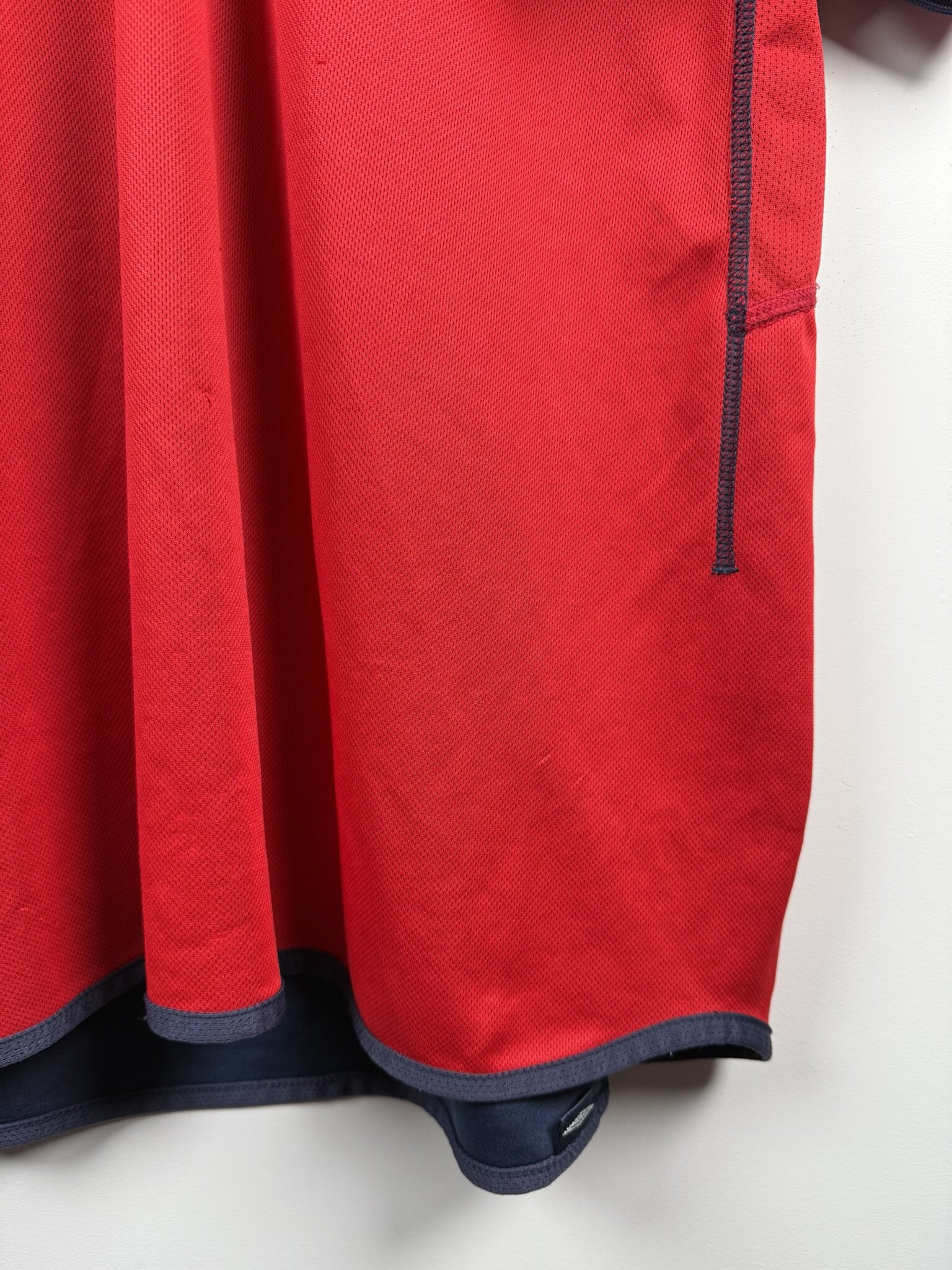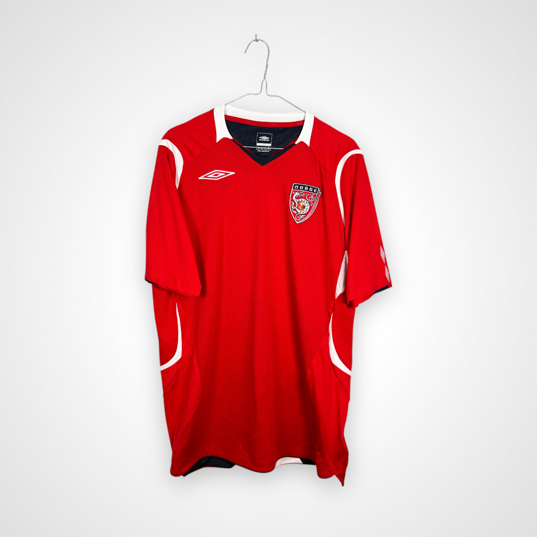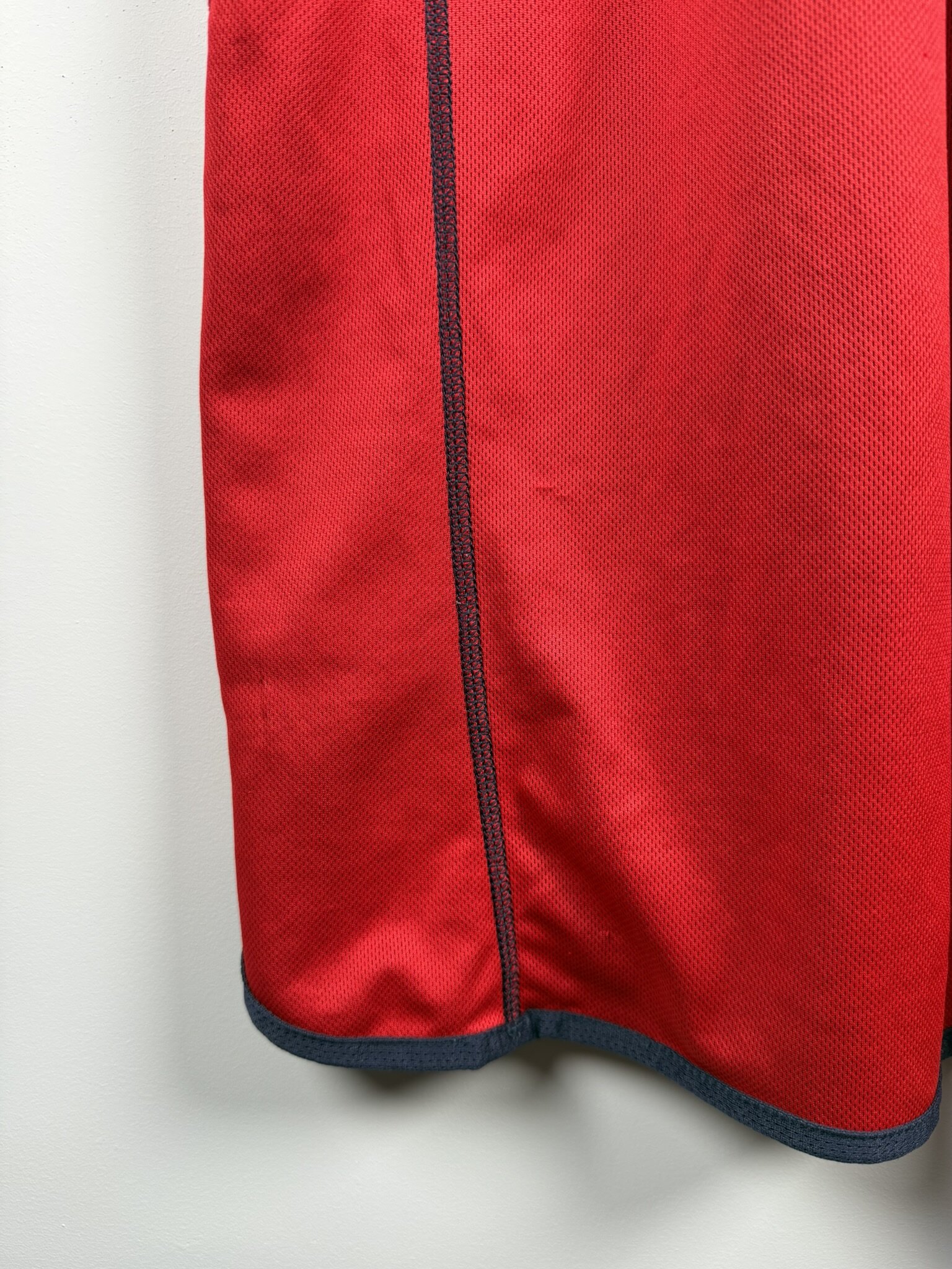 Oryginalna wyjazdowa koszulka reprezentacji Anglii produkcji Umbro z lat 2002-04. Lwy Albionu wystąpiły w tych trykotach podczas Mundialu rozgrywanego w 2002 roku w Japonii i Korei, gdzie odpadli w 1/4 finału, przegrywając z przyszłymi zwycięzcami turnieju, czyli reprezentacją Brazylii, w której szalał wtedy legendarny Luis Nazario De Lima, popularny Ronaldo.