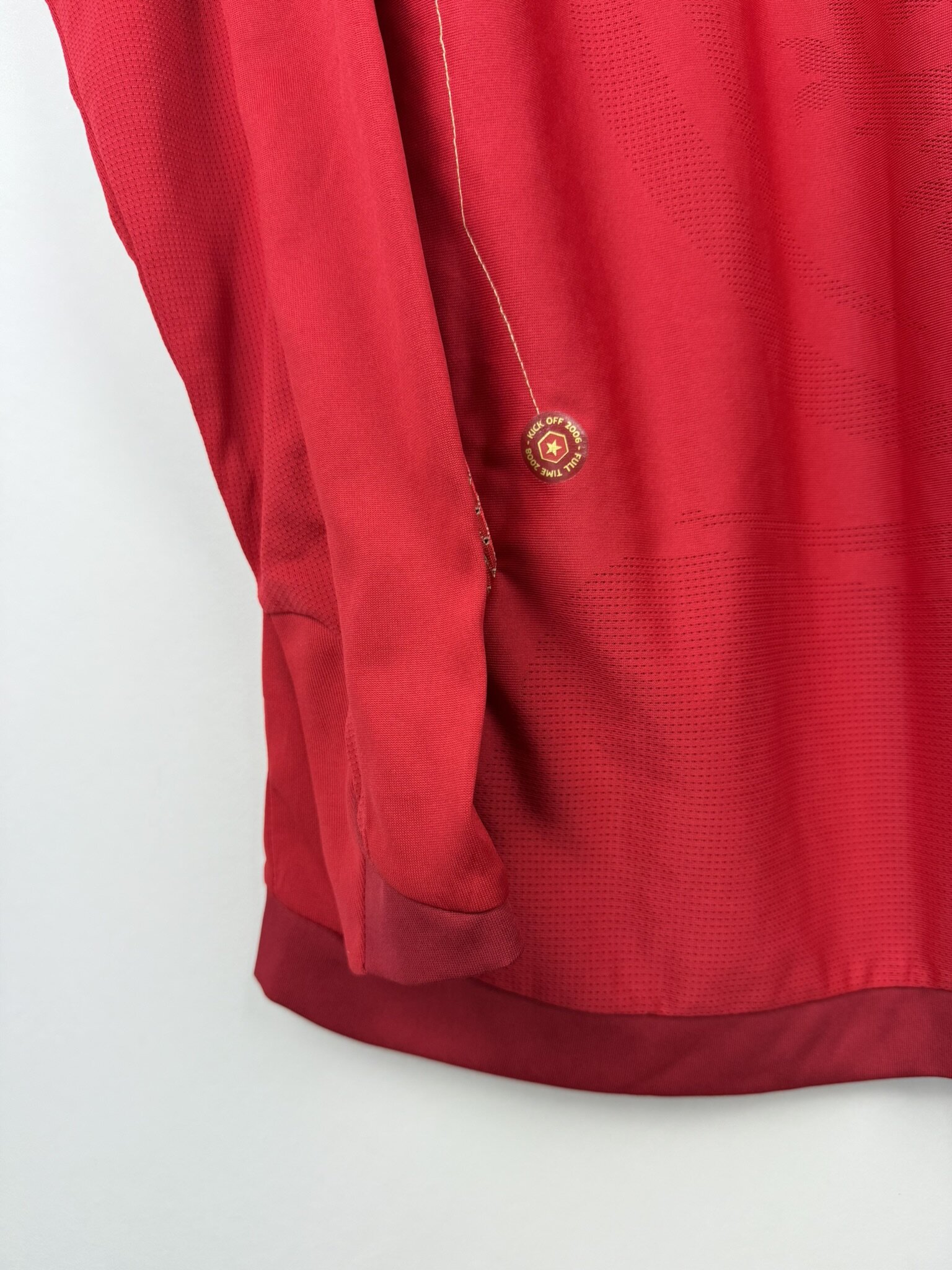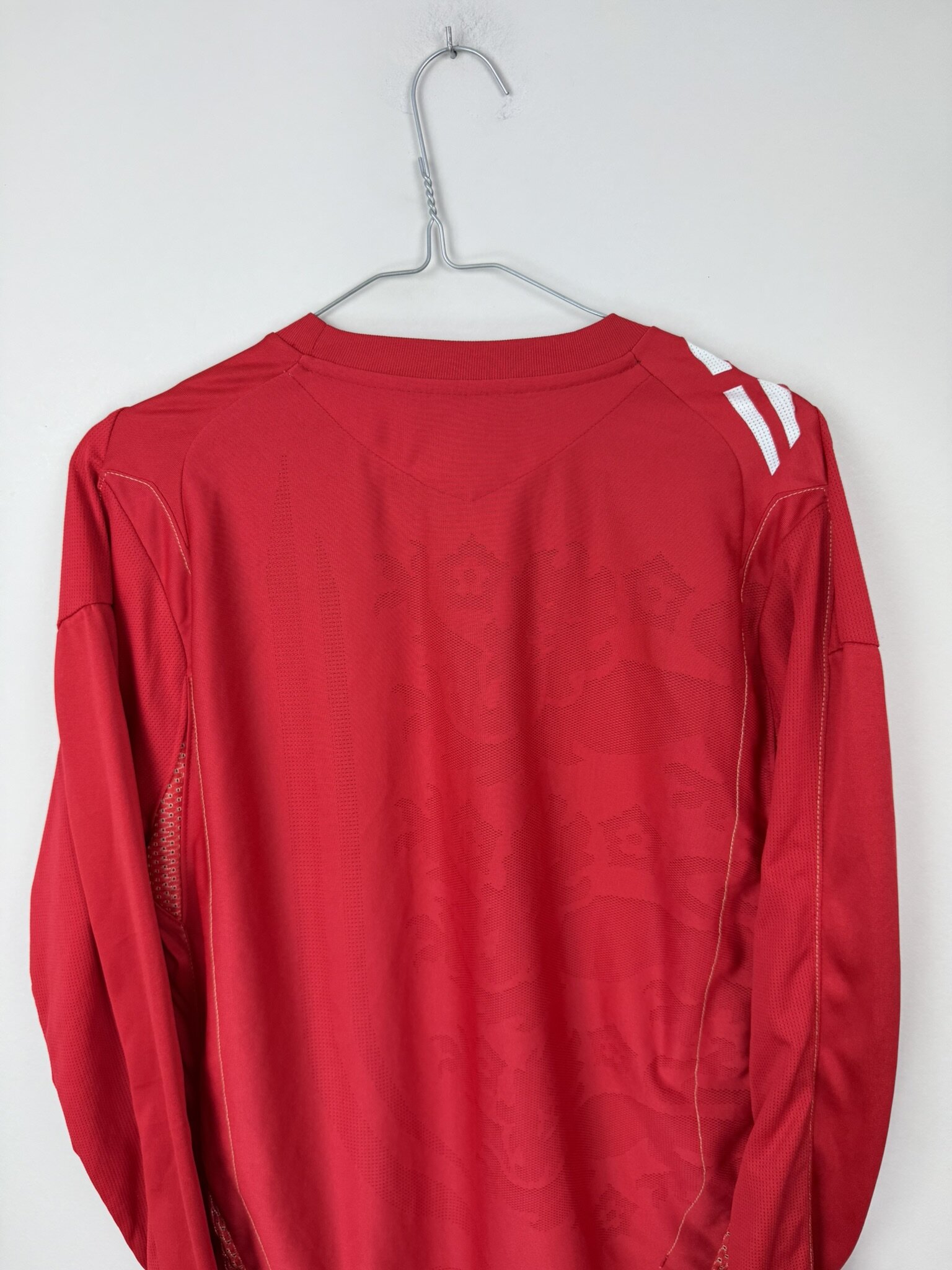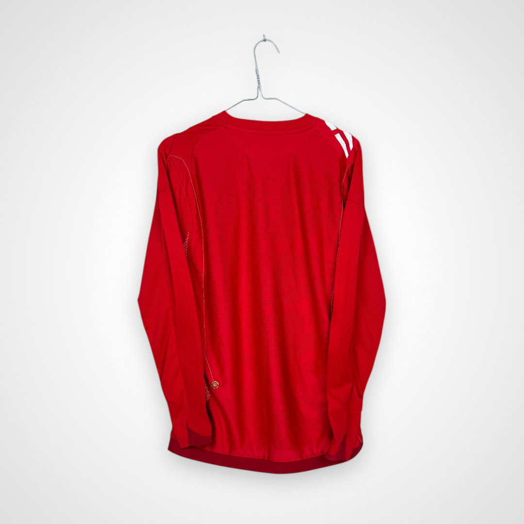 Ta oryginalna wyjazdowa koszulka reprezentacji Anglii z lat 2006–2008, wyprodukowana przez Umbro, to klasyczny model w czerwonym kolorze, który od dekad stanowi ikoniczny element wizerunku „Synów Albionu”. Egzemplarz w wersji z długim rękawem wyróżnia się eleganckim i minimalistycznym designem, charakterystycznym dla koszulek narodowych tego okresu.