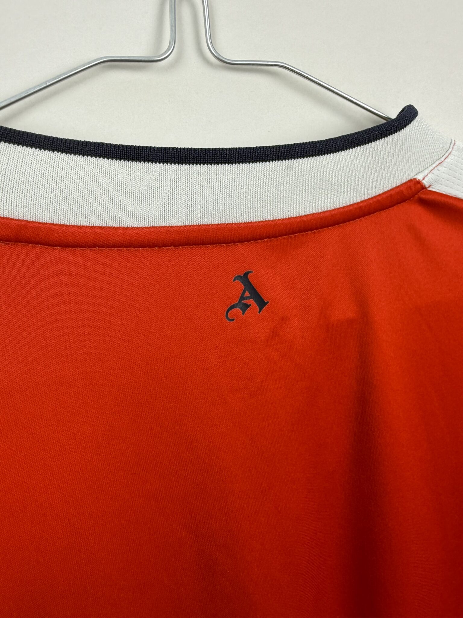Stan: Dobry – popękana nalepka na froncie oraz przebarwiony materiał na rękawku.