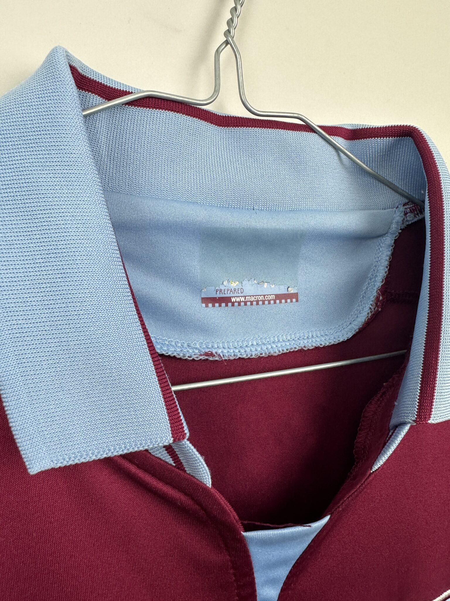Stan: Zadowalający – popękane nadruki producenta na ramionach i sponsora na froncie, przetarty materiał z dołu koszulki oraz starta nalepka z rozmiarem na froncie.