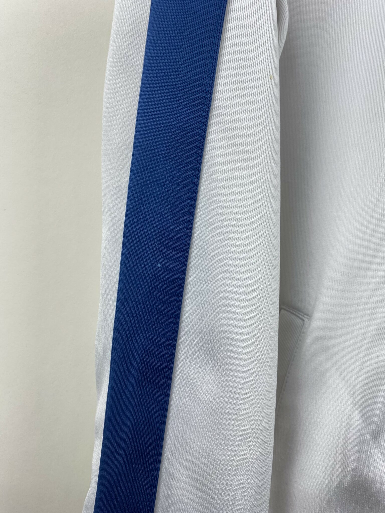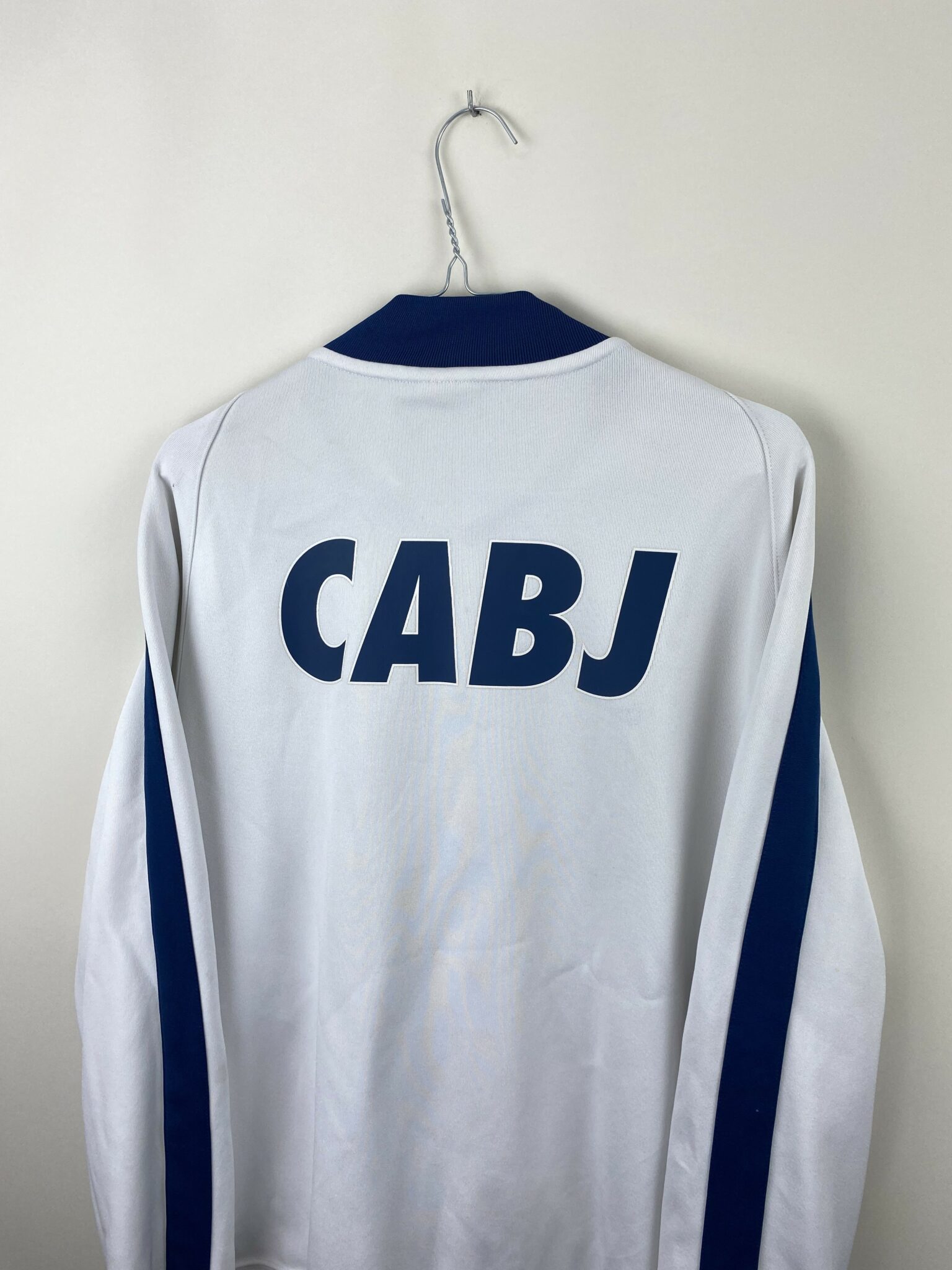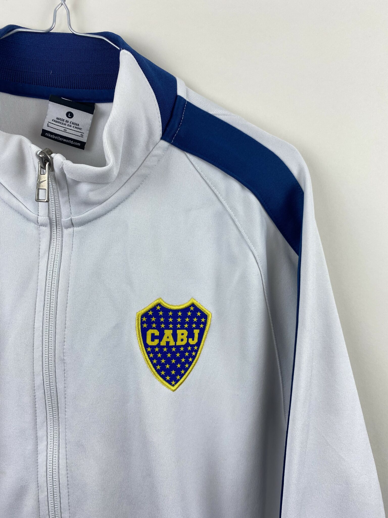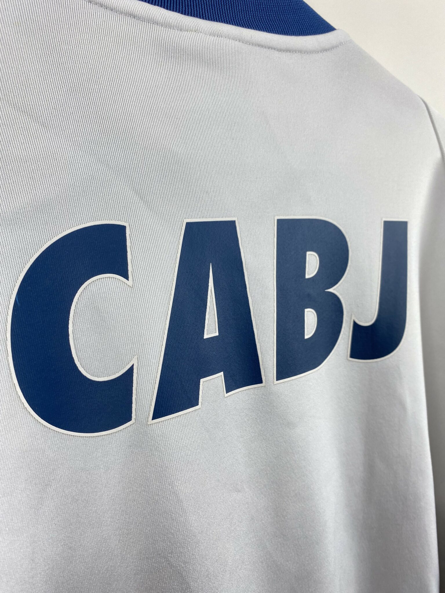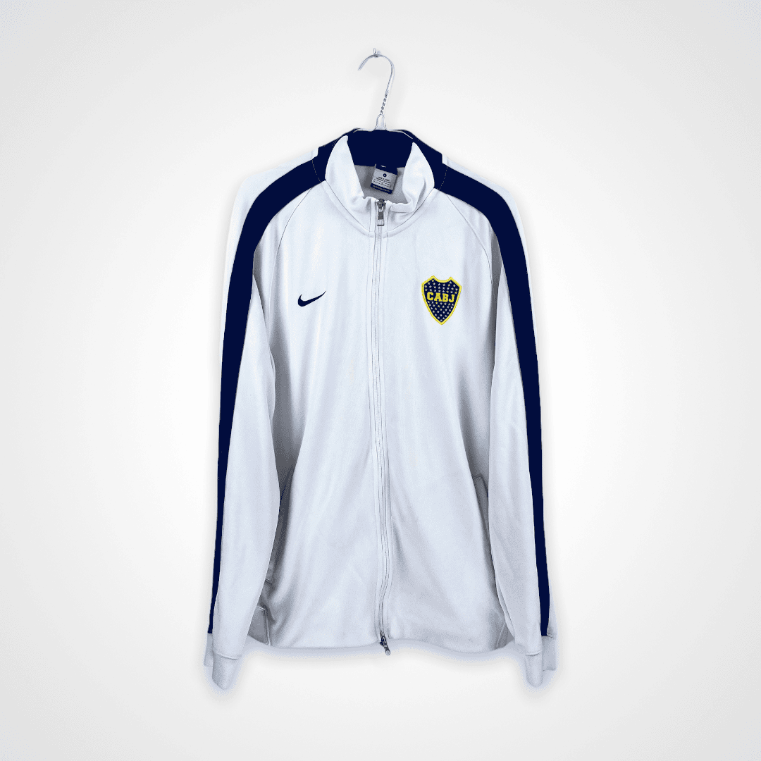 Ta elegancka bluza Boca Juniors Nike utrzymana jest w klasycznym białym kolorze, z charakterystycznym niebieskim paskiem na rękawach, nawiązującym do tradycyjnych barw klubu. Na plecach znajduje się duży napis CABJ, symbolizujący nazwę drużyny, a po lewej stronie piersi widnieje oficjalny herb Boca Juniors, podkreślający autentyczność i oficjalny charakter modelu.