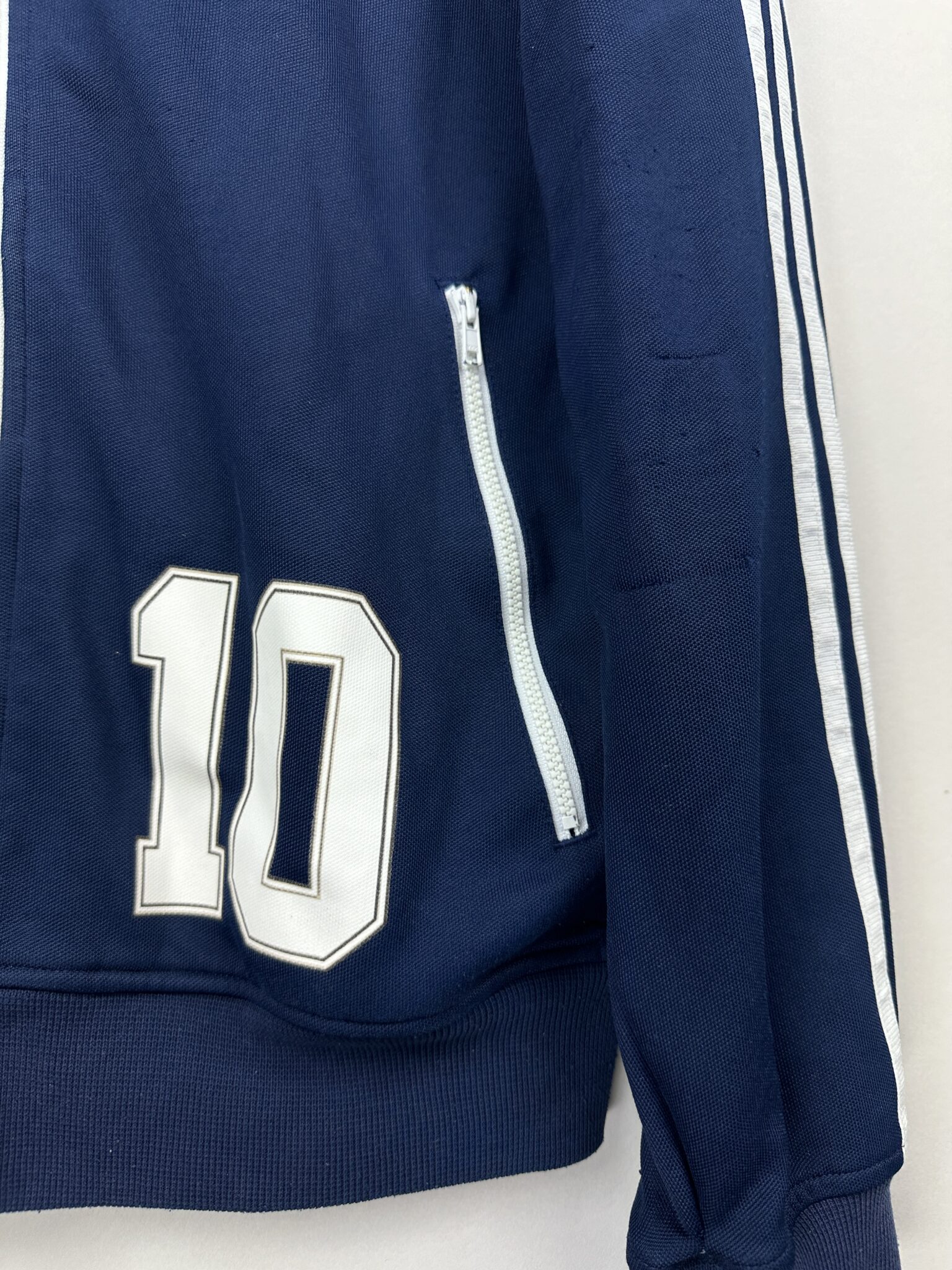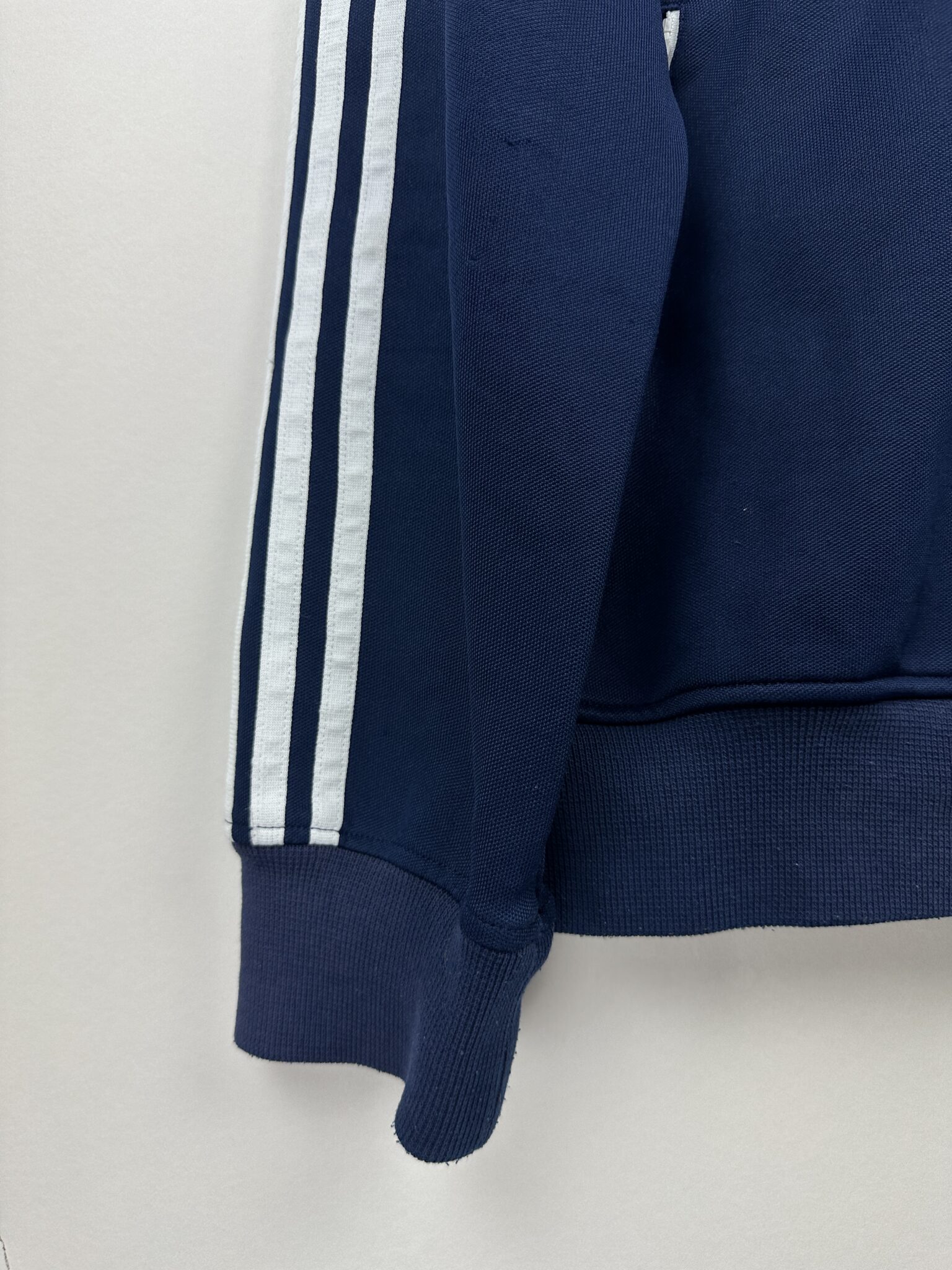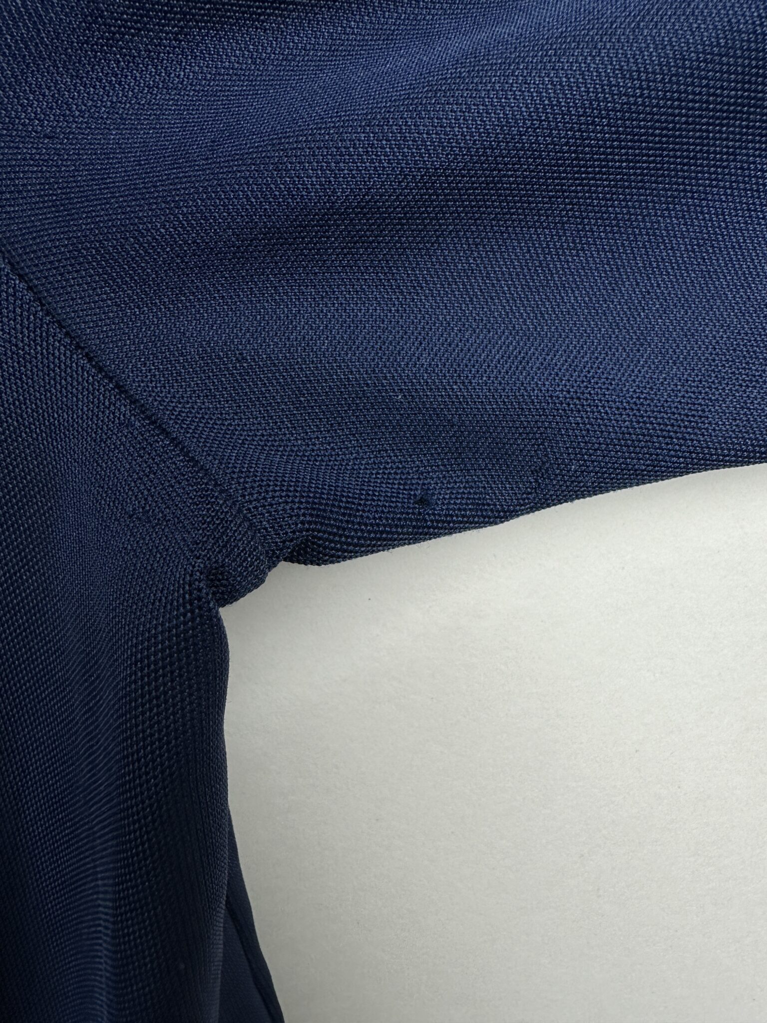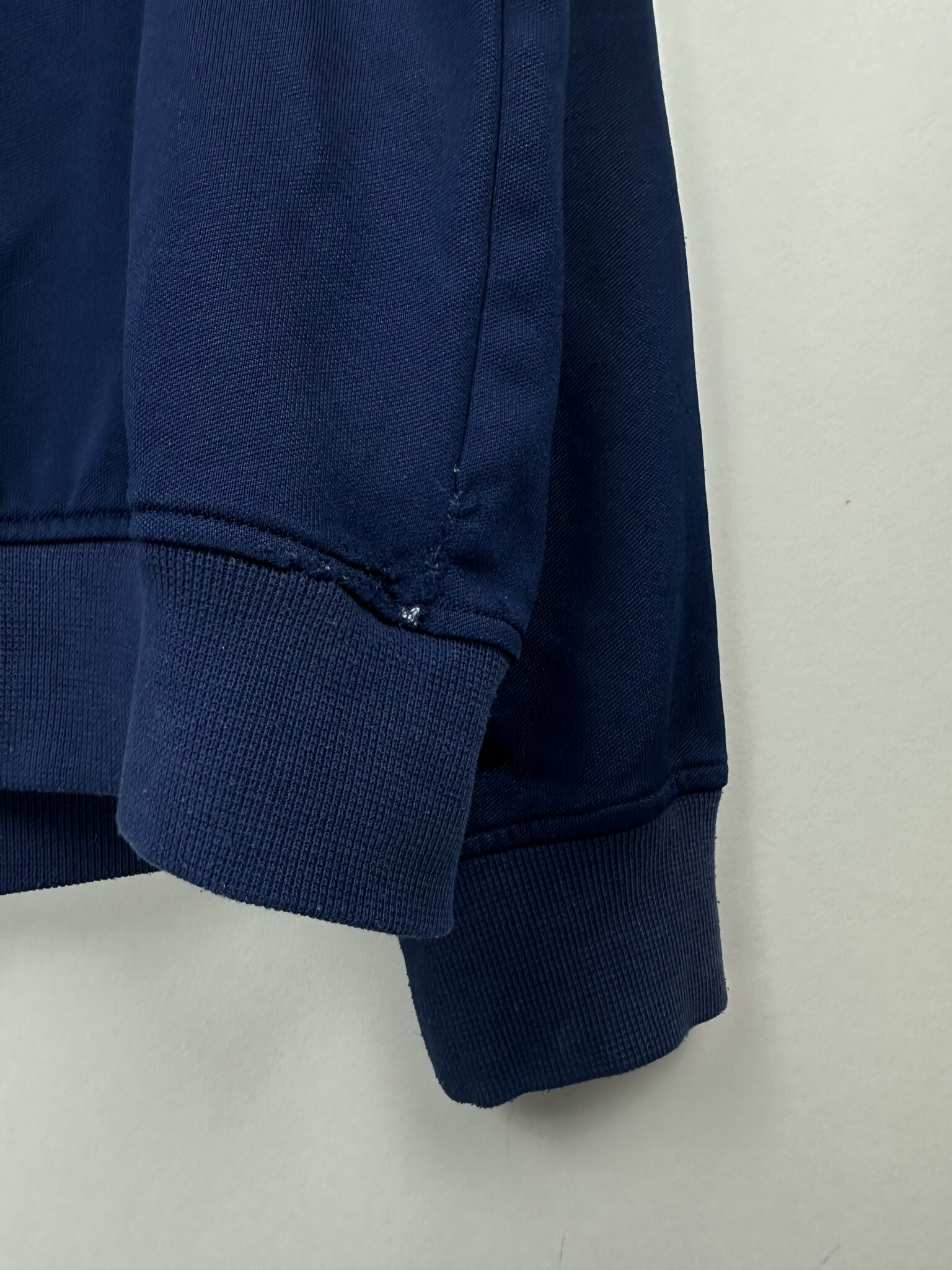 Stan: Zadowalający – mała dziurka na rękawie, ślady po zaszytych dziurach u dołu bluzy, trochę zaciągnięć oraz kilka zmechaceń materiału