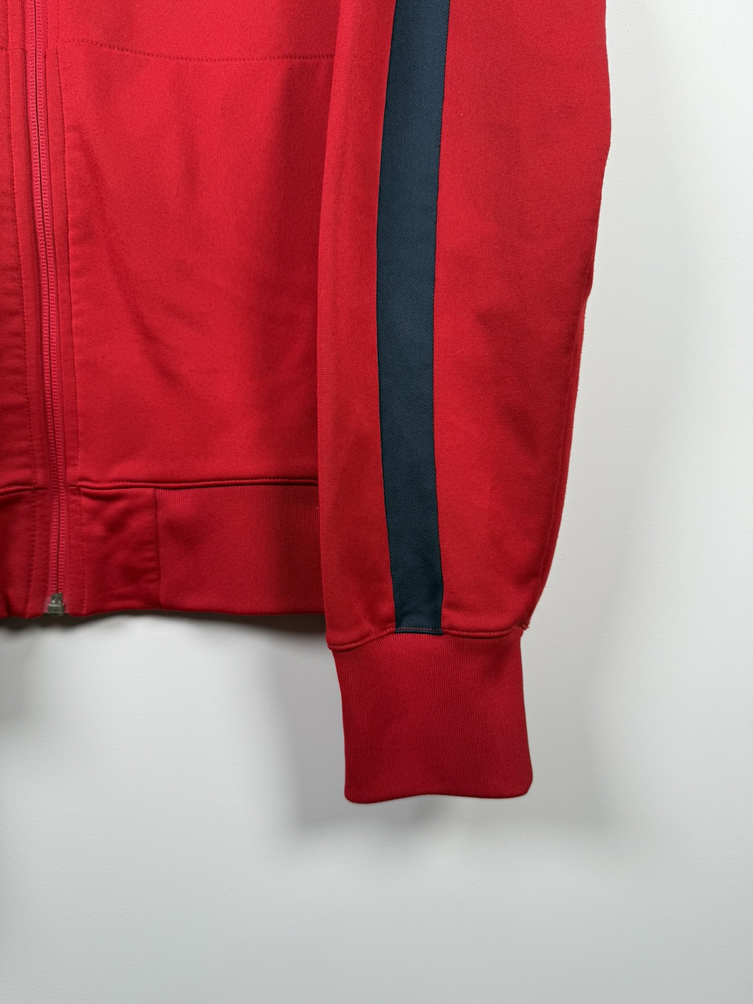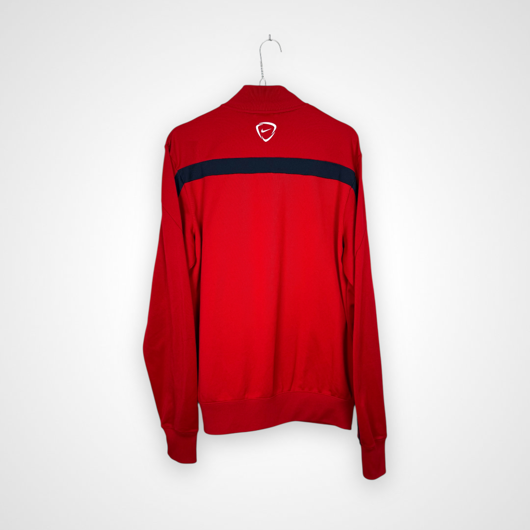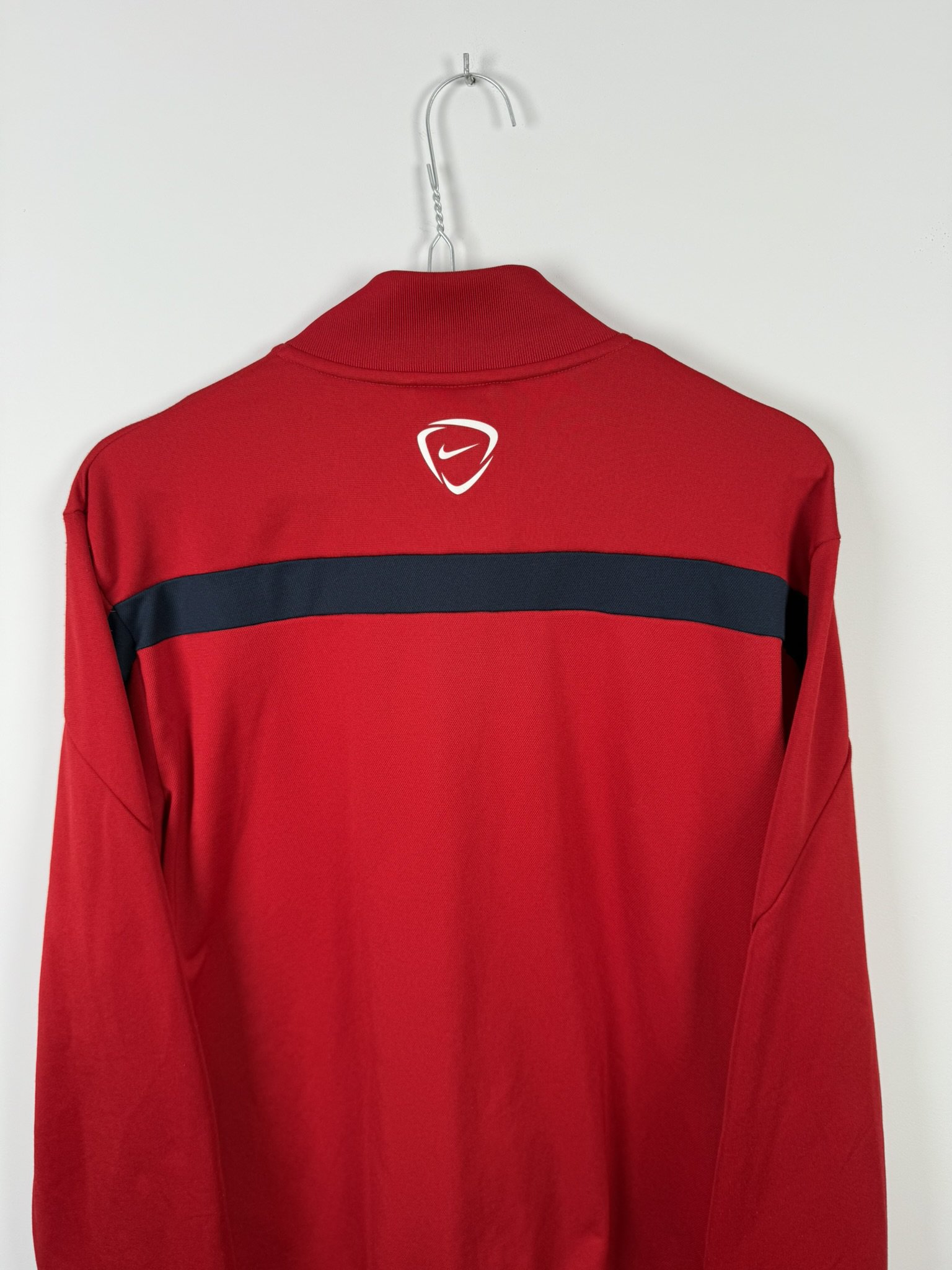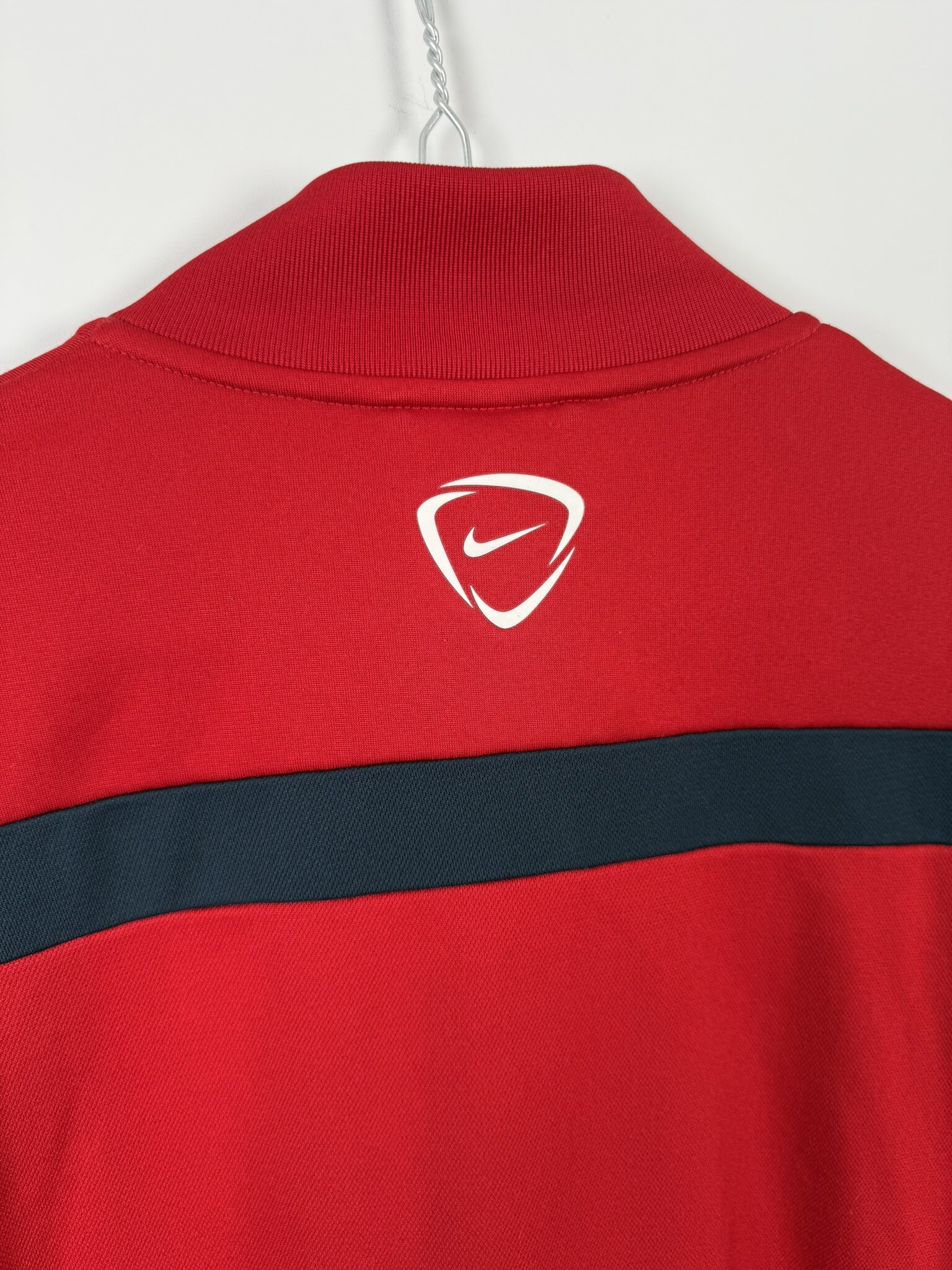 Ta oryginalna rozpinana bluza reprezentacji Francji z lat 2014-16 to idealny wybór dla fanów Trójkolorowych oraz kolekcjonerów odzieży sportowej najwyższej jakości. Wykonana przez Nike, oficjalnego dostawcę sprzętu dla francuskiej kadry, utrzymana jest w eleganckiej czerwonej kolorystyce z subtelnymi akcentami w narodowych barwach Francji. Na piersi dumnie prezentuje się herb z charakterystycznym kogutem – symbolem Les Bleus, a obok niego wyhaftowane logo Nike.