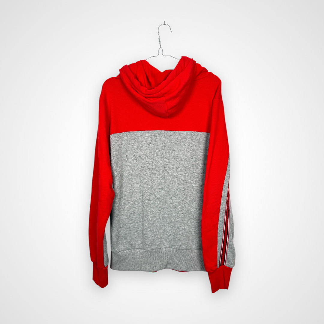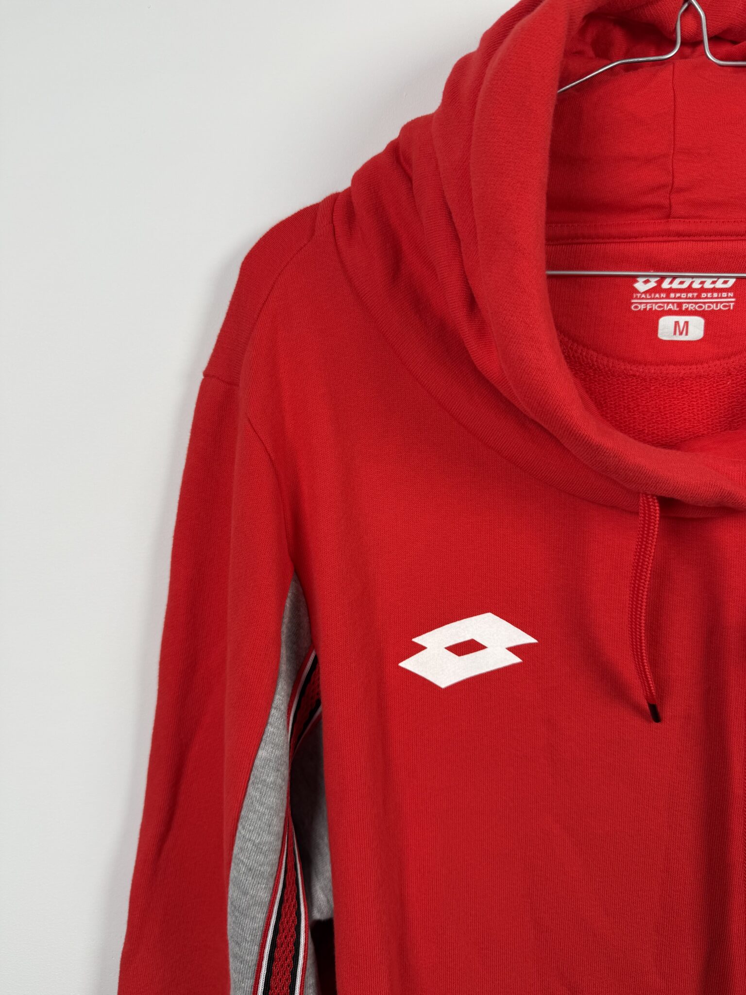 Oryginalna bawełniana bluza z kapturem FSV Mainz 05 z sezonu 2015/16, wyprodukowana przez Lotto. Wygodna i ciepła, idealna na co dzień oraz do kibicowania ulubionej drużynie. Na froncie widnieje herb Mainz 05 i logo Lotto, co podkreśla autentyczny charakter odzieży. Świetny wybór dla fanów niemieckiego klubu i kolekcjonerów piłkarskich gadżetów.