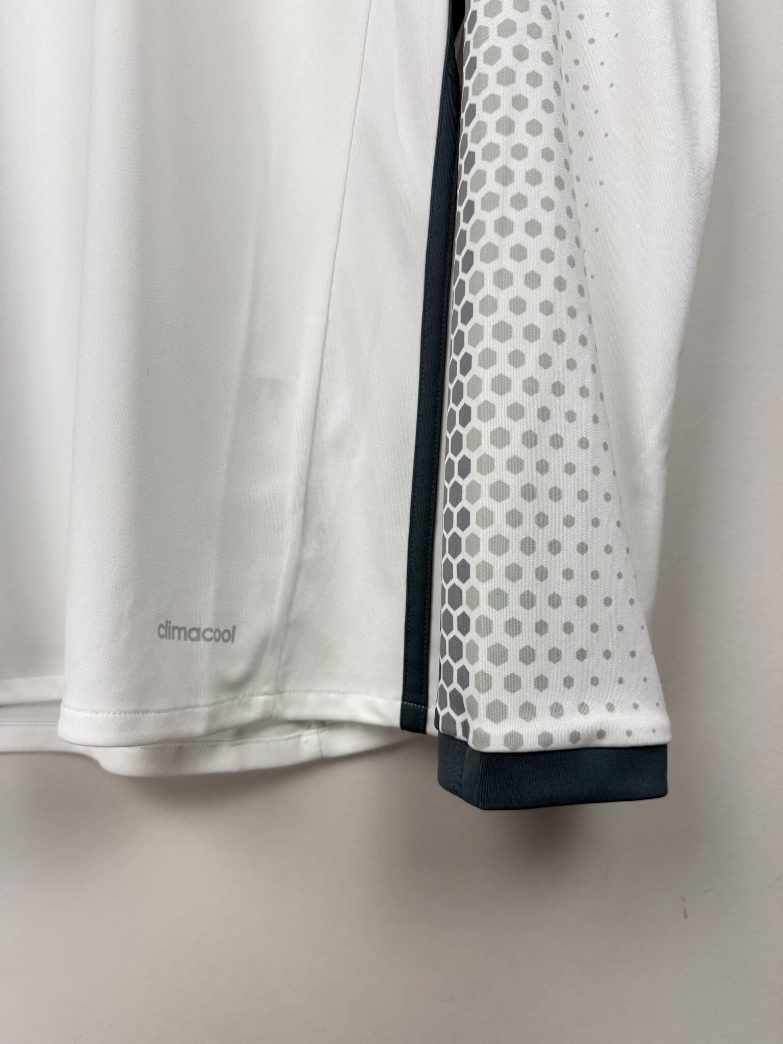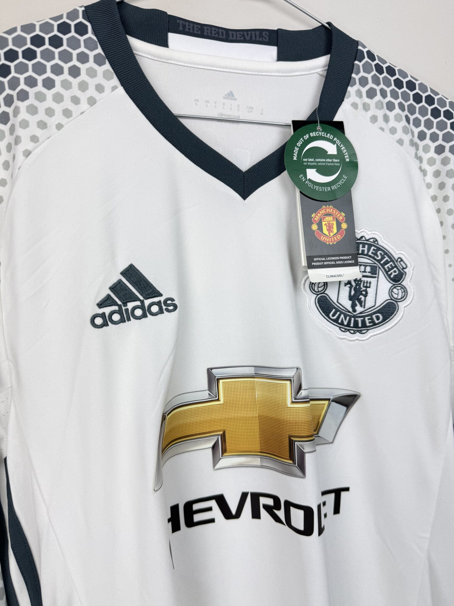 Ten model utrzymany jest w stonowanej, grafitowej kolorystyce. Na froncie widnieje haftowany herb Manchester United, kontrastujące logo Adidas oraz nadruk sponsora Chevrolet. Długi rękaw dodaje jej elegancji i klasy, a wysoka jakość wykonania oraz technologia Adidas Climacool zapewniają komfort noszenia i optymalną wentylację. Na plecach znajduje się oficjalny nadruk meczowy z numerem 9 i nazwiskiem Ibrahimović, który w swoim debiutanckim sezonie na Old Trafford zachwycał kibiców skutecznością i charyzmą.