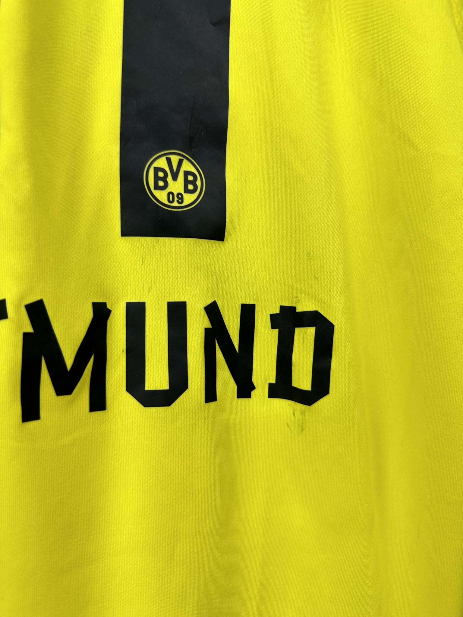 Stan: Bardzo dobry – zabrudzenie materiału w okolicy napisu 'Dortmund’ z tyłu koszulki.