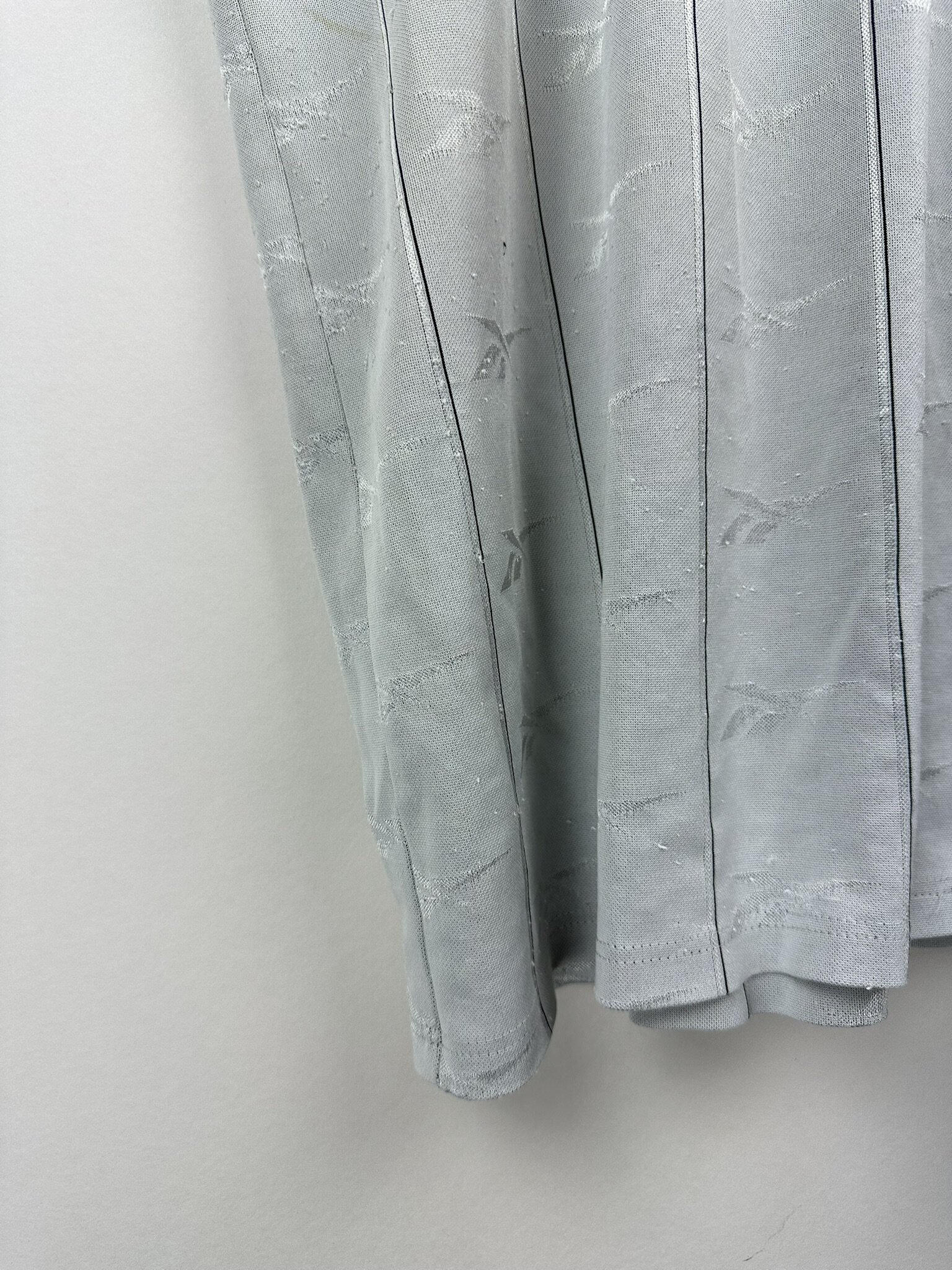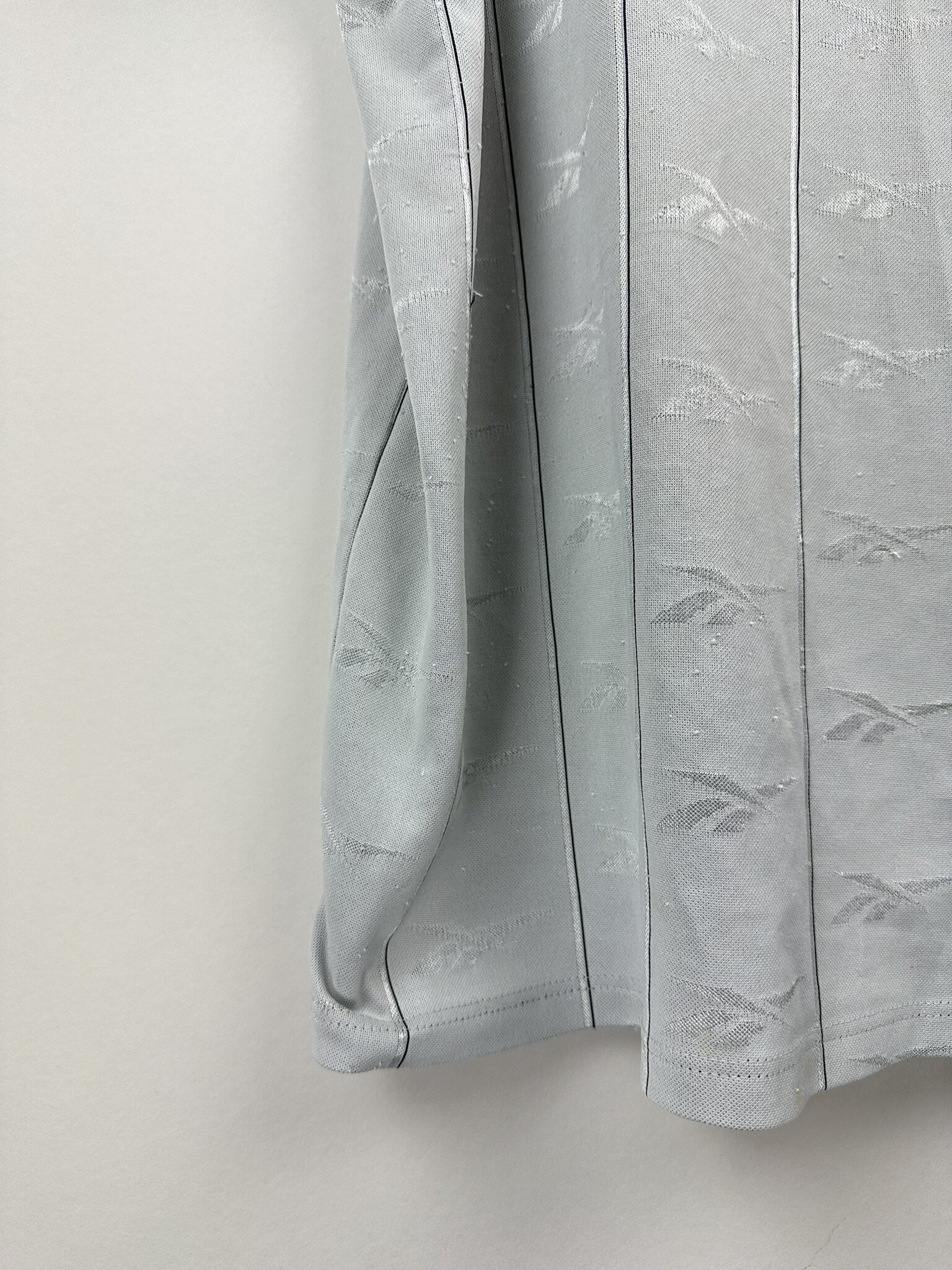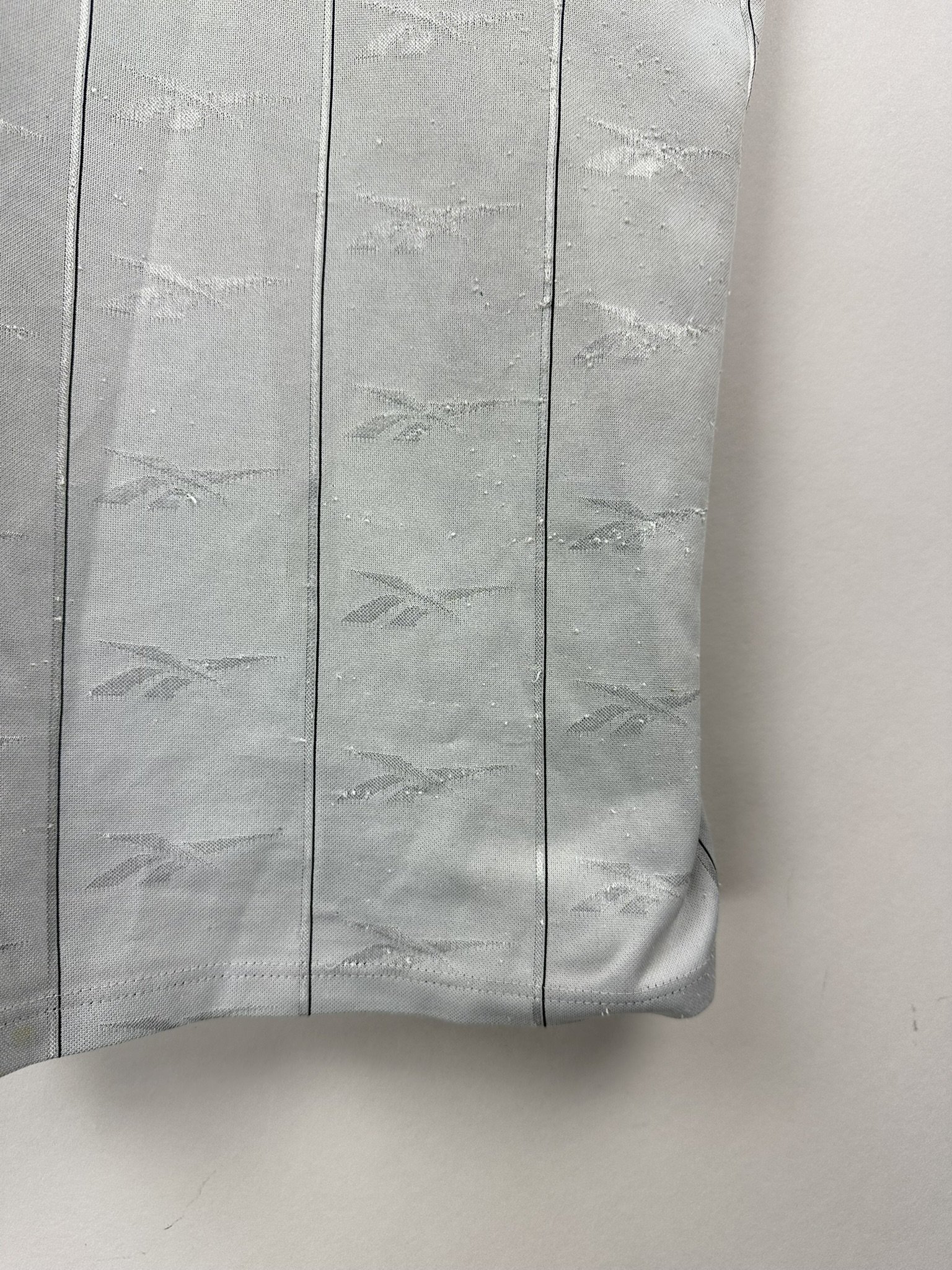 Stan: Słaby – uszkodzony nadruk sponsora na froncie oraz bardzo dużo mikro zaciągnięć na całej powierzchni koszulki.