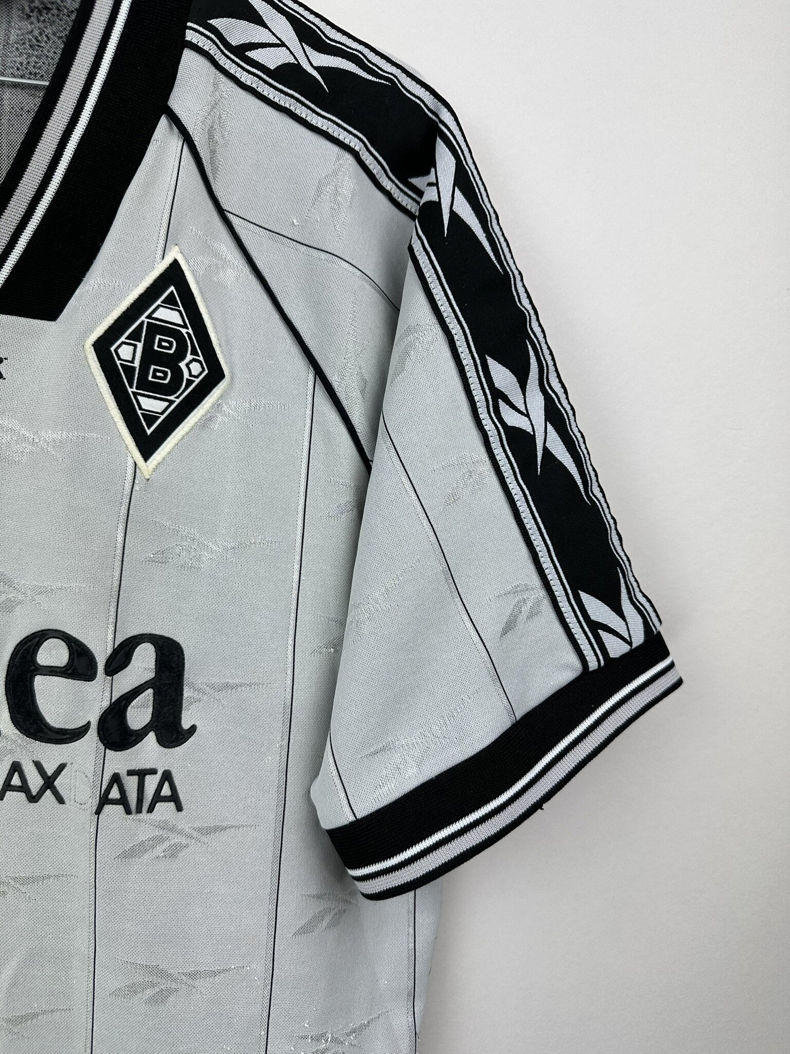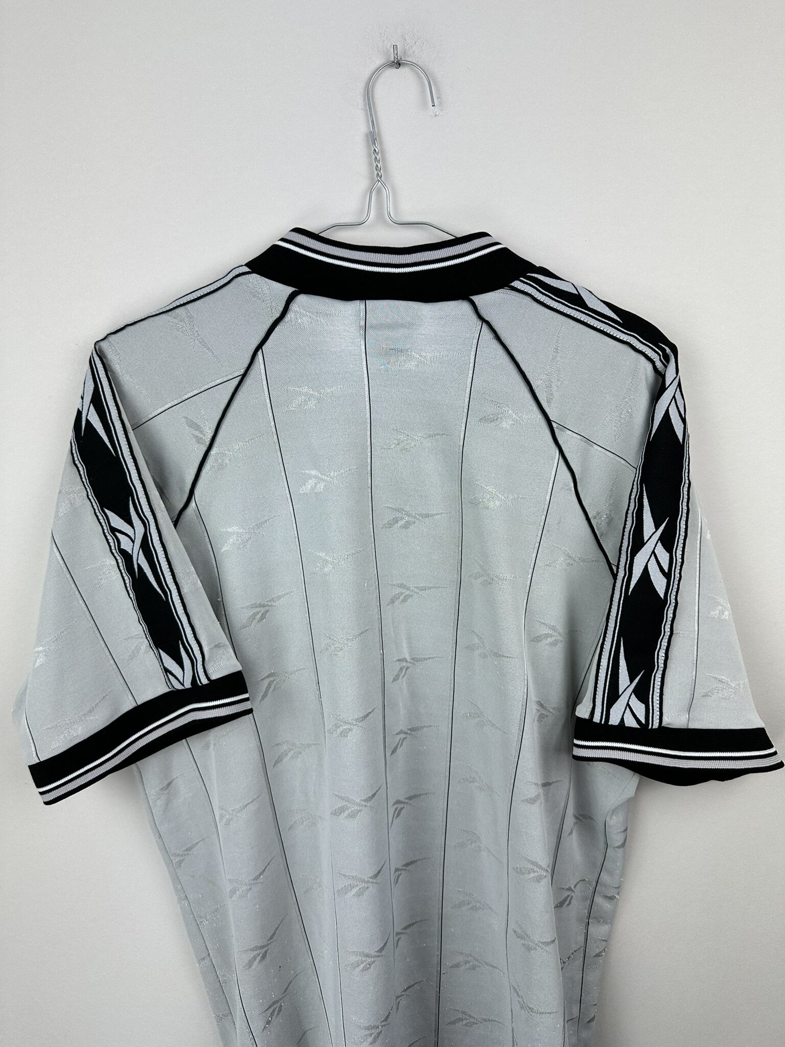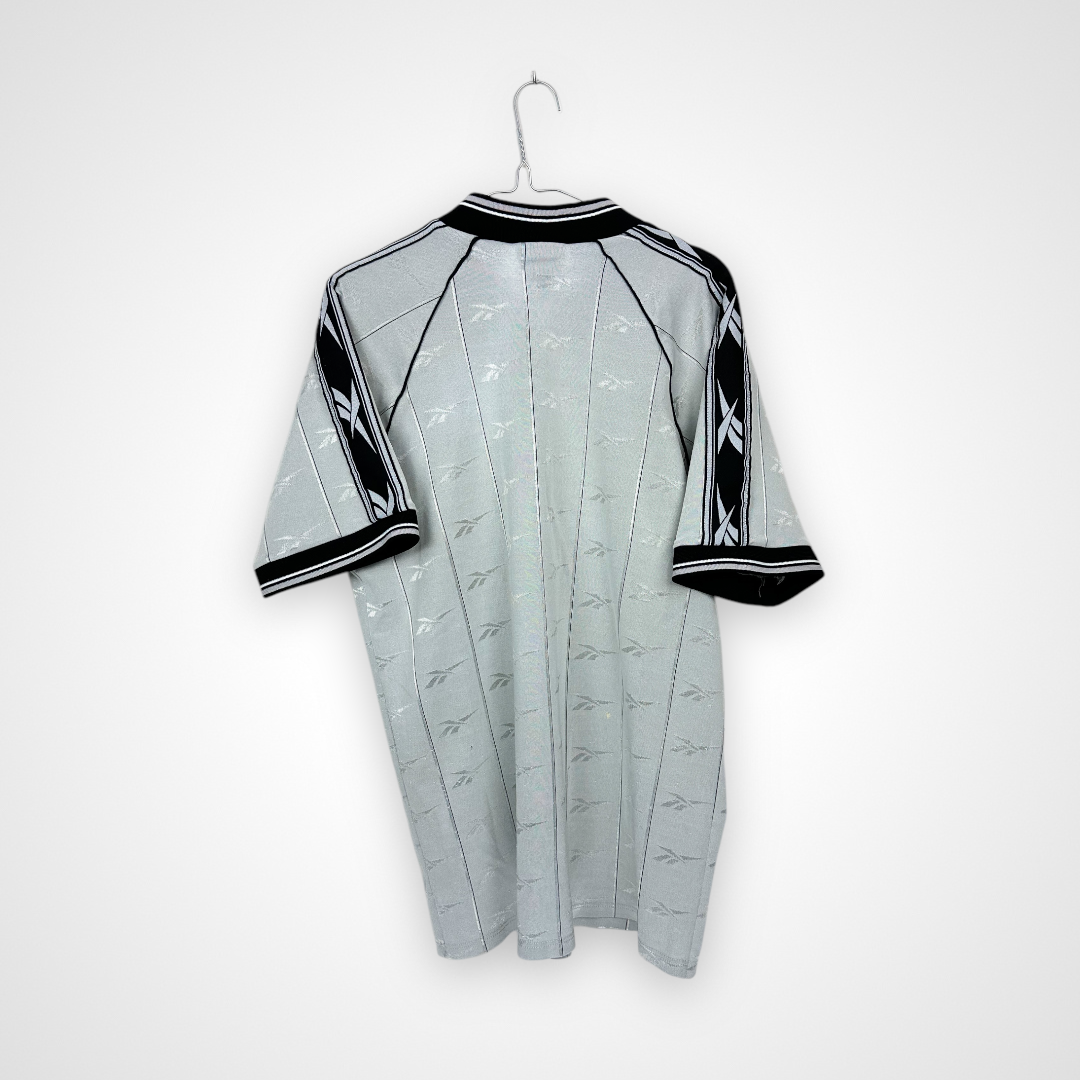 Stan: Słaby – uszkodzony nadruk sponsora na froncie oraz bardzo dużo mikro zaciągnięć na całej powierzchni koszulki.