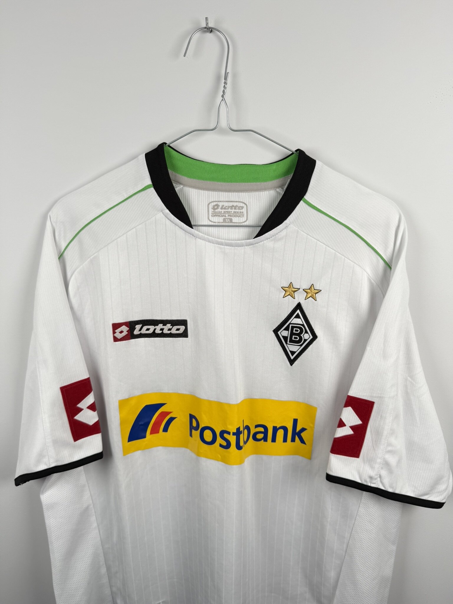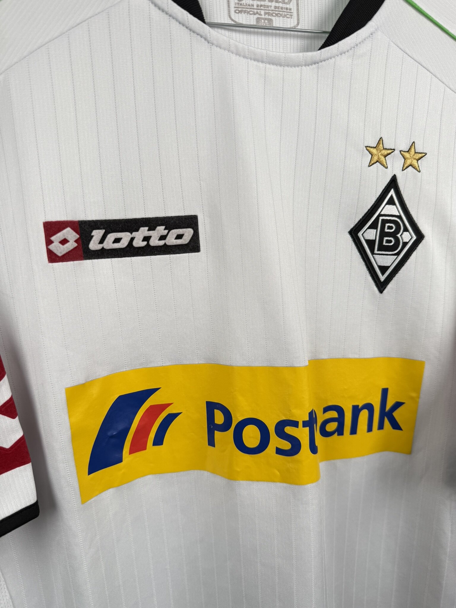 Oryginalna koszulka piłkarska Borussi Monchengladbach z sezonu 2012/13 produkcji włoskiej marki Lotto.