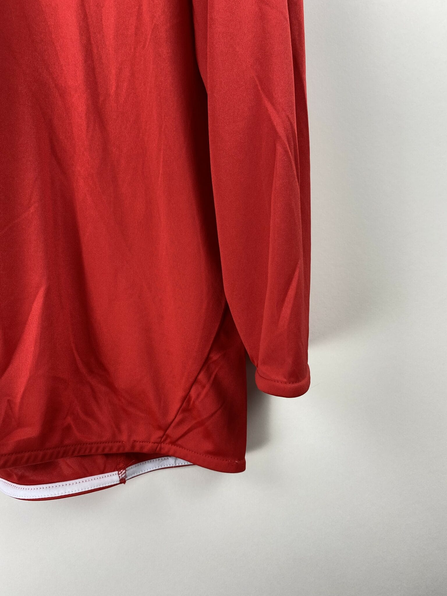 Ta wyjątkowa domowa koszulka Brann Bergen 2008/09 utrzymana jest w intensywnym krwistoczerwonym kolorze, z klasycznym długim rękawem (longsleeve), który nadaje jej elegancki i sportowy charakter. Na froncie koszulki widnieje logo sponsora Sparebanken Vest, a na plecach umieszczono logo dodatkowego sponsora Chess, co podkreśla autentyczność i profesjonalny charakter modelu.