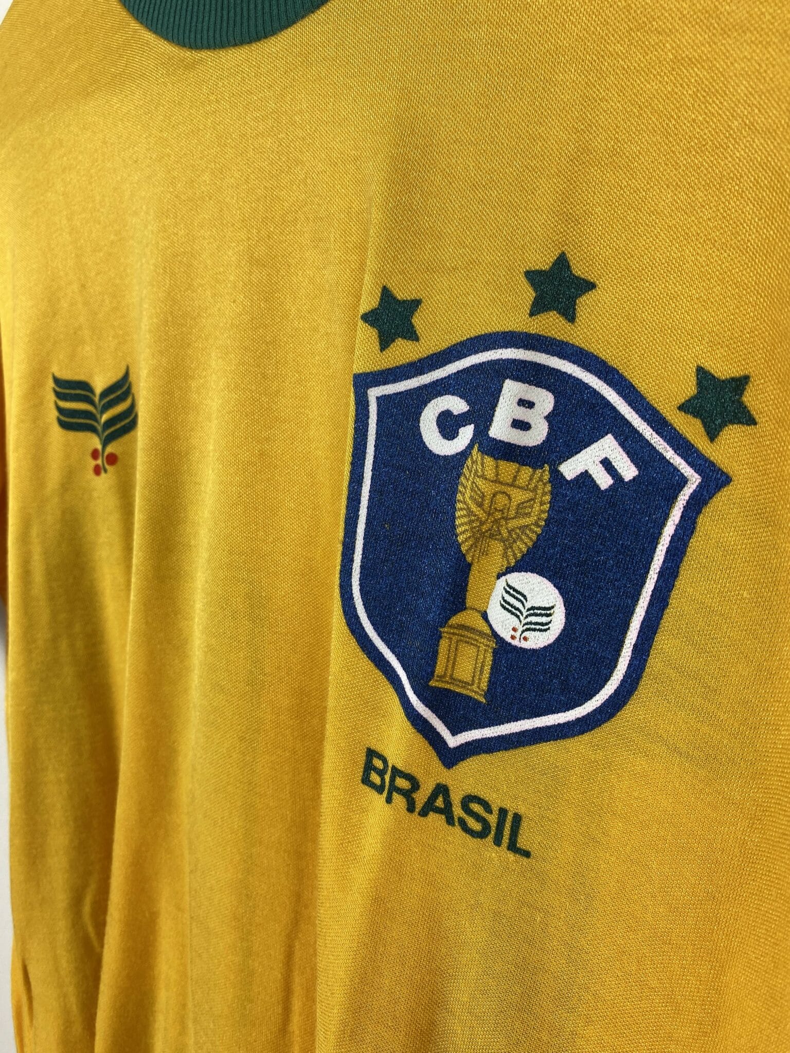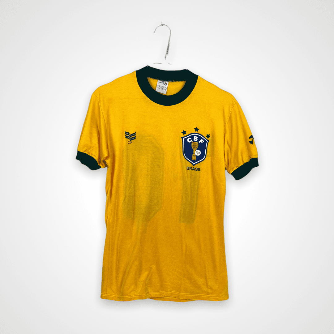 Oryginalna koszulka piłkarska reprezentacji Brazylii z sezonu 1981/82 – produkcji Agatas (europejski oddział Topper).