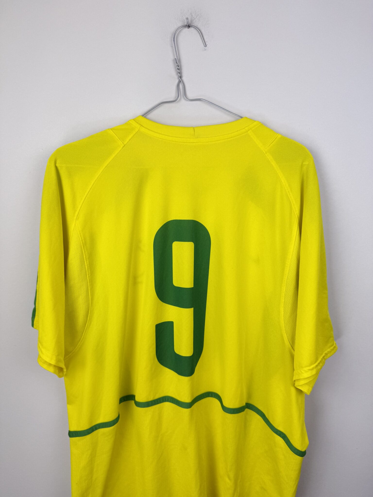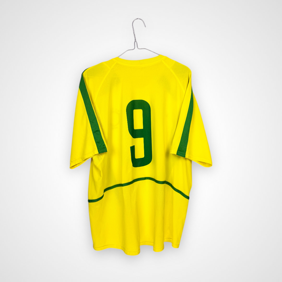 Oryginalna koszulka piłkarska reprezentacji Brazylii z lat 2002–2004 w wersji domowej z numerem 9 – produkcji Nike.