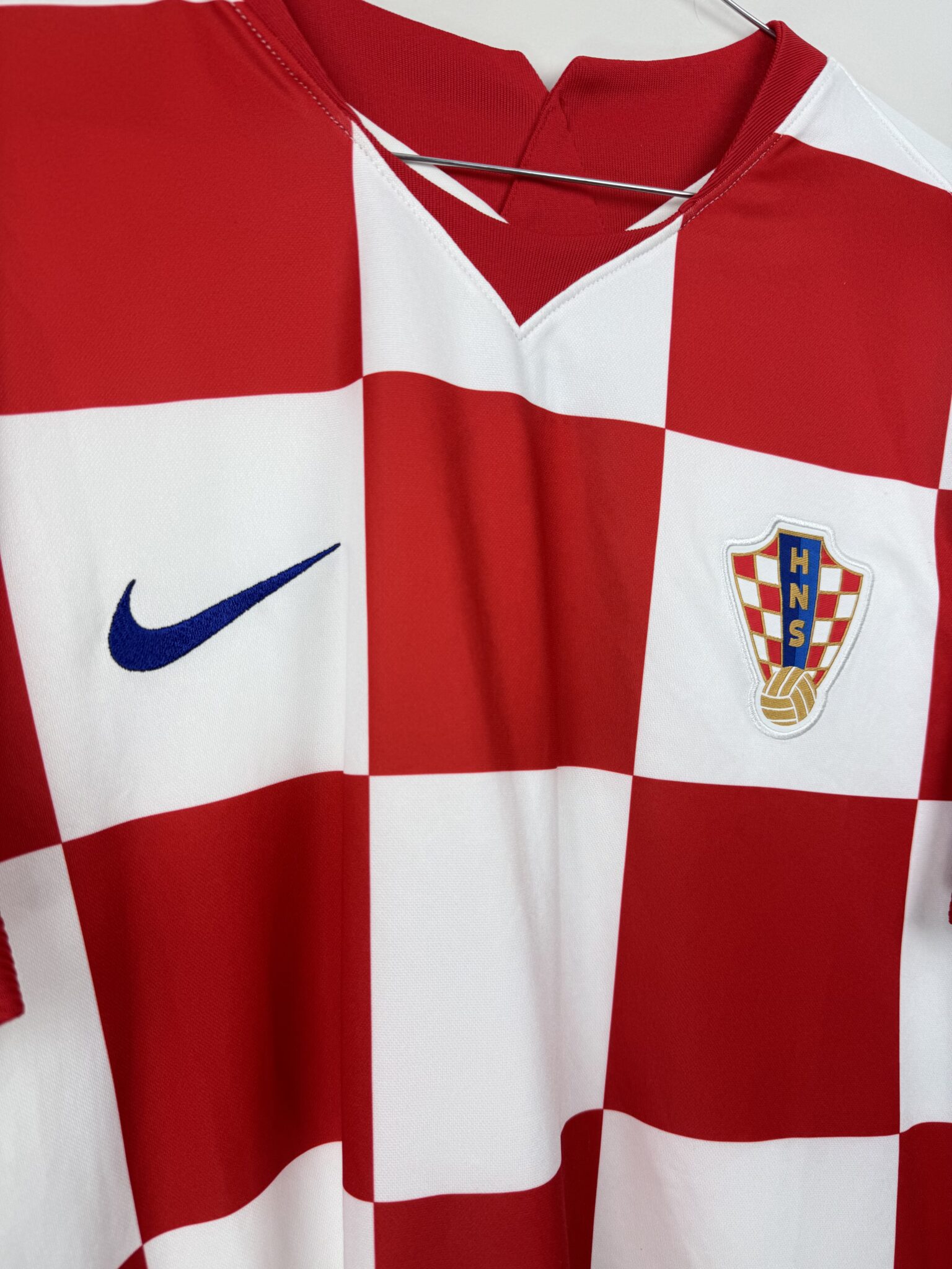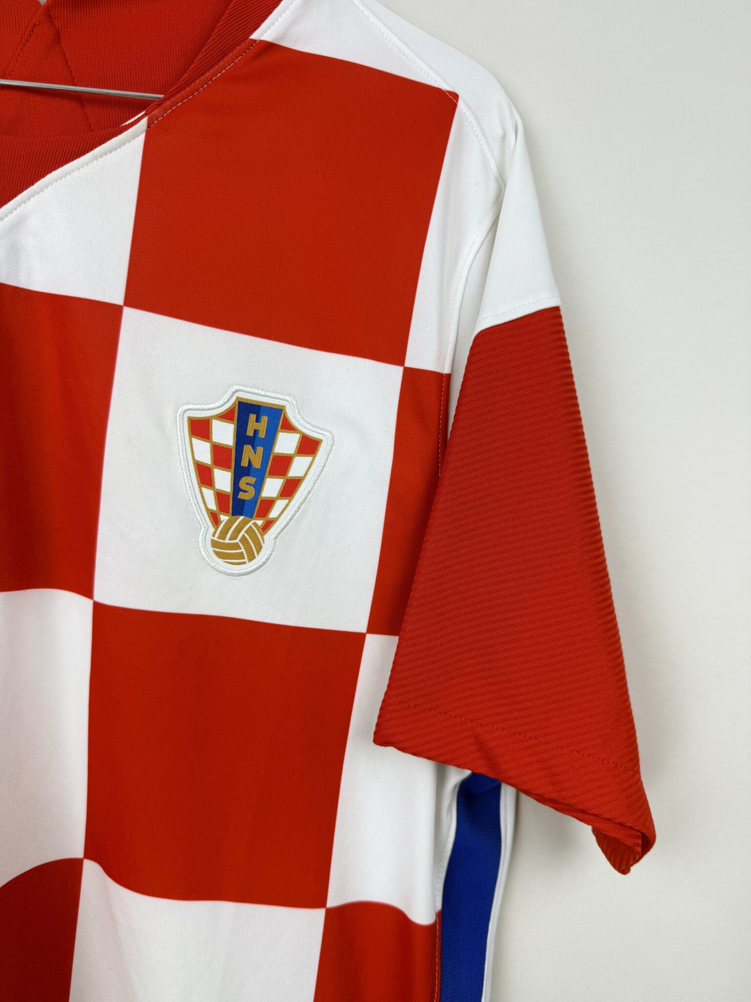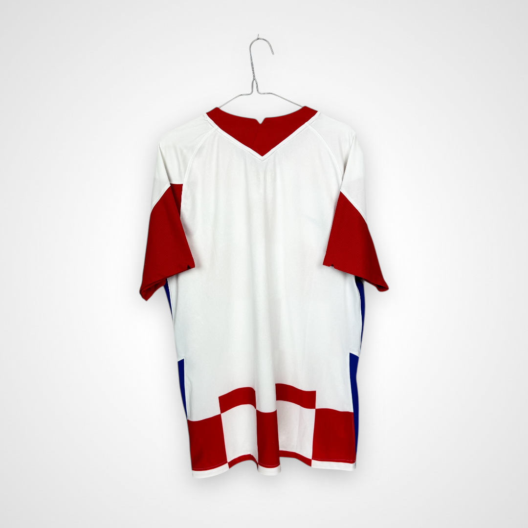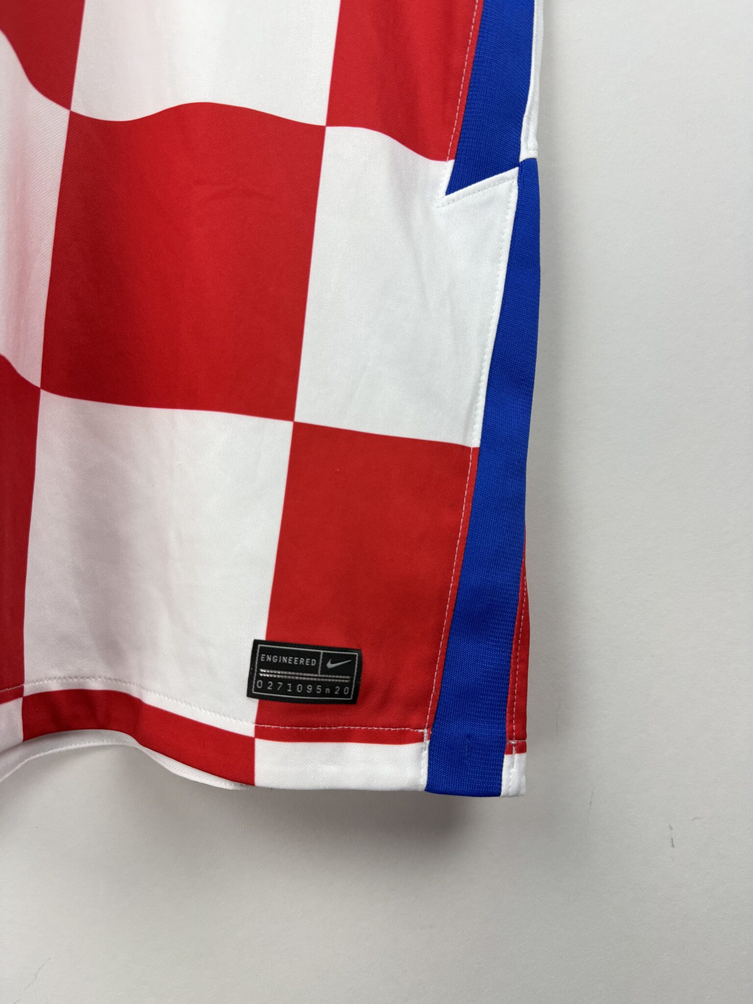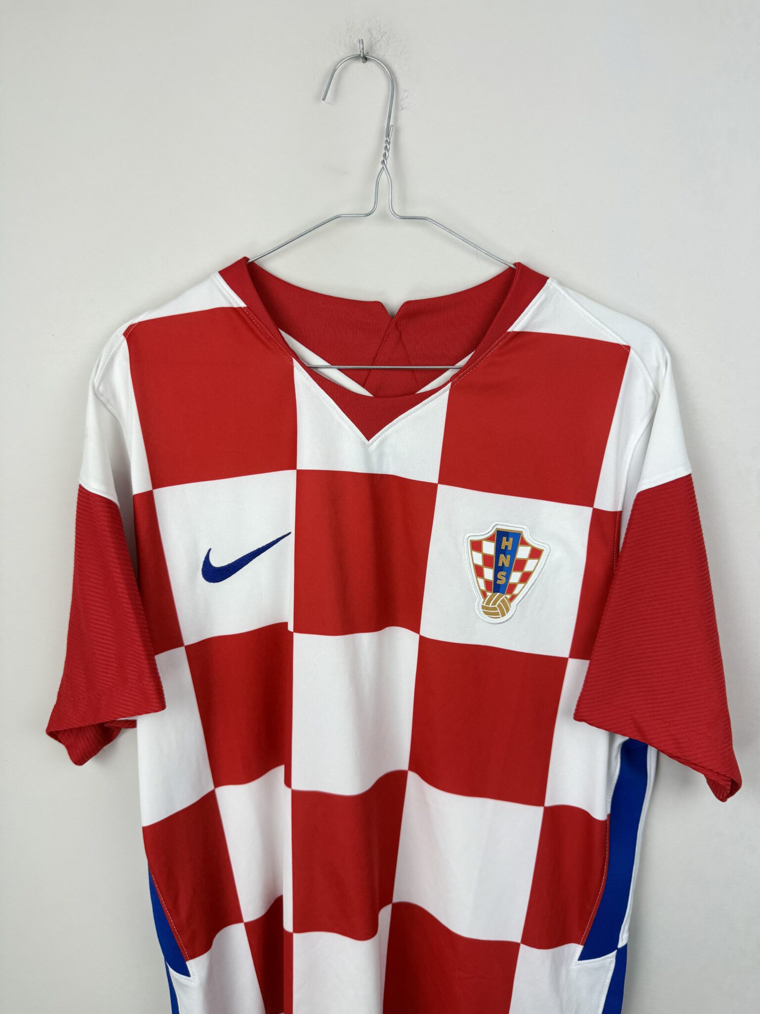 Model ten cechuje się nowoczesnym, dynamicznym wzorem – większe kratki w kontrastujących kolorach nadają koszulce bardziej graficznego i wyrazistego wyglądu niż w poprzednich edycjach. Na piersi znajduje się haftowany herb Chorwackiego Związku Piłki Nożnej (HNS) oraz logo Nike, umieszczone po przeciwnej stronie.