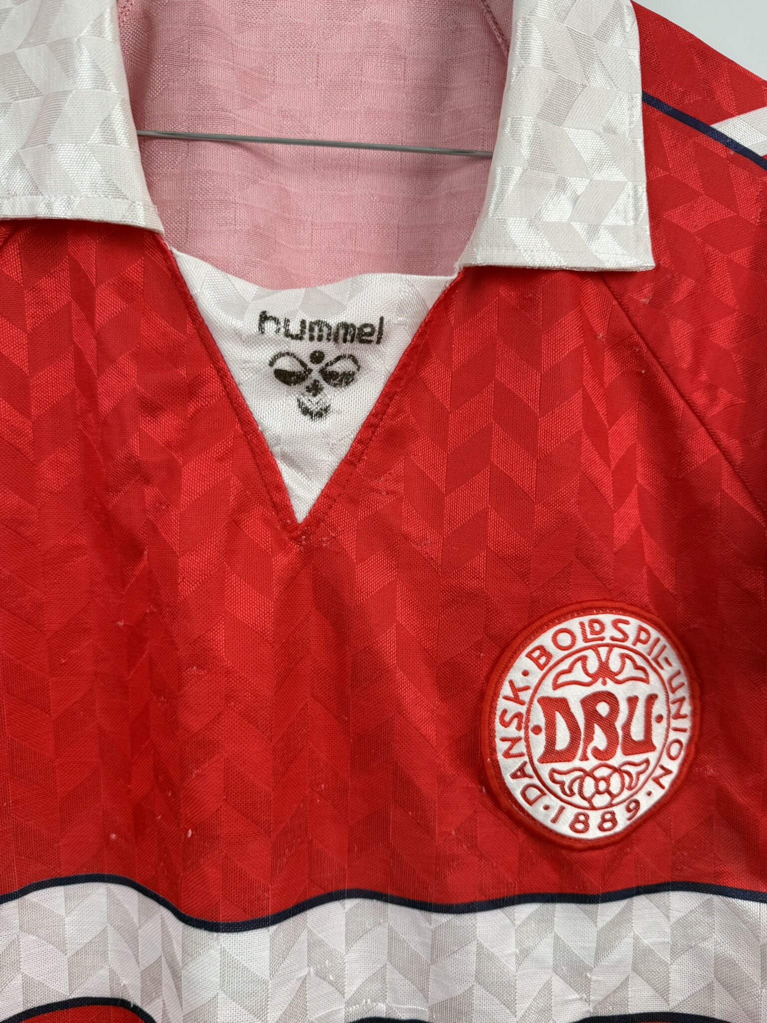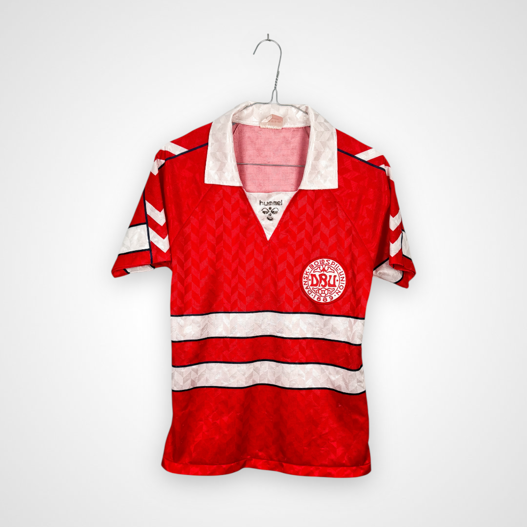 Koszulka piłkarska reprezentacji Danii z lat 1988/90 produkcji duńskiej firmy Hummel.