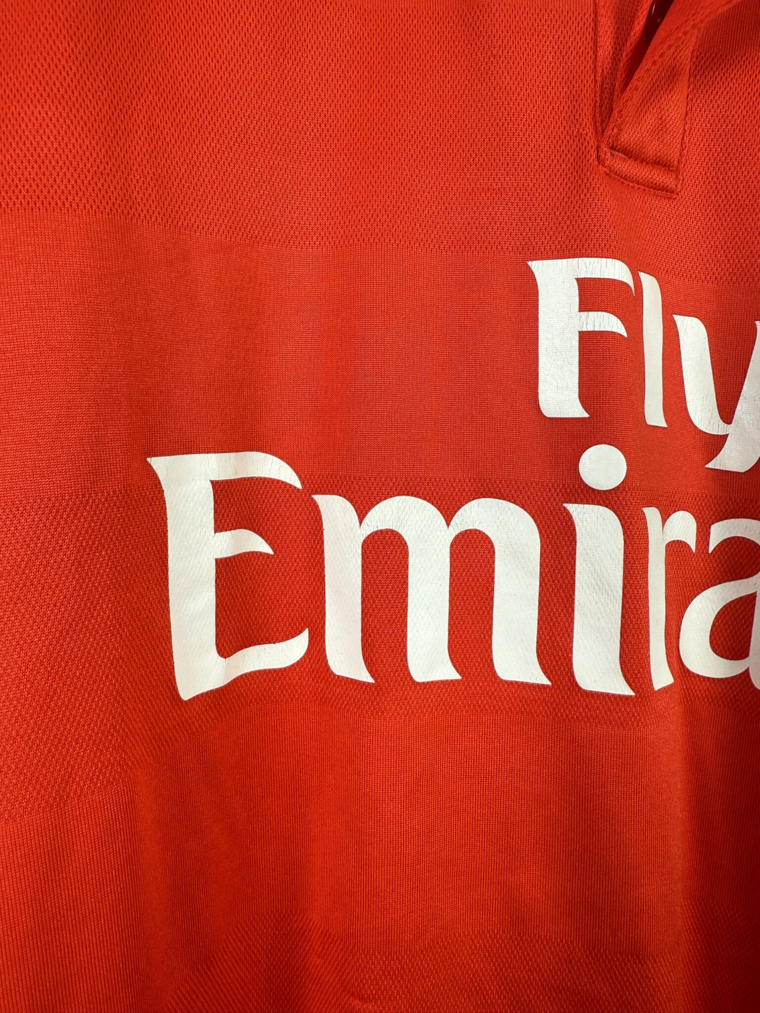 Na froncie widnieje herb Arsenalu, logo Pumy oraz znak sponsora Fly Emirates, tworząc zestaw elementów doskonale znany kibicom z Emirates Stadium. Koszulka wykonana została z materiału w technologii Puma Dry Cell, która zapewniała zawodnikom lekkość, przewiewność i komfort podczas gry na najwyższym poziomie.