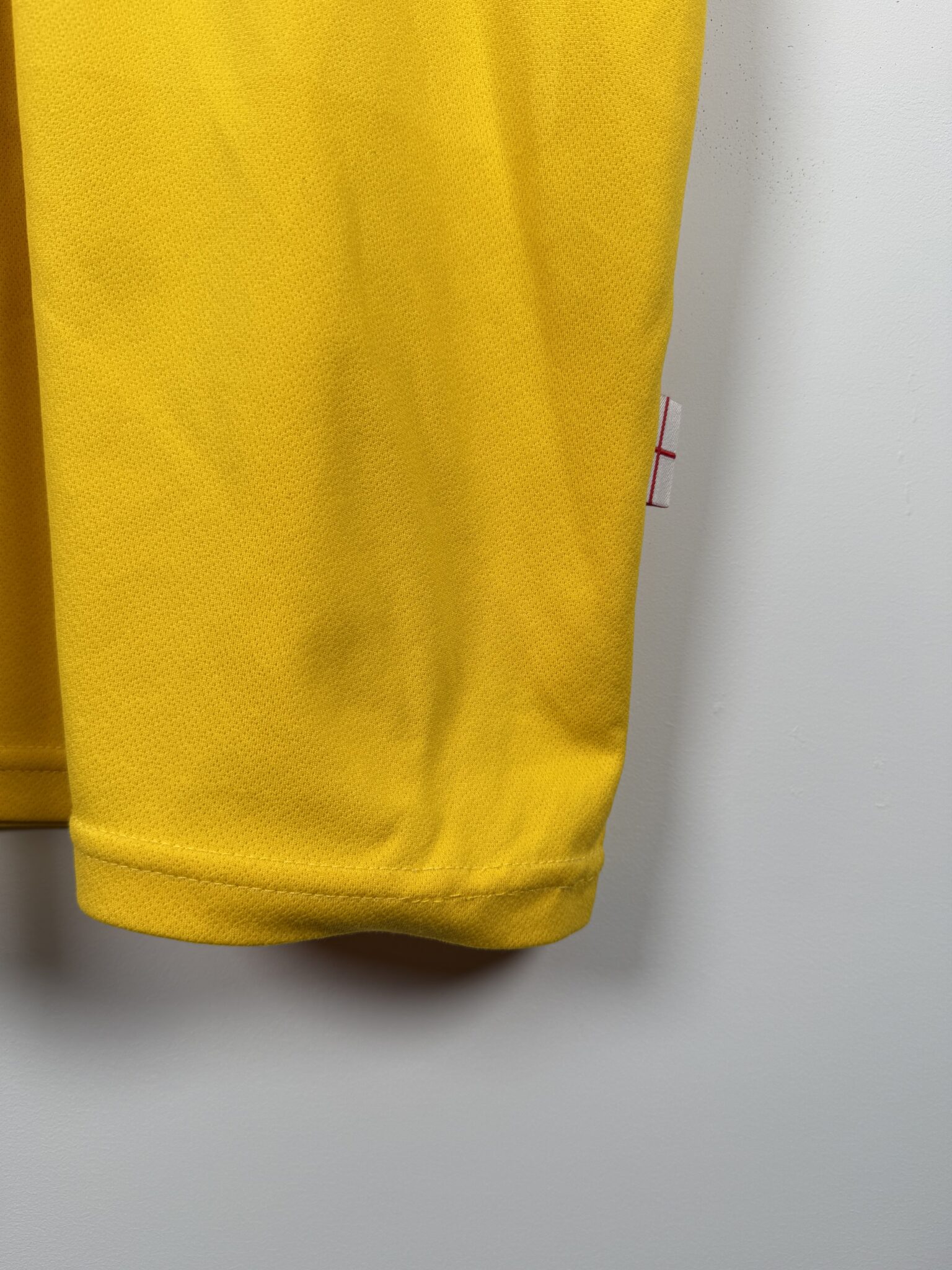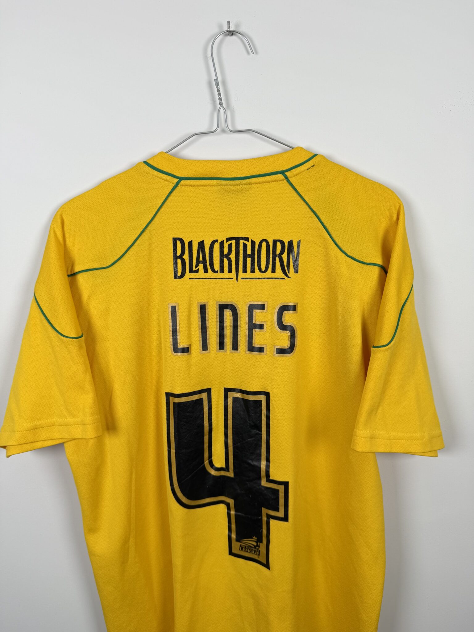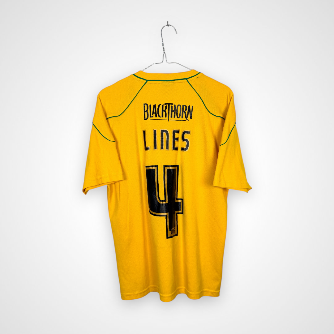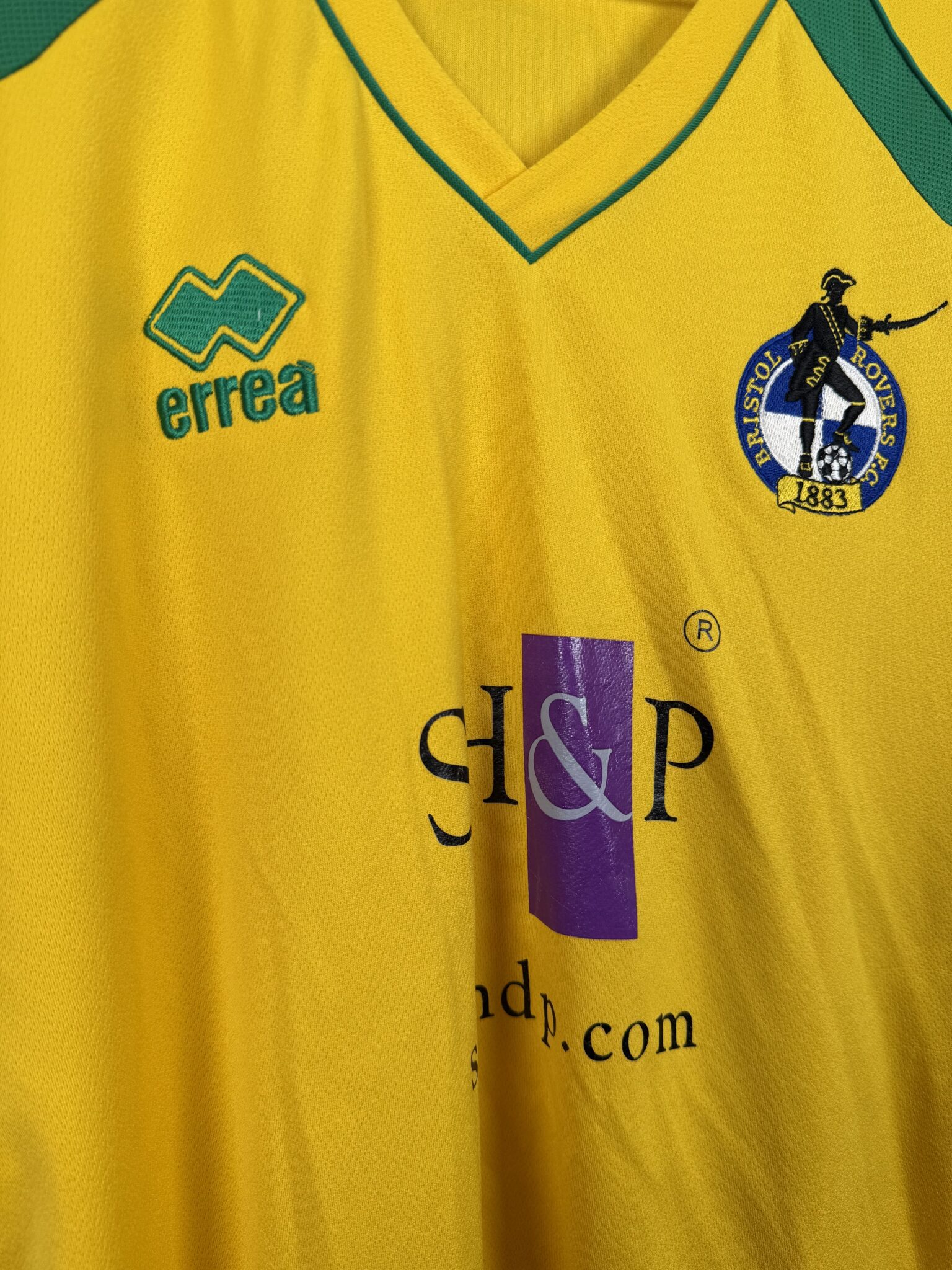 Ta oryginalna wyjazdowa koszulka Bristol Rovers z sezonu 2009/10, wyprodukowana przez markę Erreà, to wyjątkowy model utrzymany w charakterystycznych żółto-zielonych barwach. Koszulka posiada oficjalny nadruk Chrisa Linesa – wychowanka i jednego z najbardziej rozpoznawalnych piłkarzy Rovers tamtego okresu, co czyni ten egzemplarz szczególnie cennym dla fanów „The Gas”.