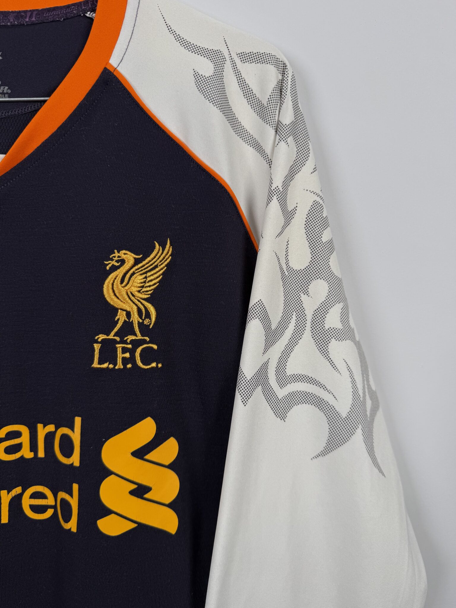 Oryginalna trzecia koszulka Liverpool FC z sezonu 2012/13 – produkcji Warrior, z długim rękawem i oficjalnym nadrukiem Raheema Sterlinga.