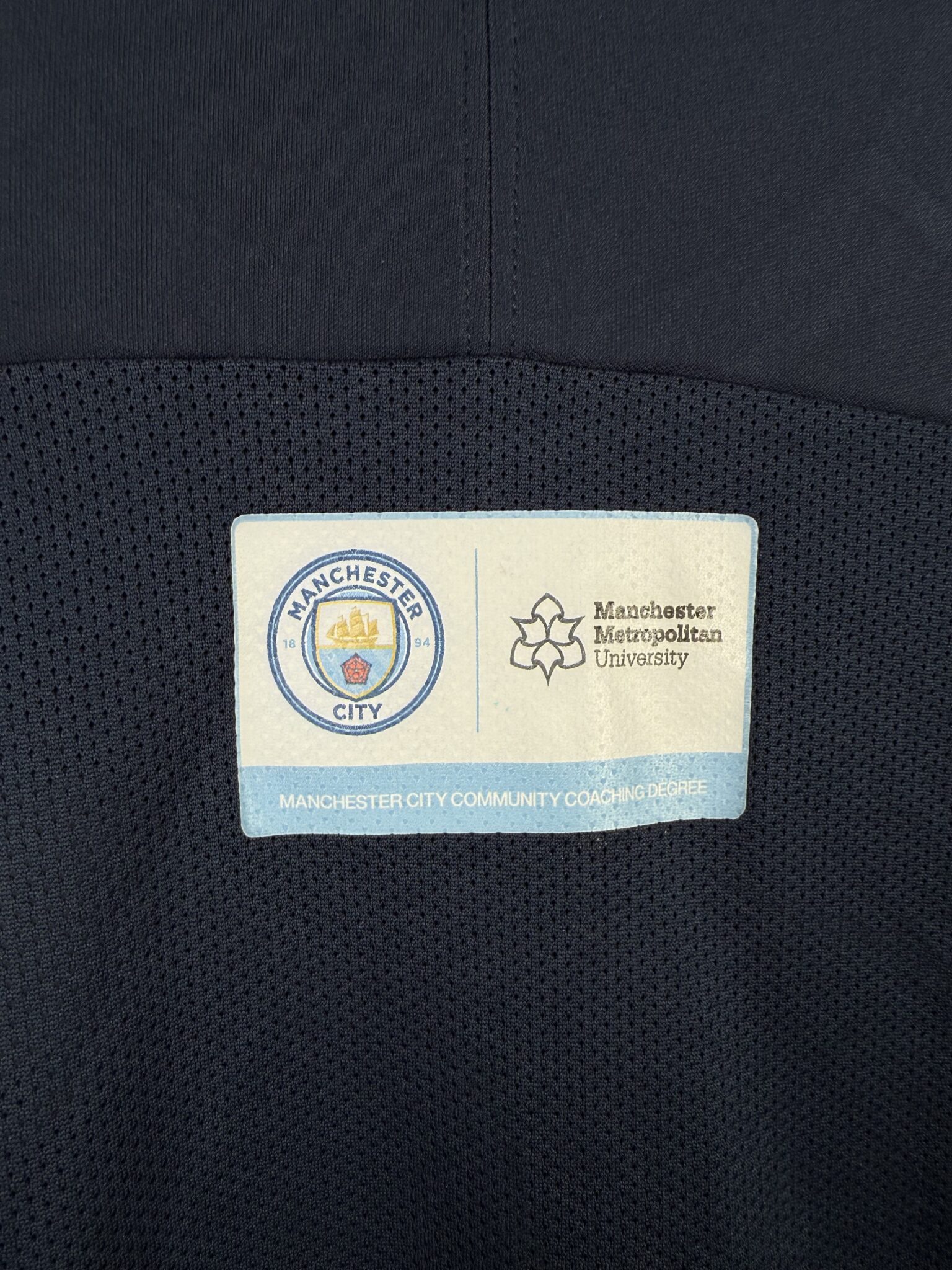 Na piersi umieszczono herb Manchesteru City oraz logo Nike, a koszulka została wykonana z materiału w technologii Nike Dri-FIT, co zapewniało zawodnikom lekkość, przewiewność i szybkie odprowadzanie wilgoci podczas intensywnych jednostek treningowych.