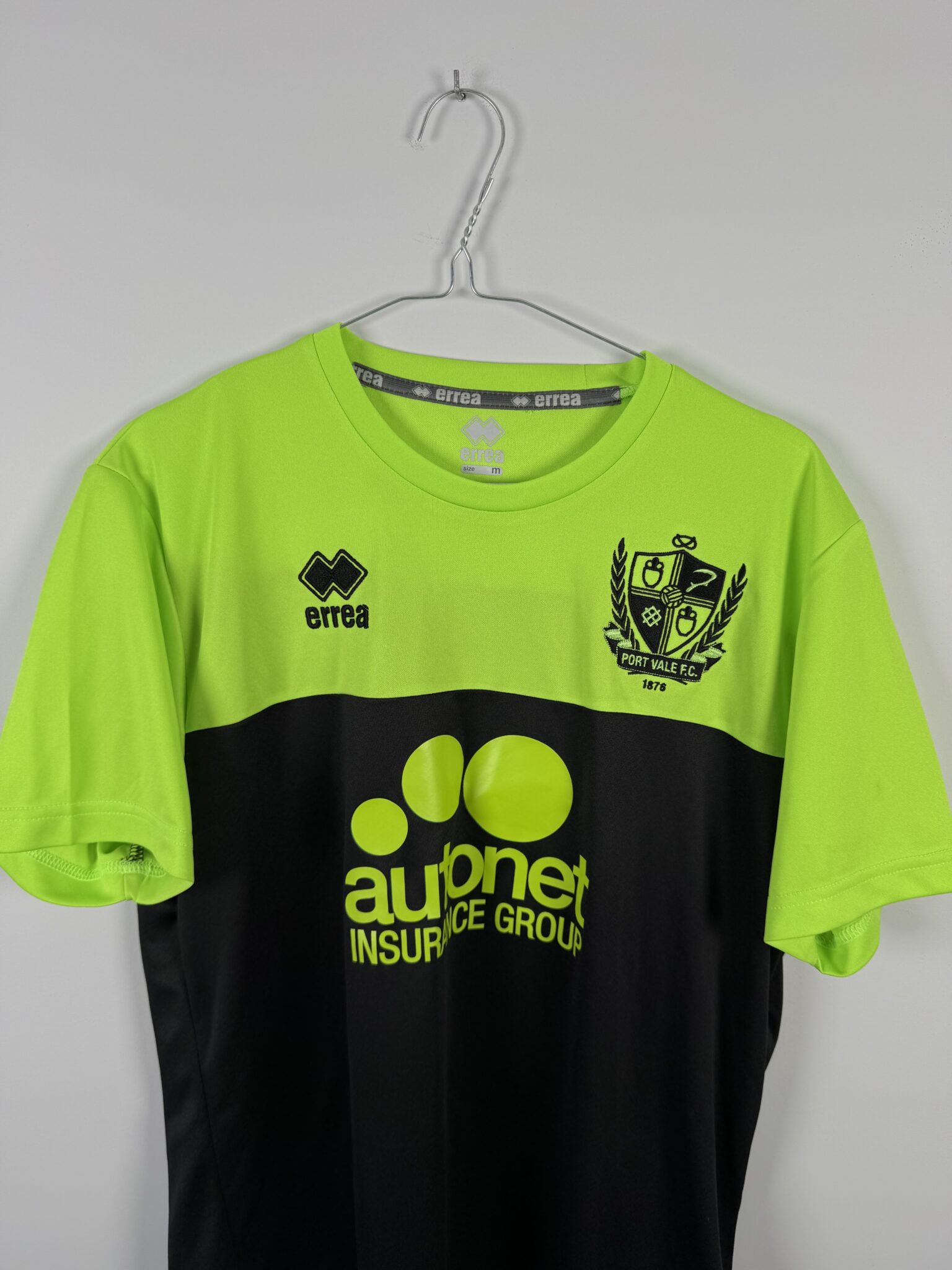 Na piersi umieszczono herb Port Vale FC, logo Erreà oraz znak sponsora Autonet, co nadaje koszulce autentycznego klubowego charakteru. Wykonana z lekkiego i przewiewnego materiału technicznego, gwarantowała piłkarzom komfort, oddychalność i swobodę ruchów podczas treningów.
