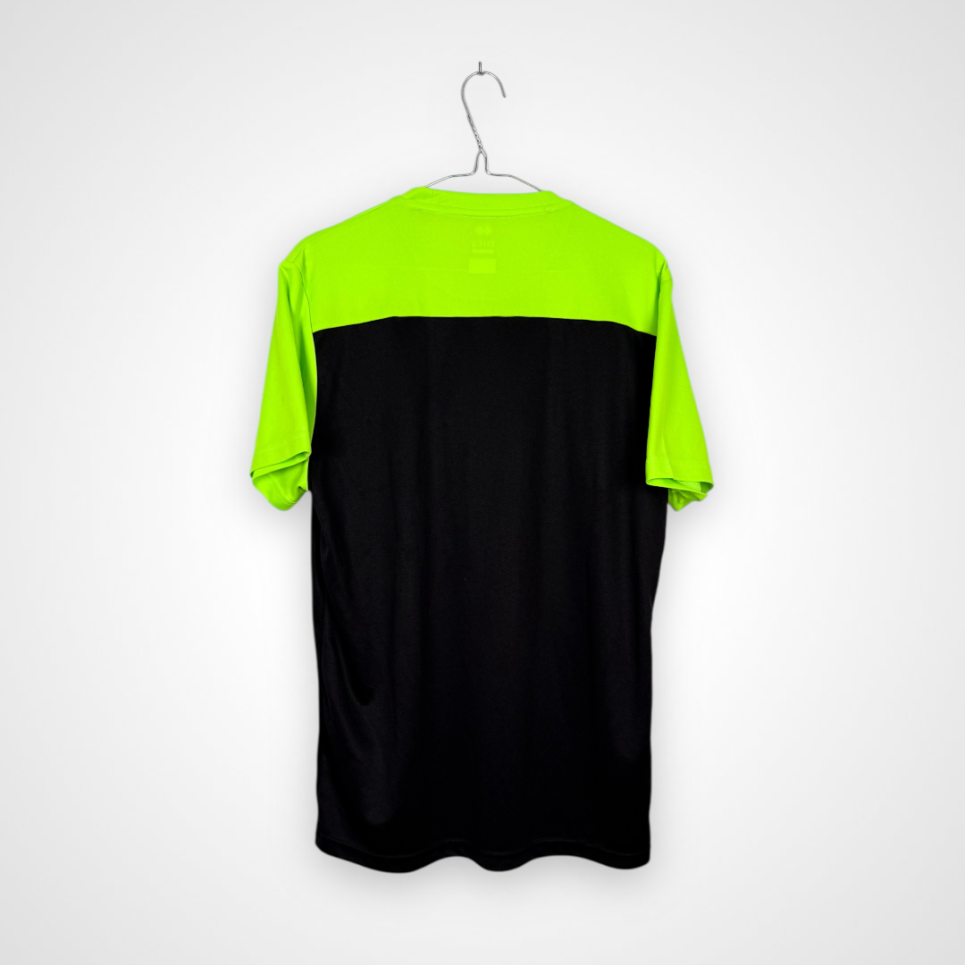 Ta oryginalna treningowa koszulka Port Vale z sezonu 2019/20, wyprodukowana przez Erreà, to nowoczesny model utrzymany w dwóch kontrastujących kolorachjaskrawa zieleń u góry przechodzi w czarną dolną część, tworząc dynamiczny i wyrazisty design. Koszulka była częścią oficjalnej kolekcji treningowej i towarzyszyła zawodnikom podczas przygotowań do meczów w League Two.