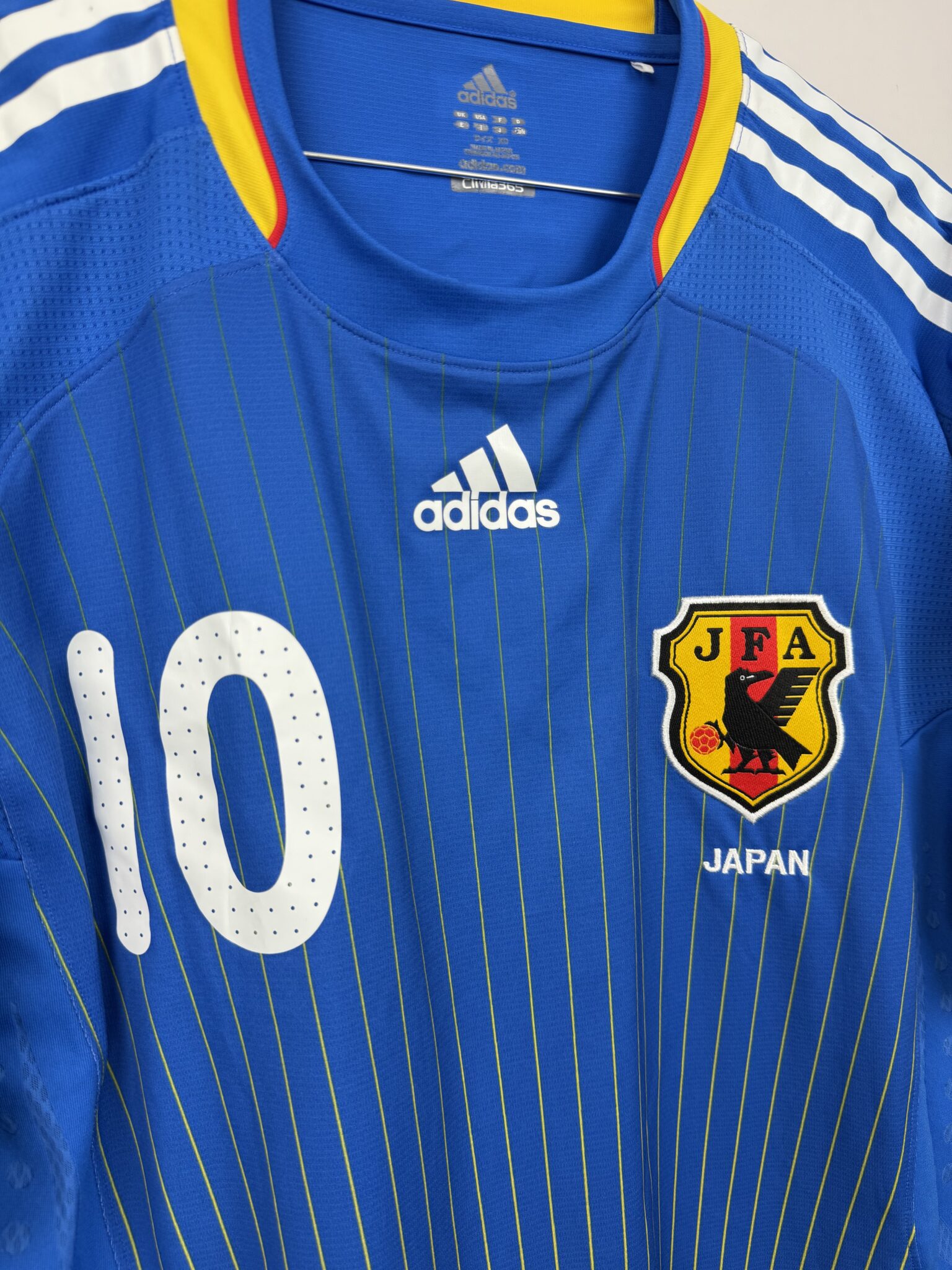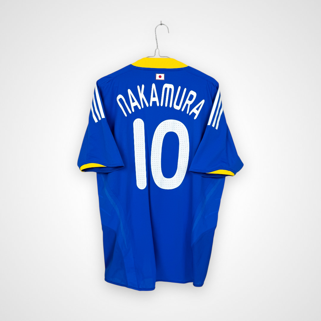 To właśnie w tym stroju Japonia przygotowywała się do Mistrzostw Świata 2010, a Nakamura, mistrz rzutów wolnych i były zawodnik m.in. Celticu i Espanyolu, był wtedy jednym z liderów drużyny. Koszulka łączy nowoczesny jak na tamte lata krój, świetną jakość wykonania i typowy dla Adidas design z trzema paskami na ramionach.