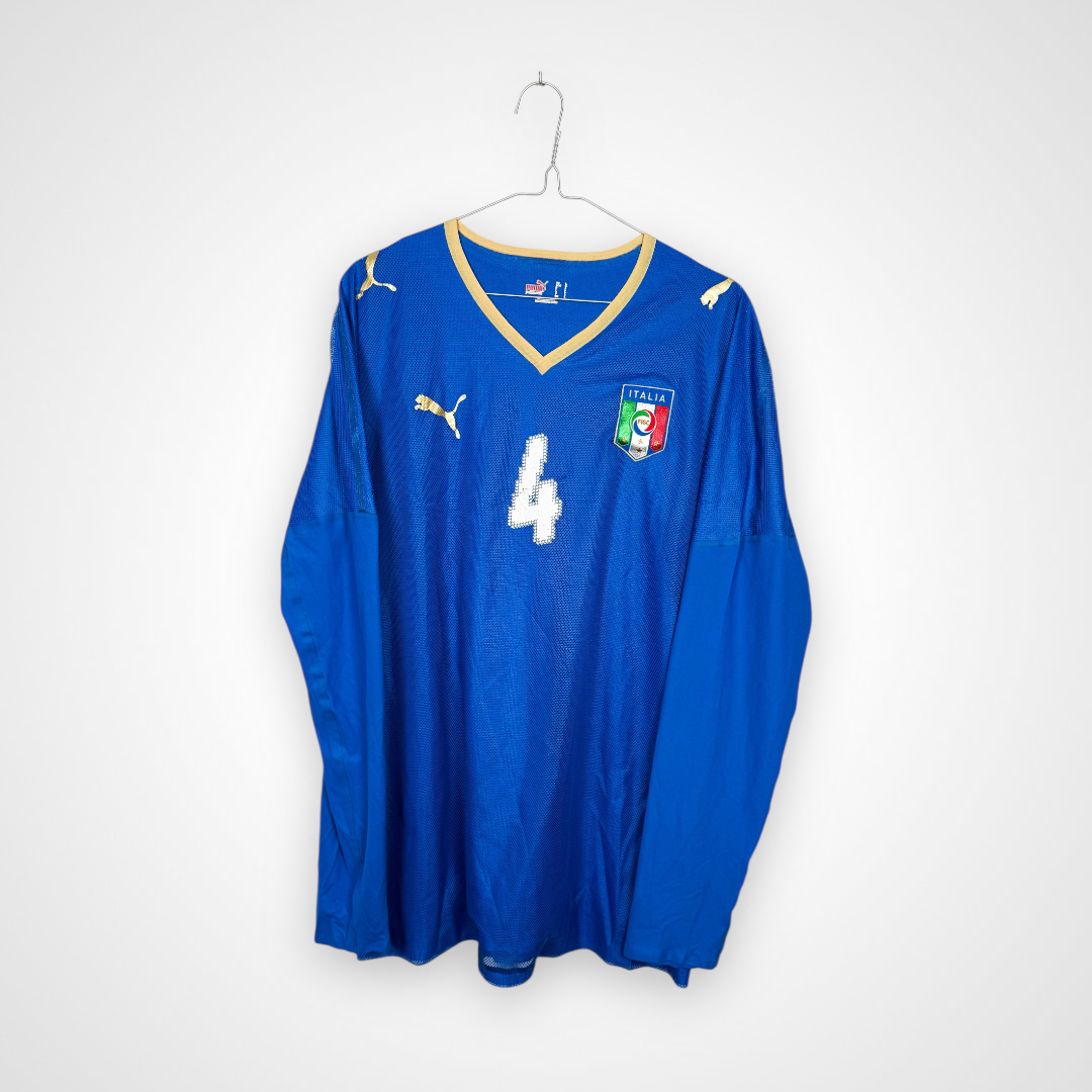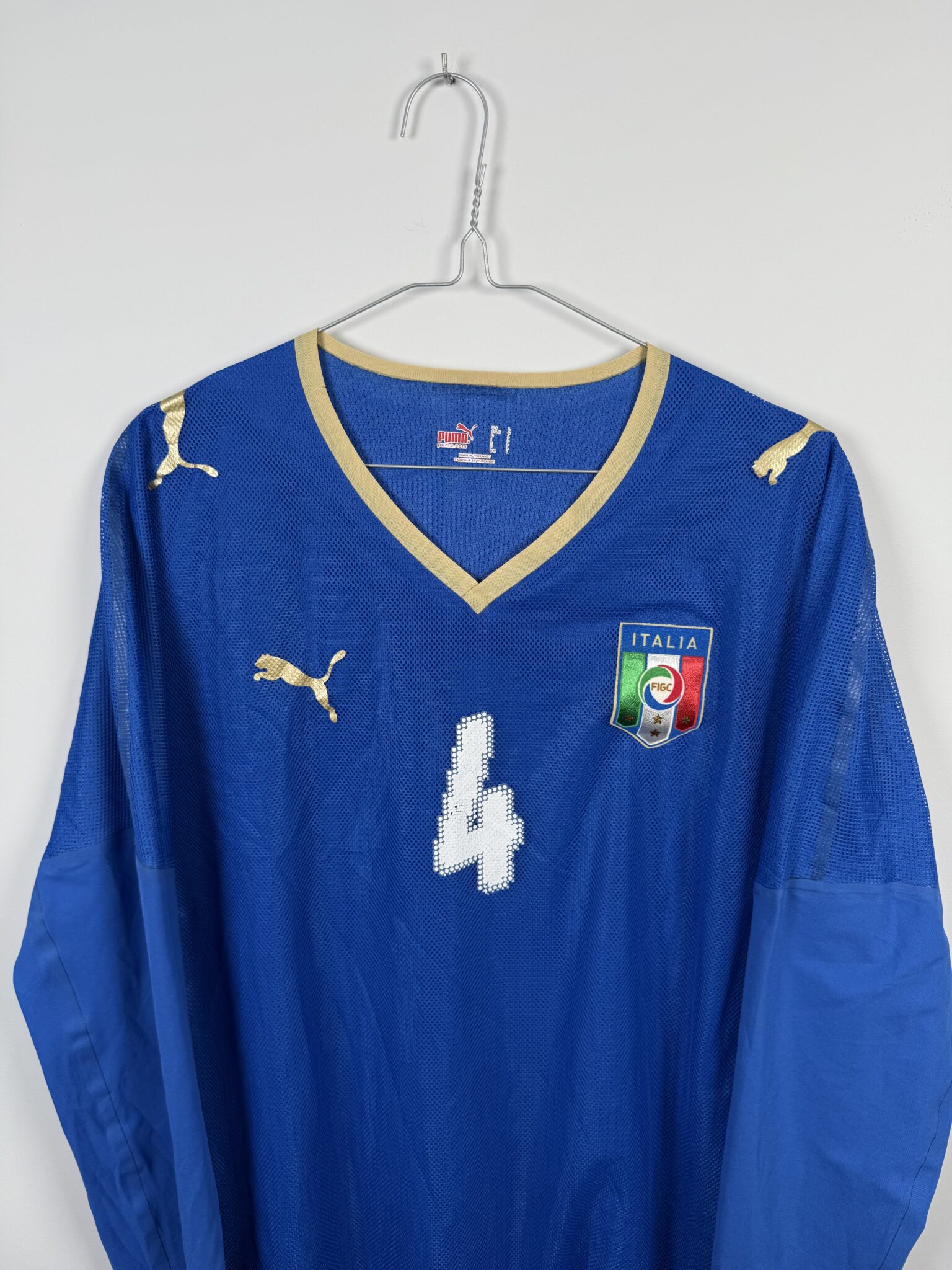 Domowa koszulka piłkarska reprezentacji Włoch z lat 2007–2009 – wersja meczowa z długim rękawem i numerem 4.