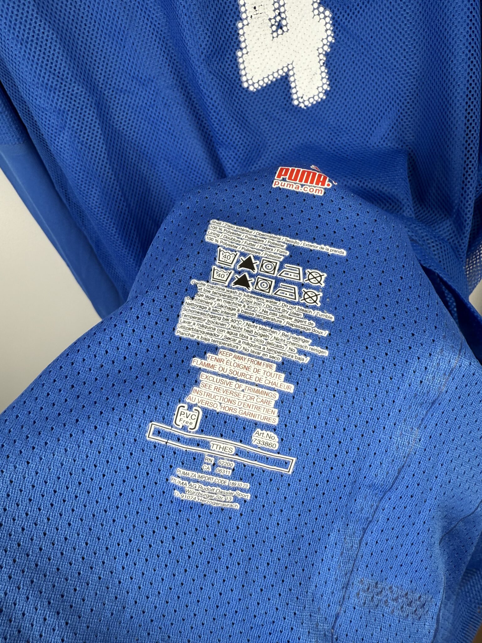 Ta oryginalna koszulka piłkarska reprezentacji Włoch pochodzi z serii przygotowanej przez Pumę na lata 2007–2009, czyli okres po zdobyciu mistrzostwa świata w 2006 roku. To wersja meczowa (player issue), stworzona z myślą o maksymalnym komforcie i lekkości. Zastosowano w niej ultracienki, elastyczny materiał o świetnej oddychalności, a wewnątrz znajduje się prasowana metka, charakterystyczna dla modeli przeznaczonych dla zawodników – dzięki temu koszulka jest jeszcze lżejsza i bardziej dopasowana do sylwetki.
