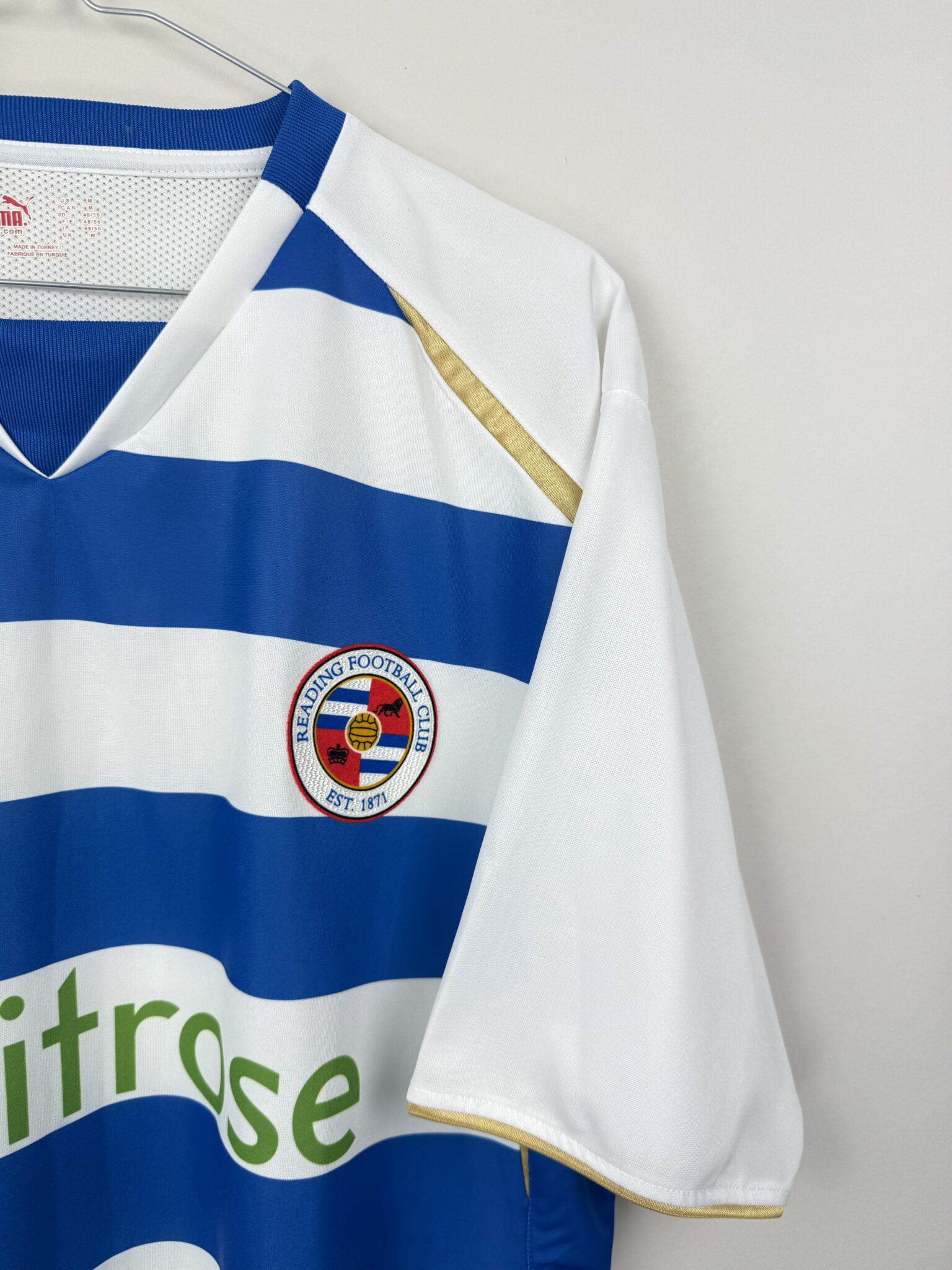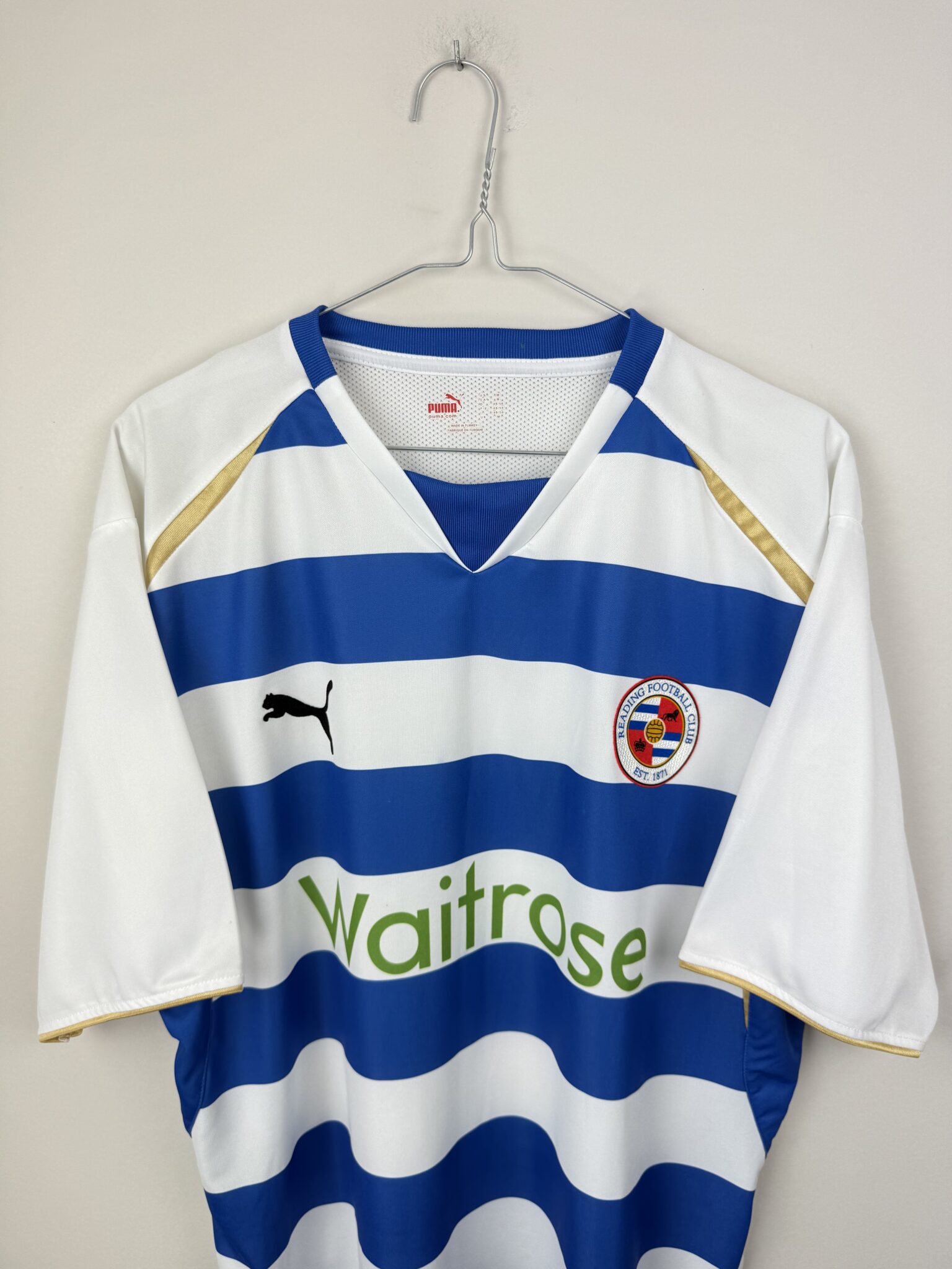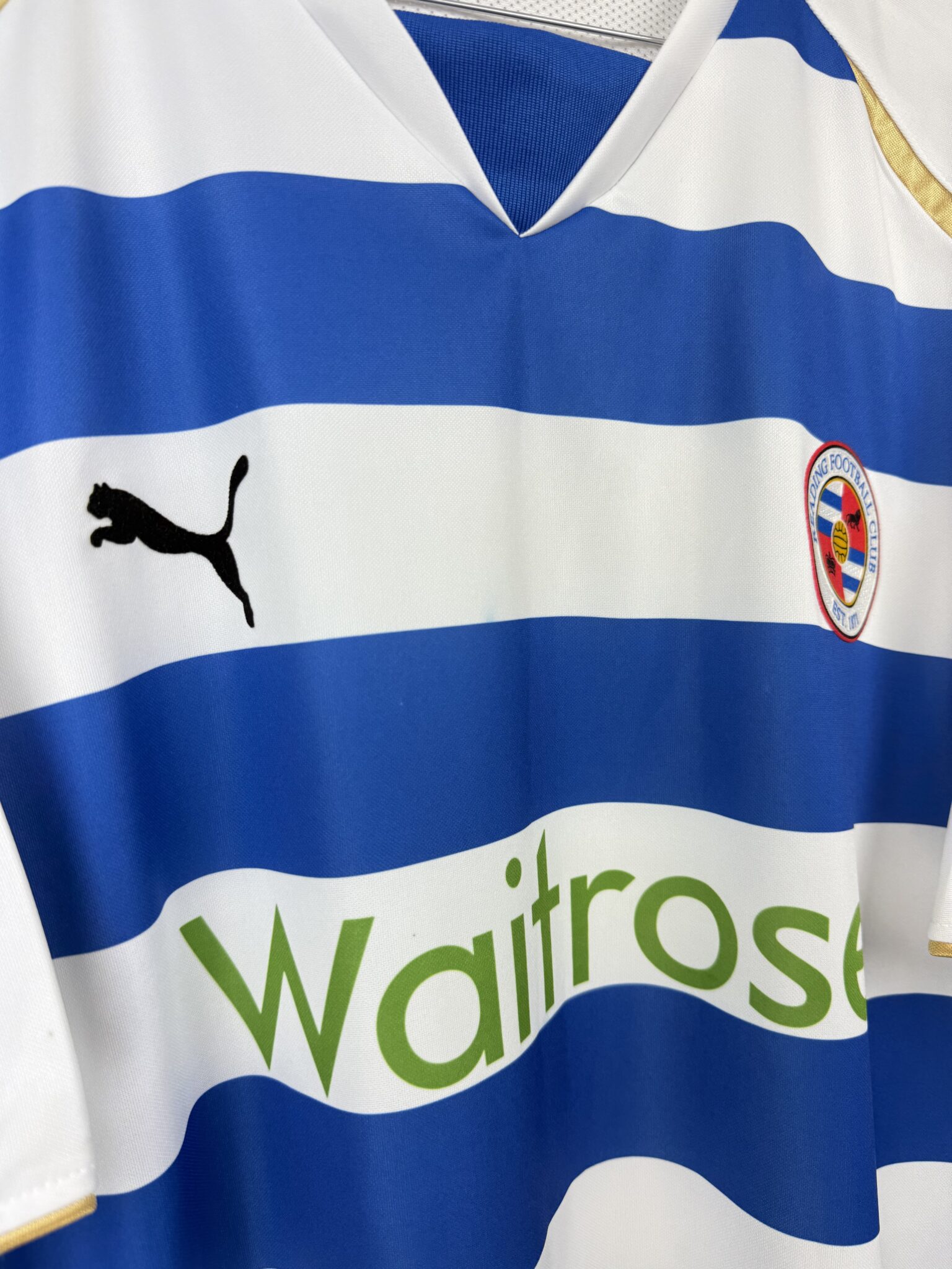 Na froncie znajduje się tradycyjny herb Reading FC, logo Pumy oraz sponsor główny – Waitrose – umieszczony centralnie. Sezon 2008/09 był dla klubu czasem walki o powrót do Premier League po spadku – drużyna zakończyła sezon w czołówce Championship, dochodząc do fazy play-off.