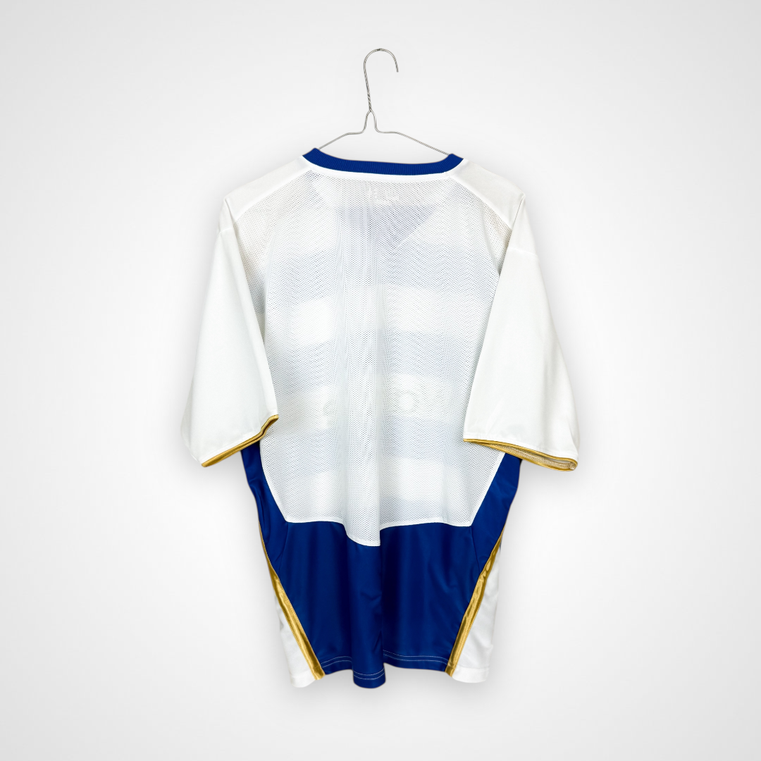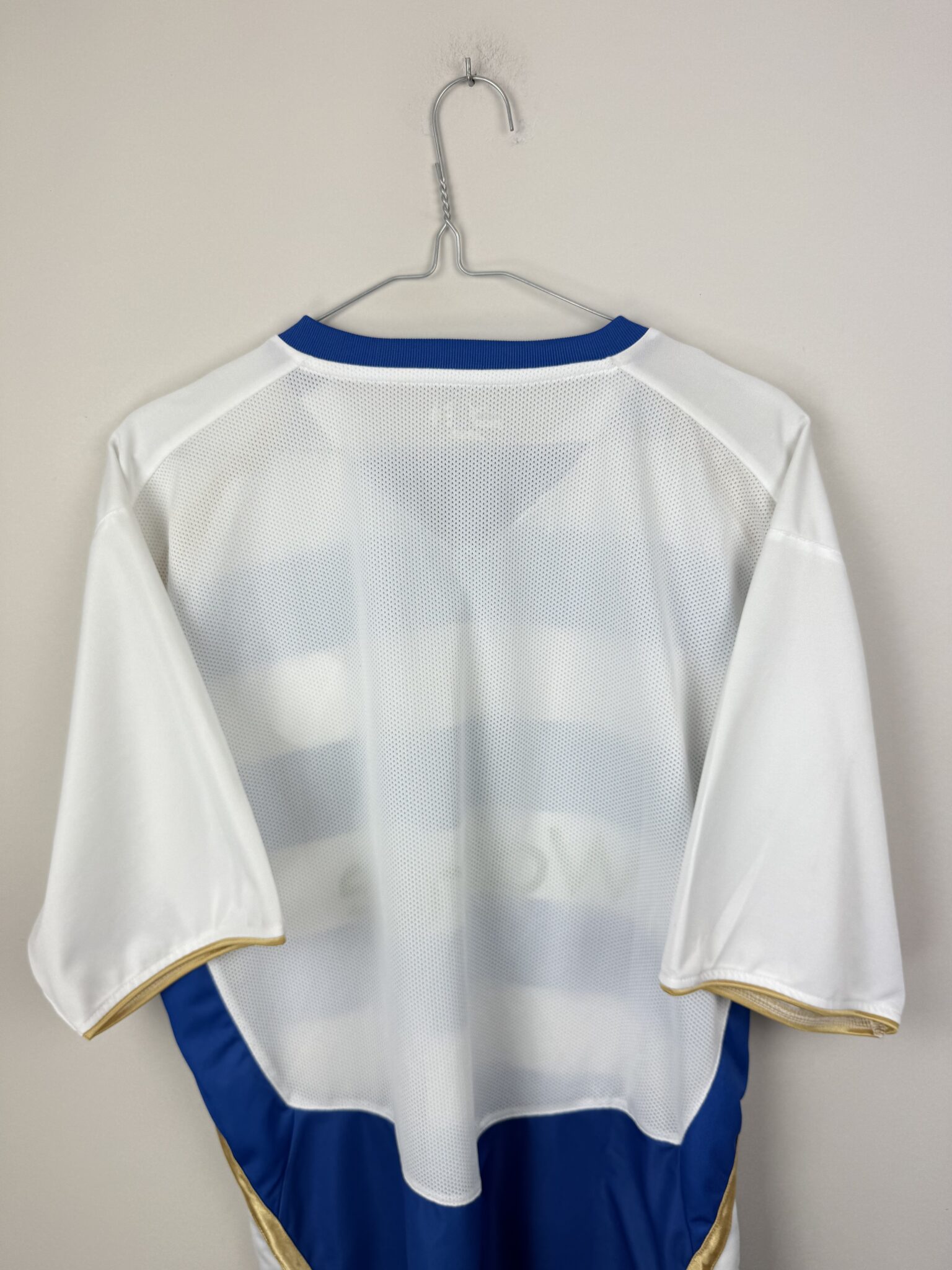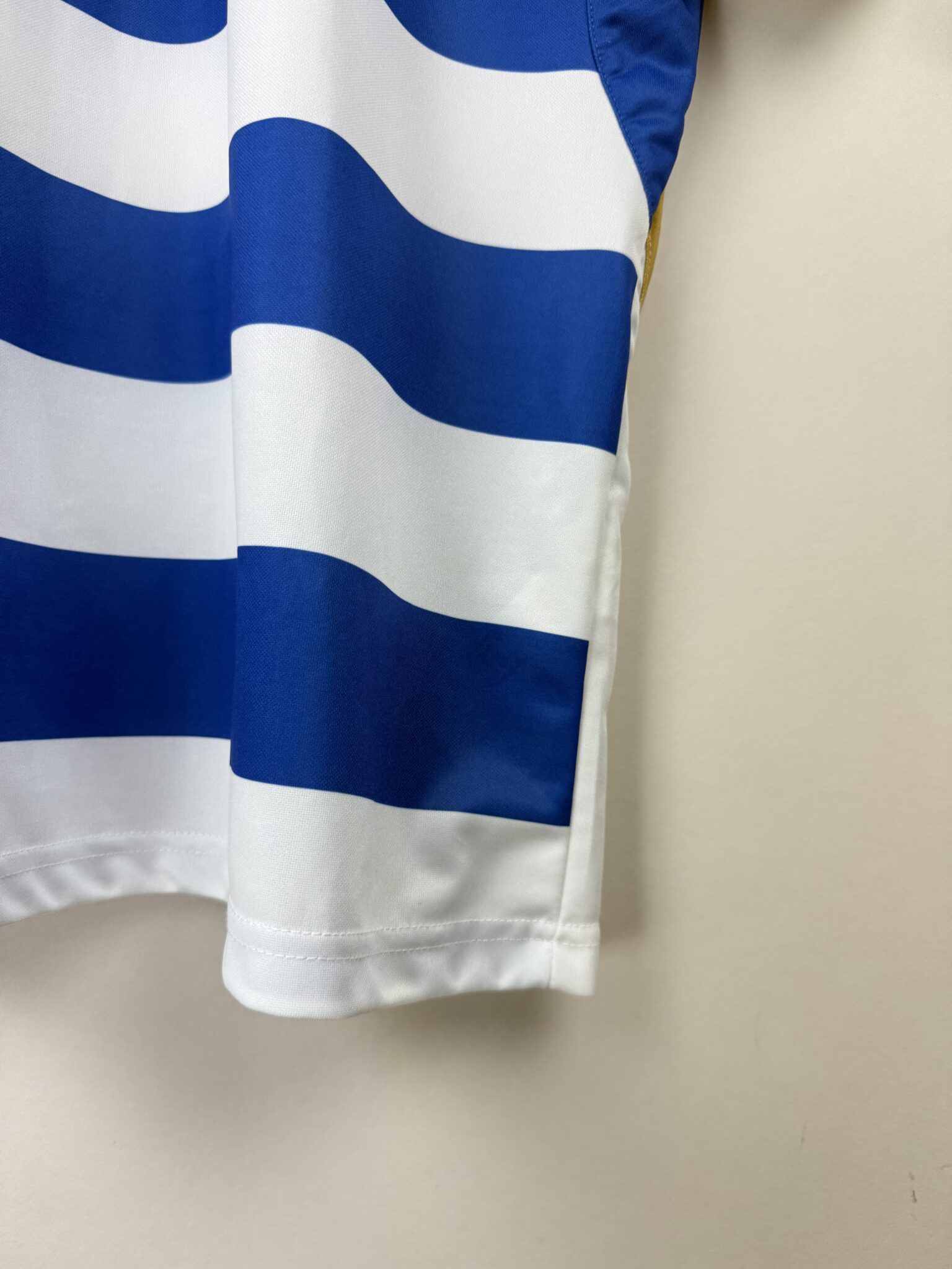 Ta oryginalna koszulka piłkarska Reading FC z sezonu 2008/09 to klasyczny przykład angielskiego stylu – biało-niebieskie pasy, które od lat są znakiem rozpoznawczym „The Royals”. Wyprodukowana przez firmę Puma, koszulka wyróżnia się prostym, ale eleganckim wzorem, lekkim materiałem i solidnym wykonaniem, które zapewnia wygodę i trwałość.