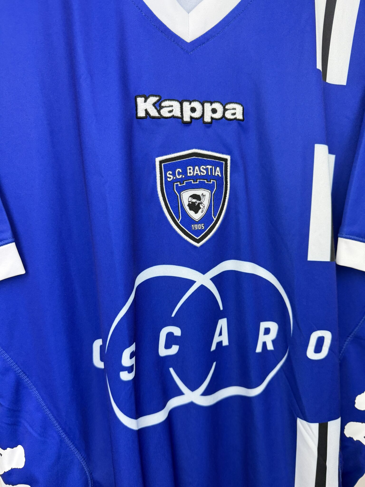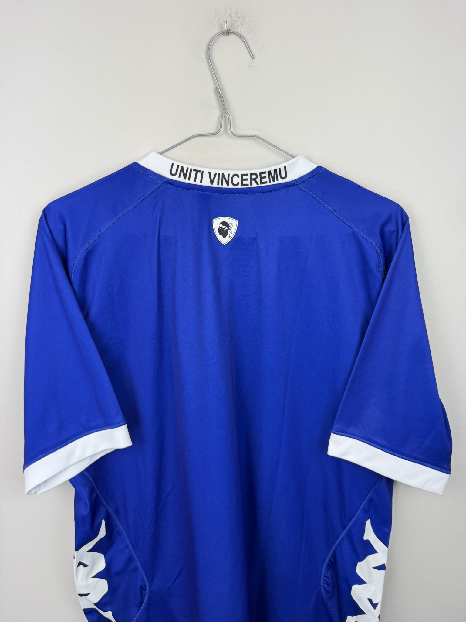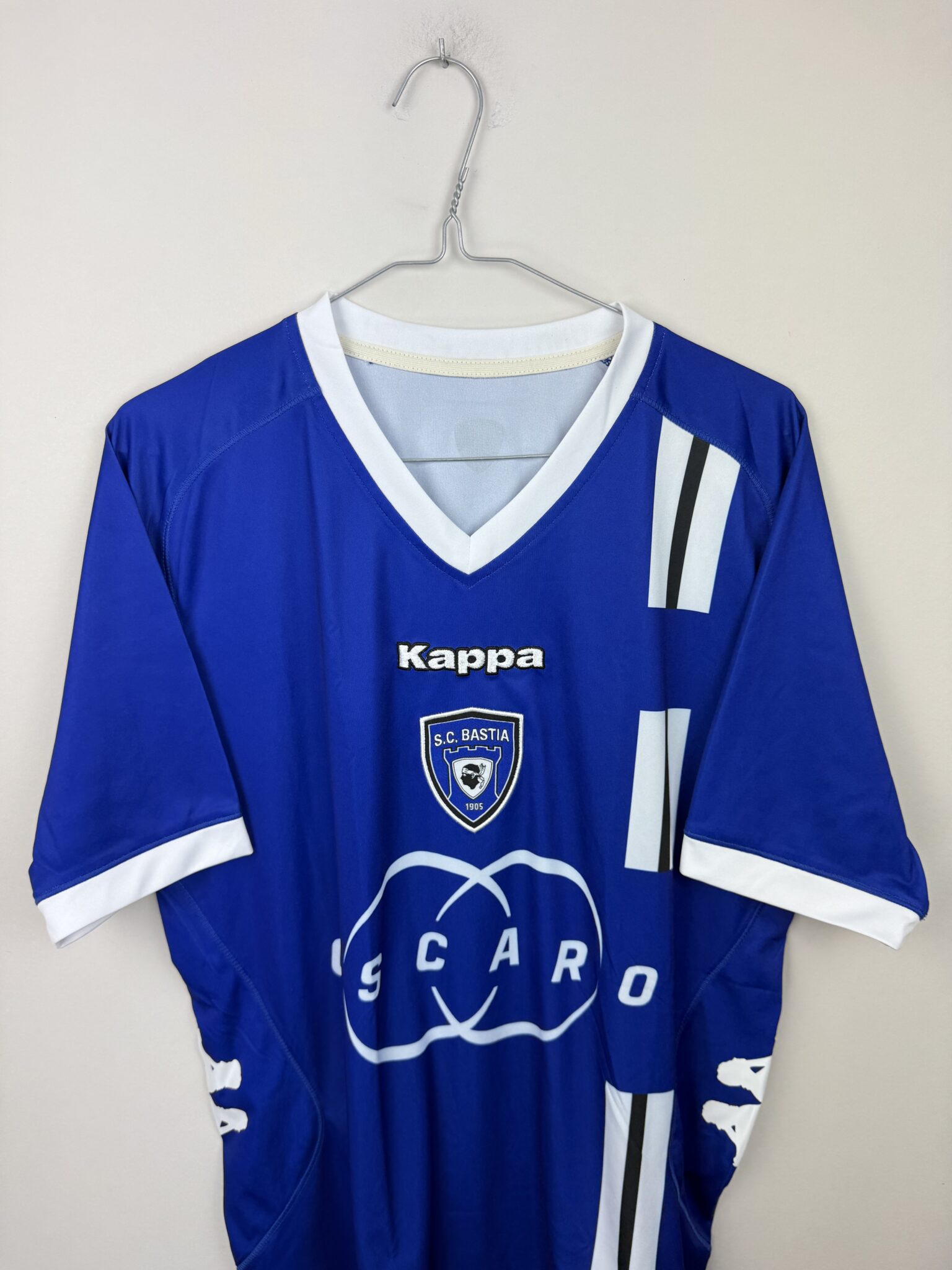 Kultowy klimat Korsyki zamknięty w koszulce piłkarskiej – oto oryginalna domowa koszulka SC Bastii z sezonu 2012/13, wyprodukowana przez włoską markę Kappa. To klasyczny model w charakterystycznym niebieskim kolorze, z białymi detalami i herbem klubu z dumnym Maurem na piersi.