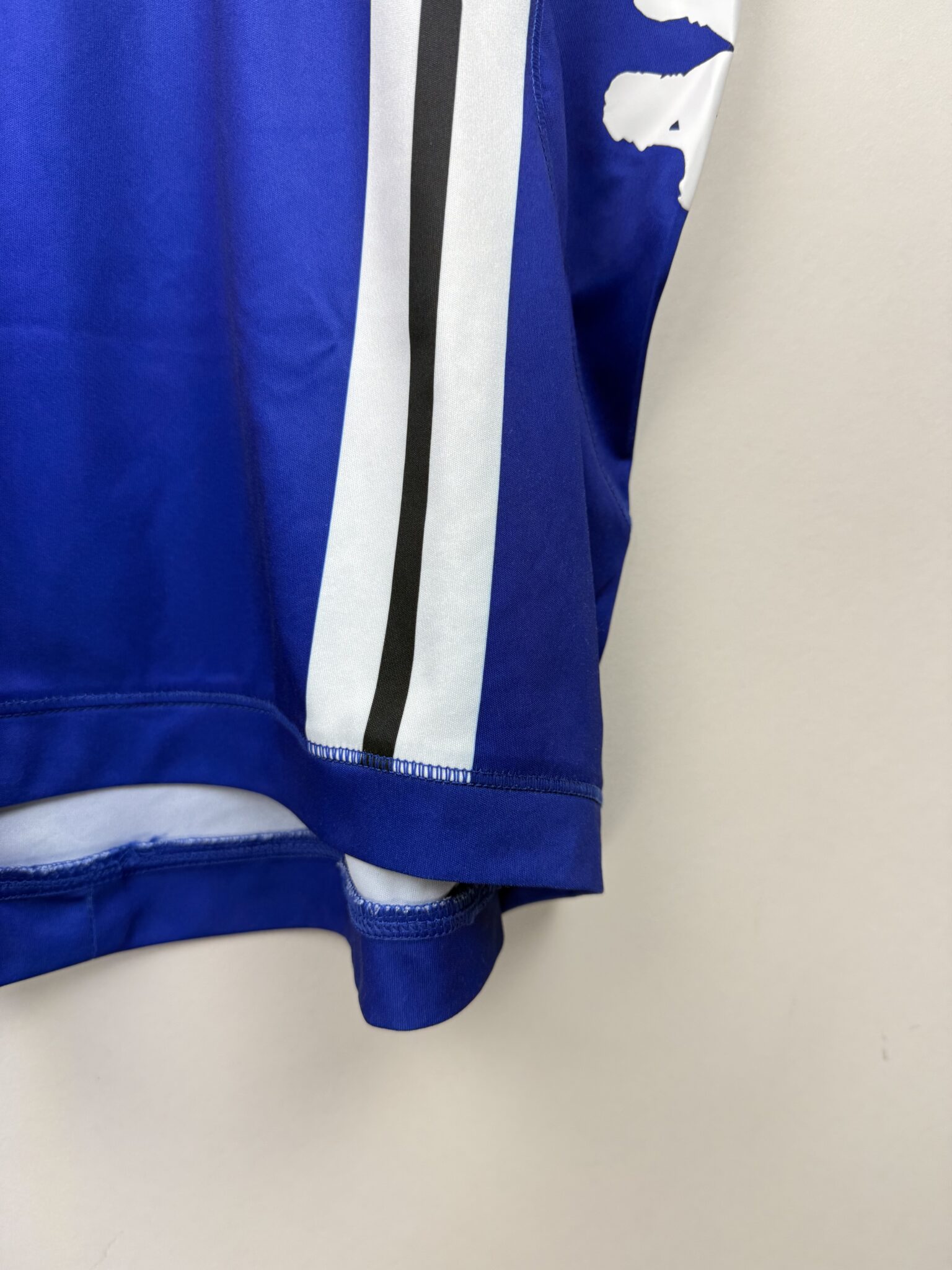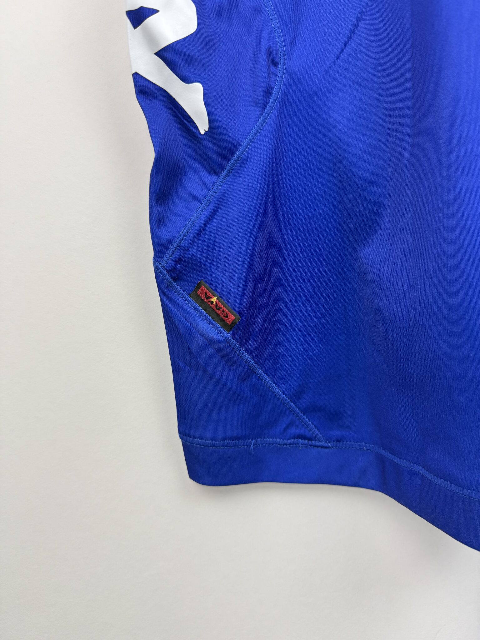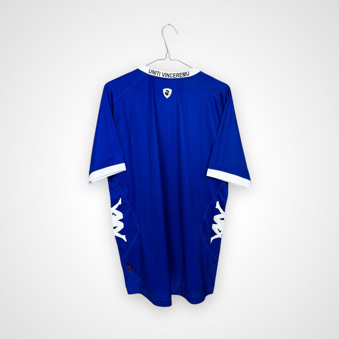 Kultowy klimat Korsyki zamknięty w koszulce piłkarskiej – oto oryginalna domowa koszulka SC Bastii z sezonu 2012/13, wyprodukowana przez włoską markę Kappa. To klasyczny model w charakterystycznym niebieskim kolorze, z białymi detalami i herbem klubu z dumnym Maurem na piersi.