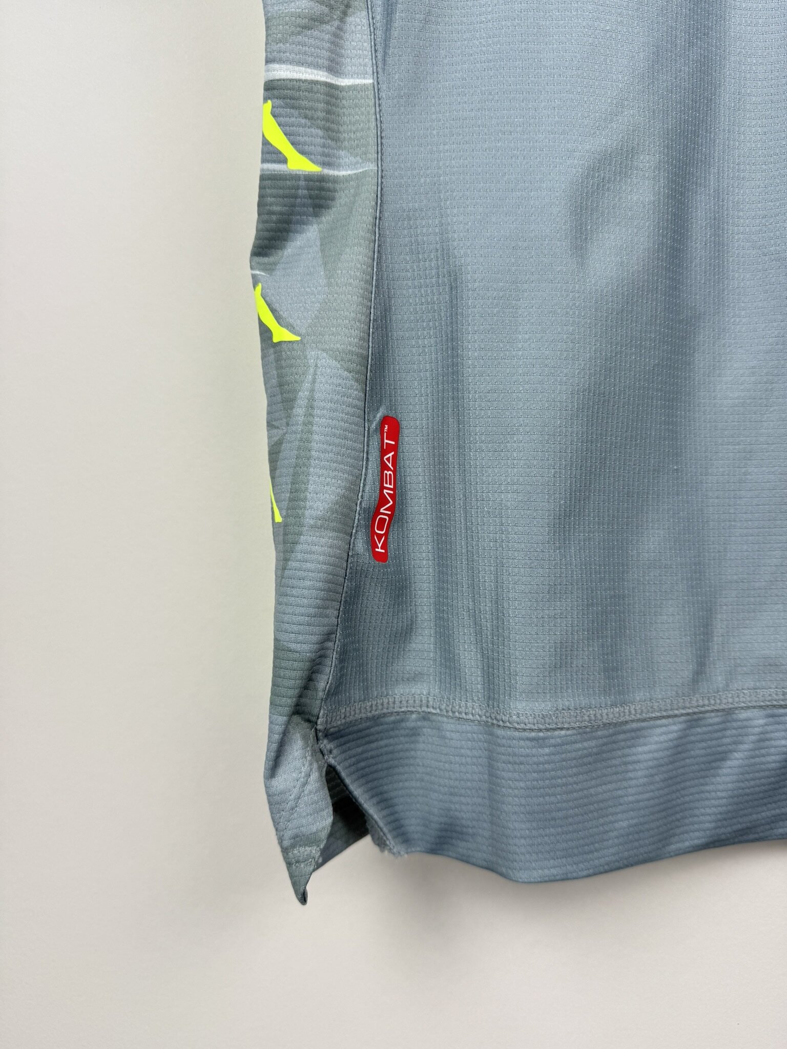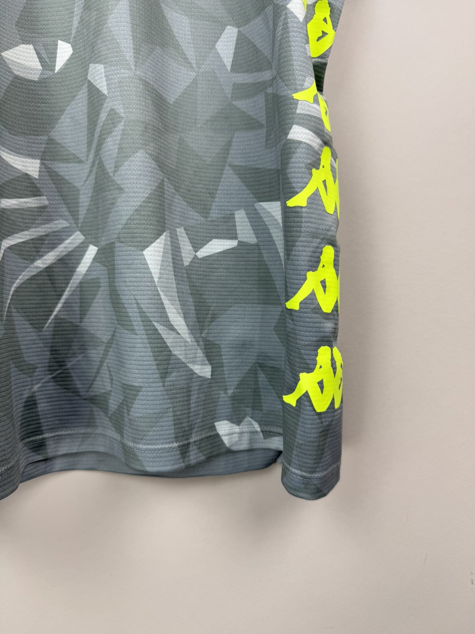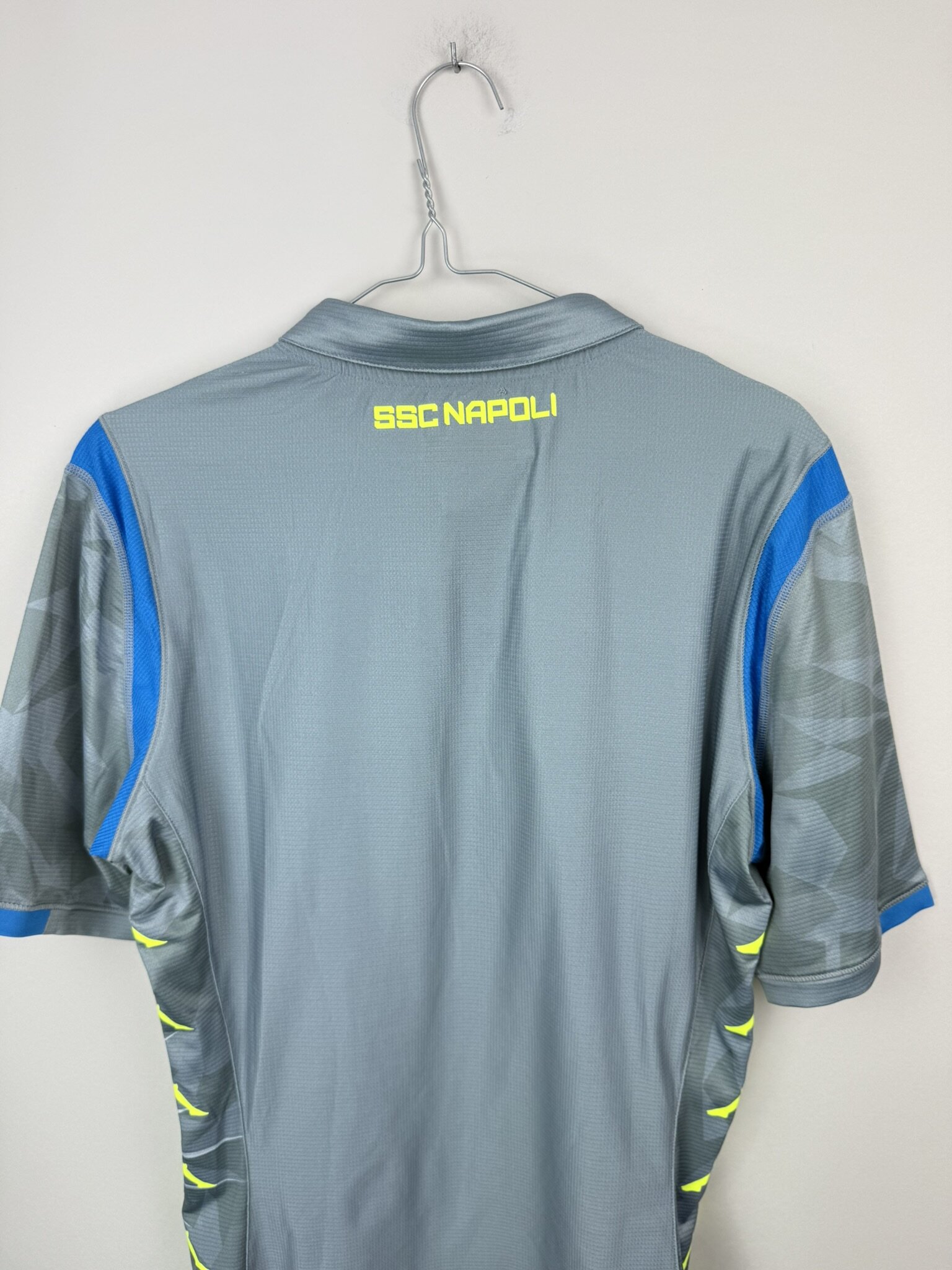 Oryginalna koszulka piłkarska SSC Napoli z sezonu 2018/19 służąca jako trzeci komplet. Przeważająca szarość, kołnierzyk i żółte oraz niebieskie wstawki, czyli Kappa w całej swojej okazałości. Klub w tamtym sezonie zajął drugie miejsce w Serie A, a w ataku szalał Arkadiusz Milik, który został najlepszym strzelcem zespołu z 17 trafieniami na koncie.