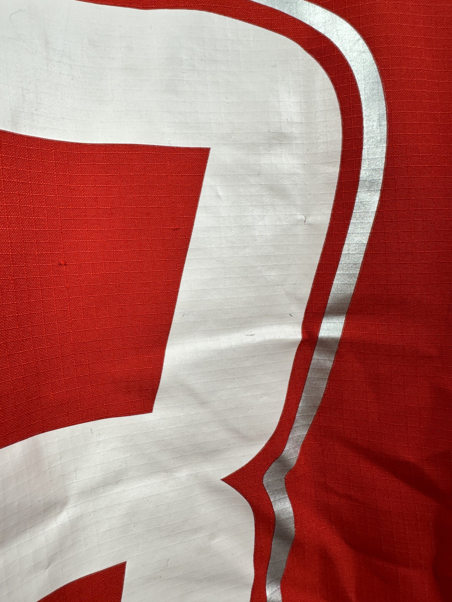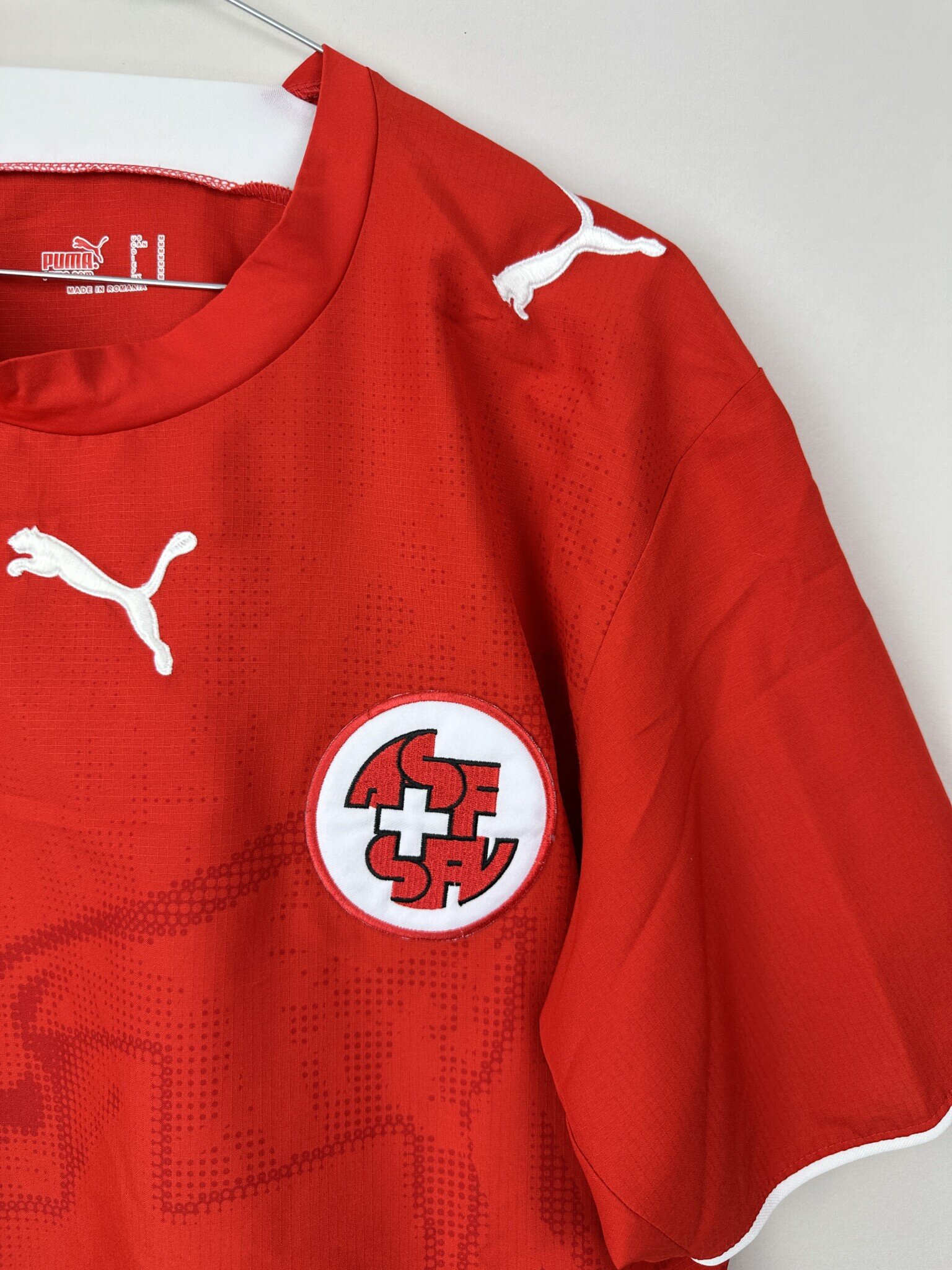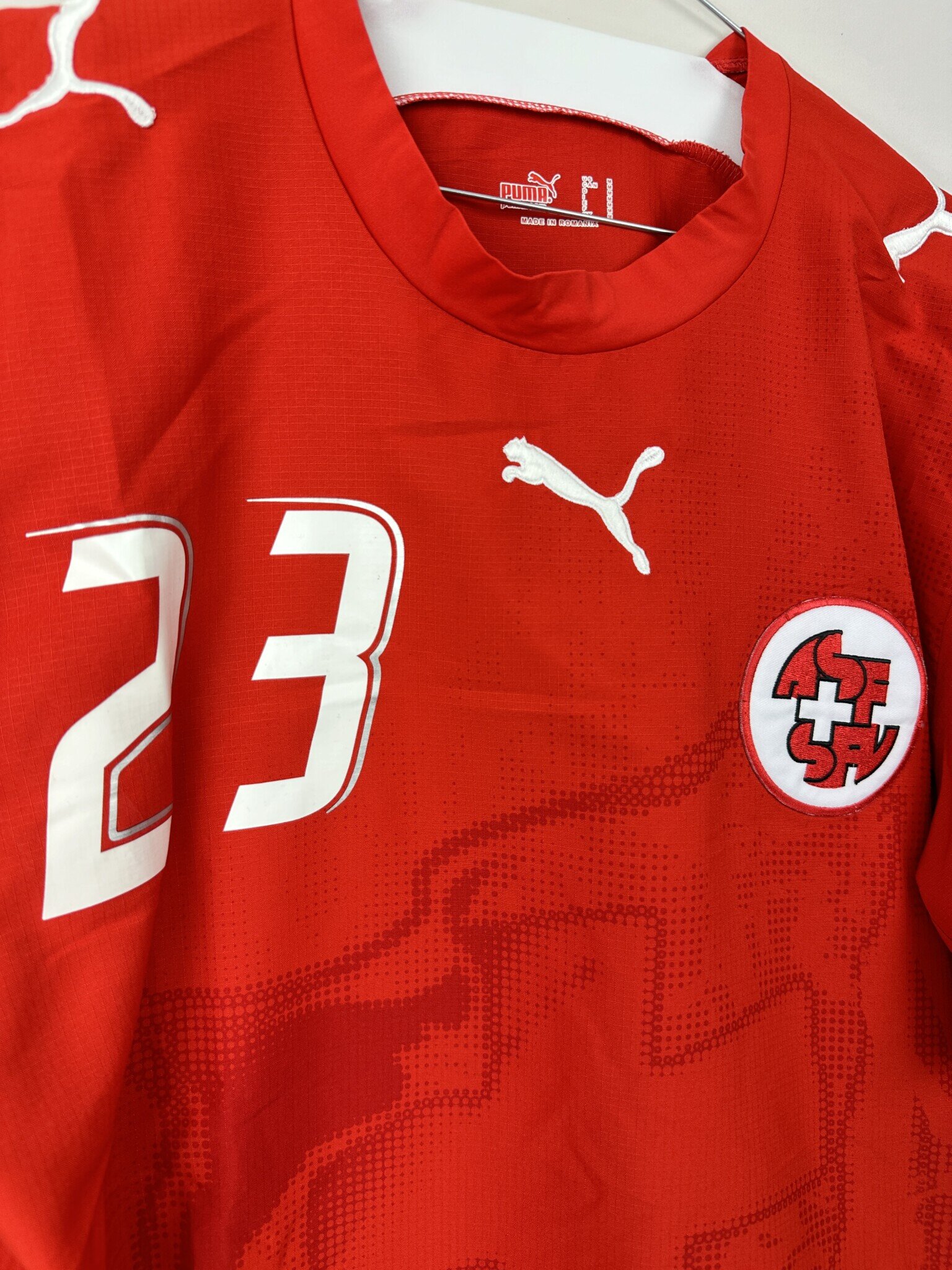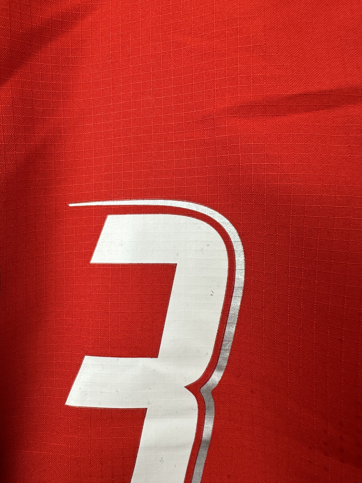 Stan: Dobry – delikatnie popękane cyfry, rozerwanie materiału na plecach oraz kilka mikro zaciągnięć.
