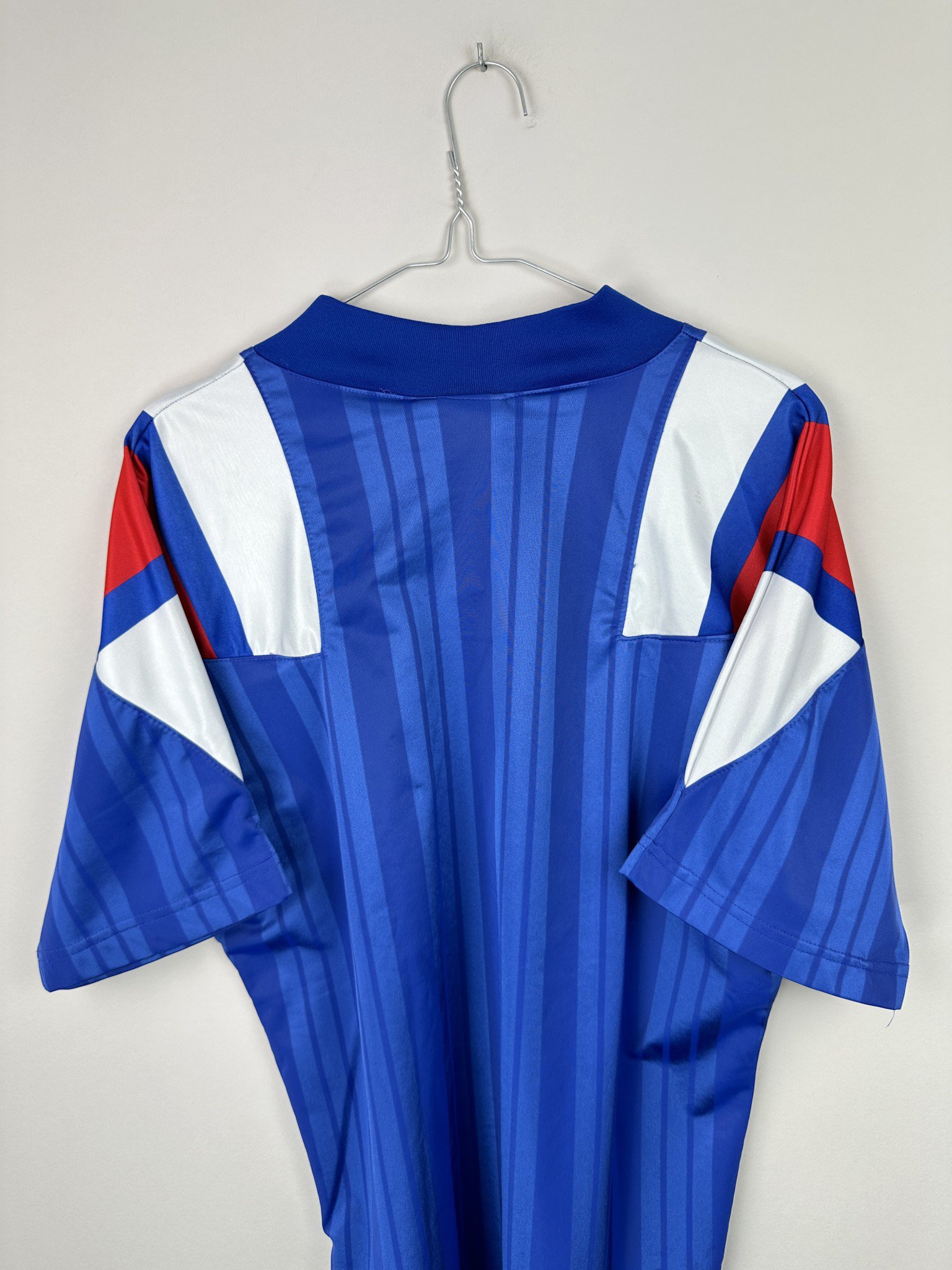 Stan: Bardzo dobry – wycięta jedna z metek na karku oraz zabrudzenie na plecach.