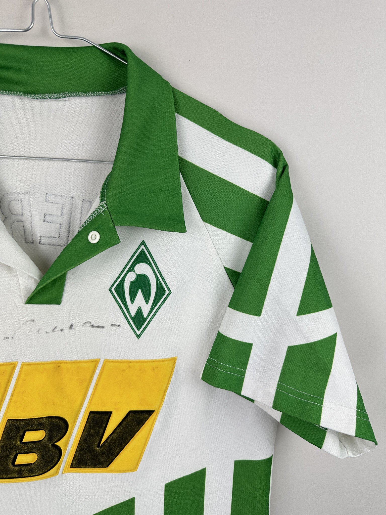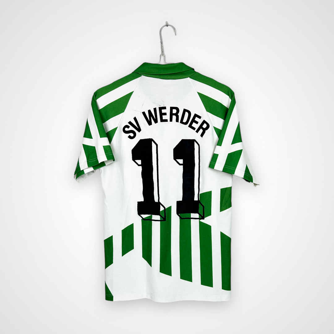 Koszulka pochodzi z okresu, w którym Werder Brema był czołowym klubem Bundesligi, z takimi zawodnikami jak Wynton Rufer, Marco Bode czy Mario Basler. Model cechuje się luźnym krojem i typowym dla tamtej dekady designem, który dziś cieszy się ogromną popularnością wśród kolekcjonerów retro koszulek piłkarskich.