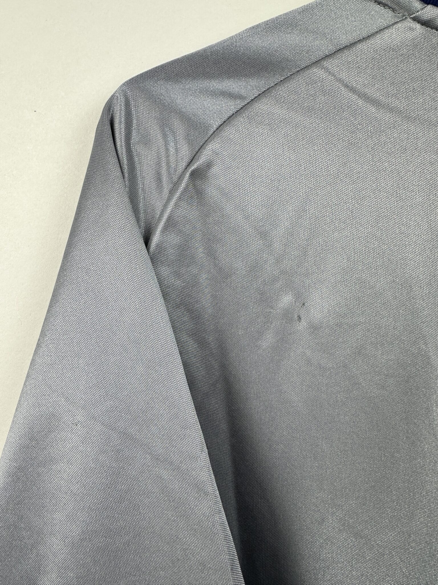 Stan: Dobry – drobne pęknięcia na nadruku sponsora oraz kilka nieznacznych zabrudzeń, zaciągnięć oraz zmechaceń materiału.