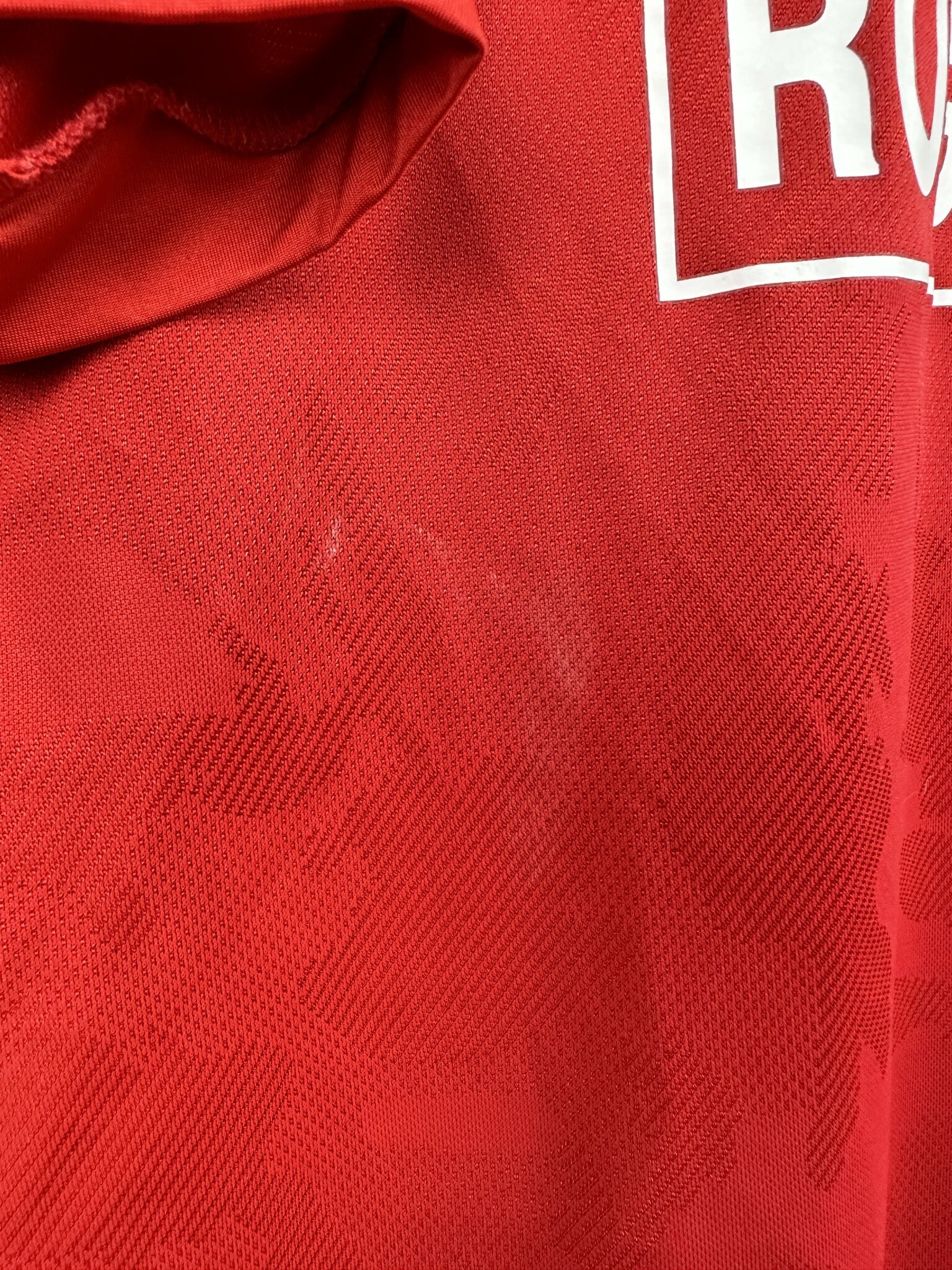 Stan: Bardzo dobry – jedno drobne zabrudzenie na froncie oraz trzy niewielkie zabrudzenia, ponadto mikro pęknięcia na nazwisku na plecach.