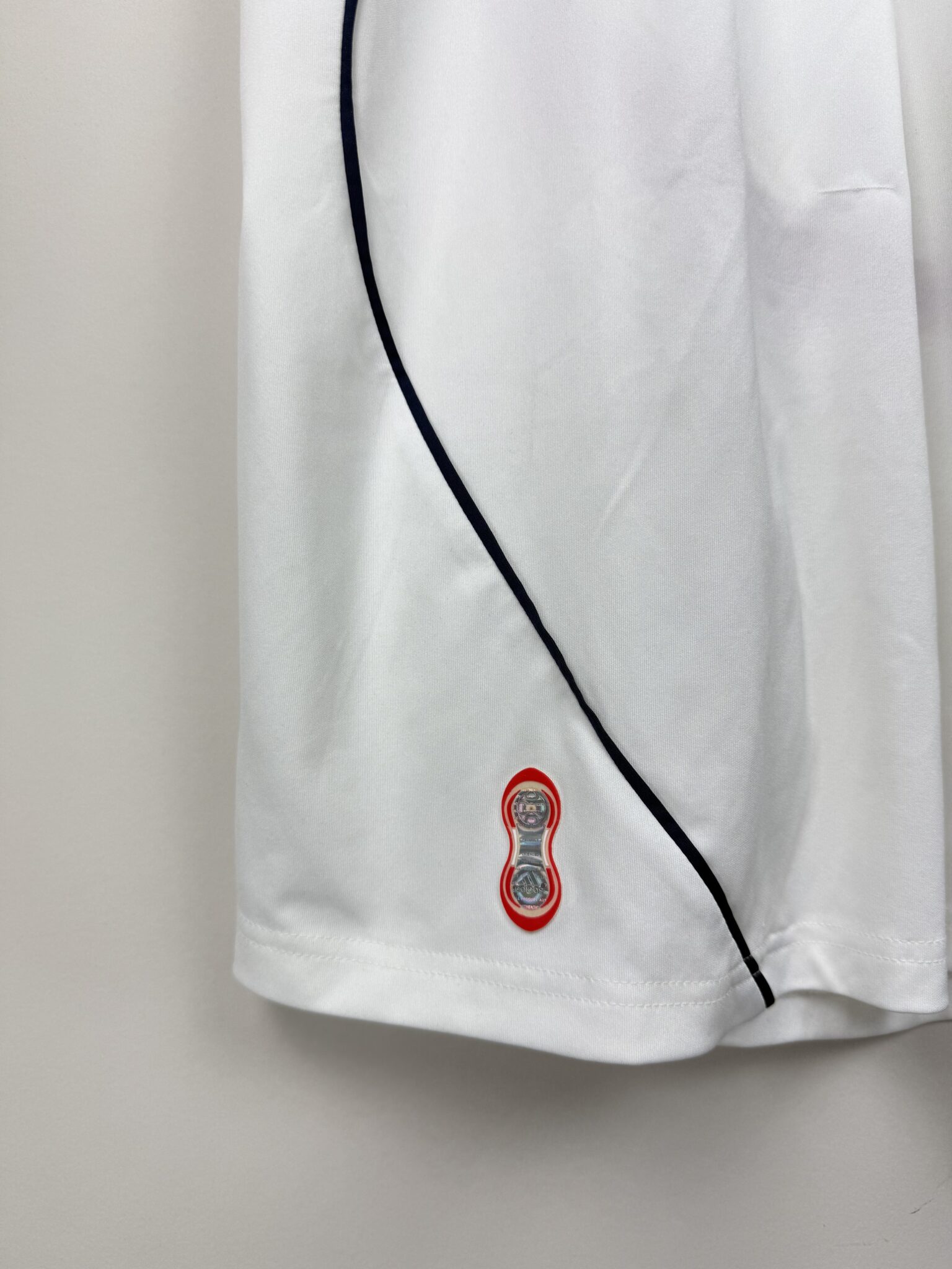 Stan: Zadowalający – nieznacznie uszkodzony nadruk sponsora na froncie, zaciągnięcie oraz mikro plamka.
