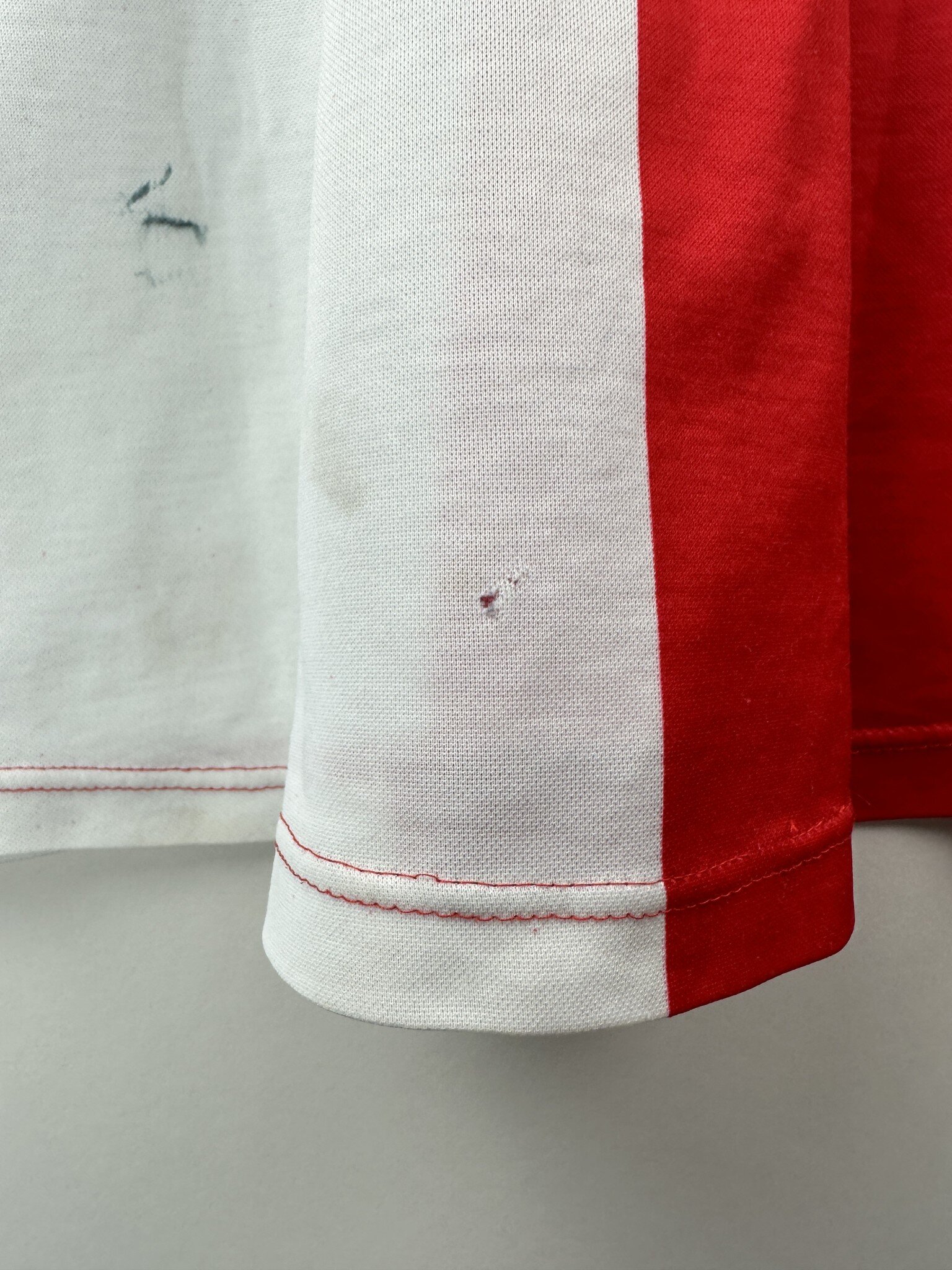Stan: Zadowalający – kilka mniejszych zabrudzeń i jedno duże na plecach oraz niewielkie dwie dziurki.