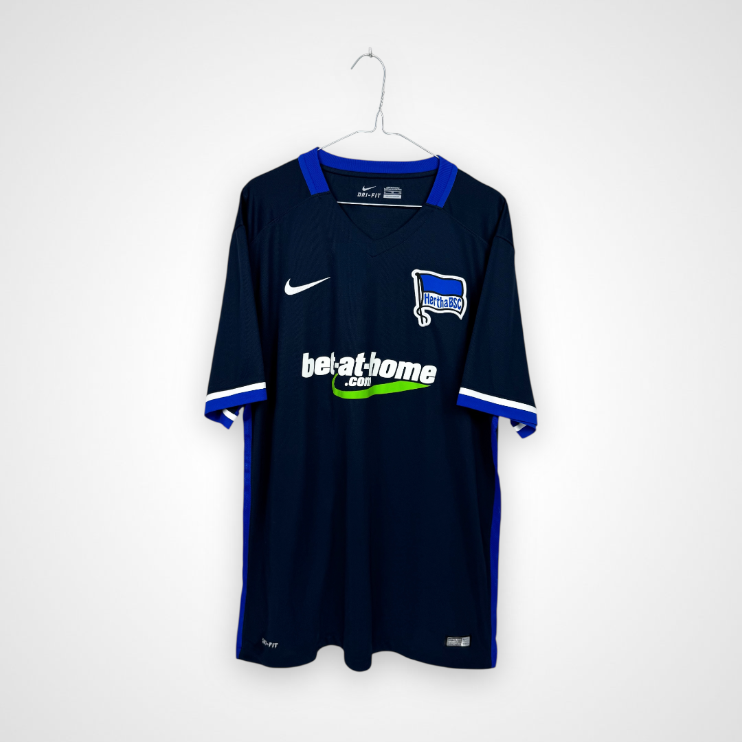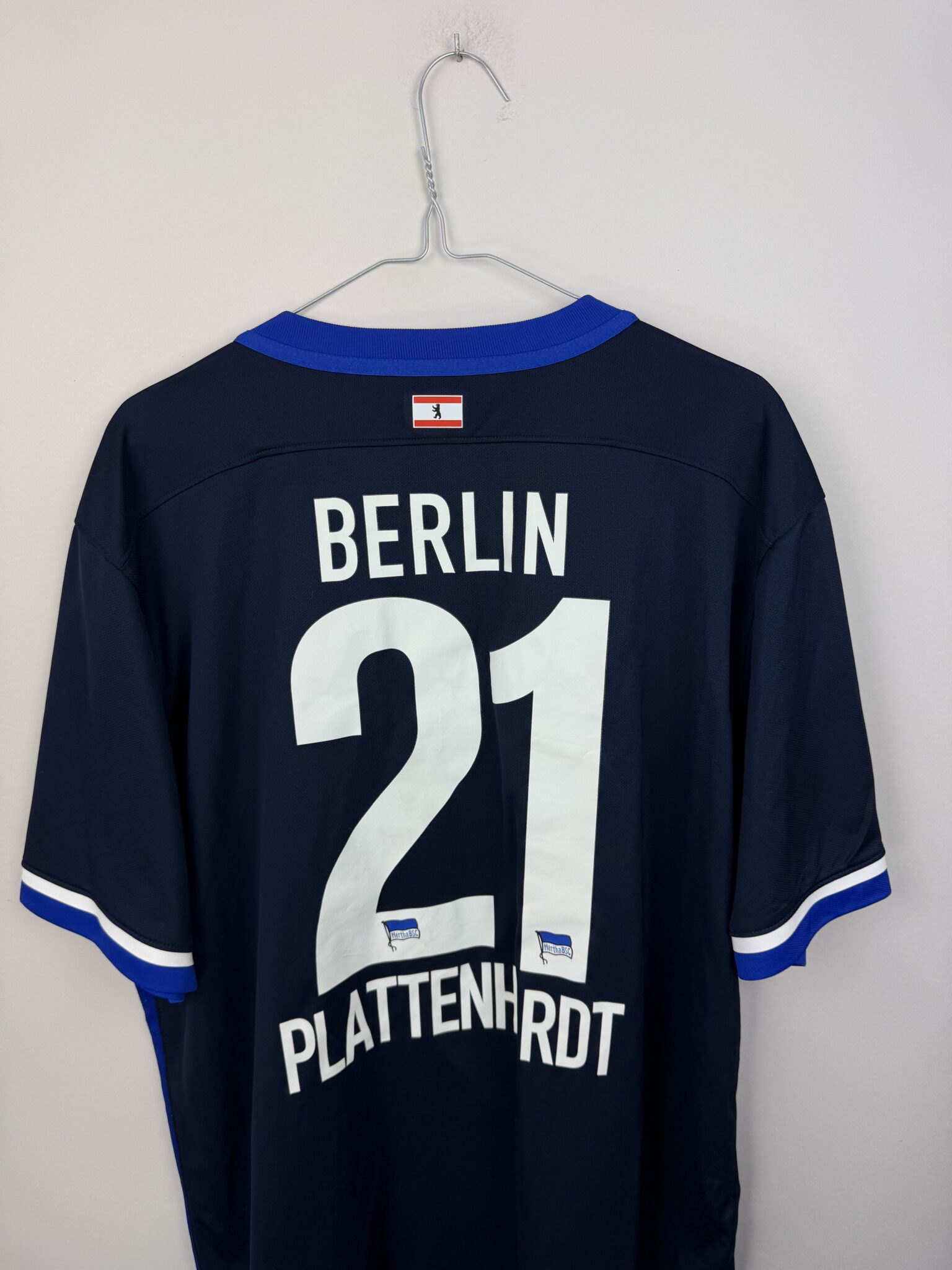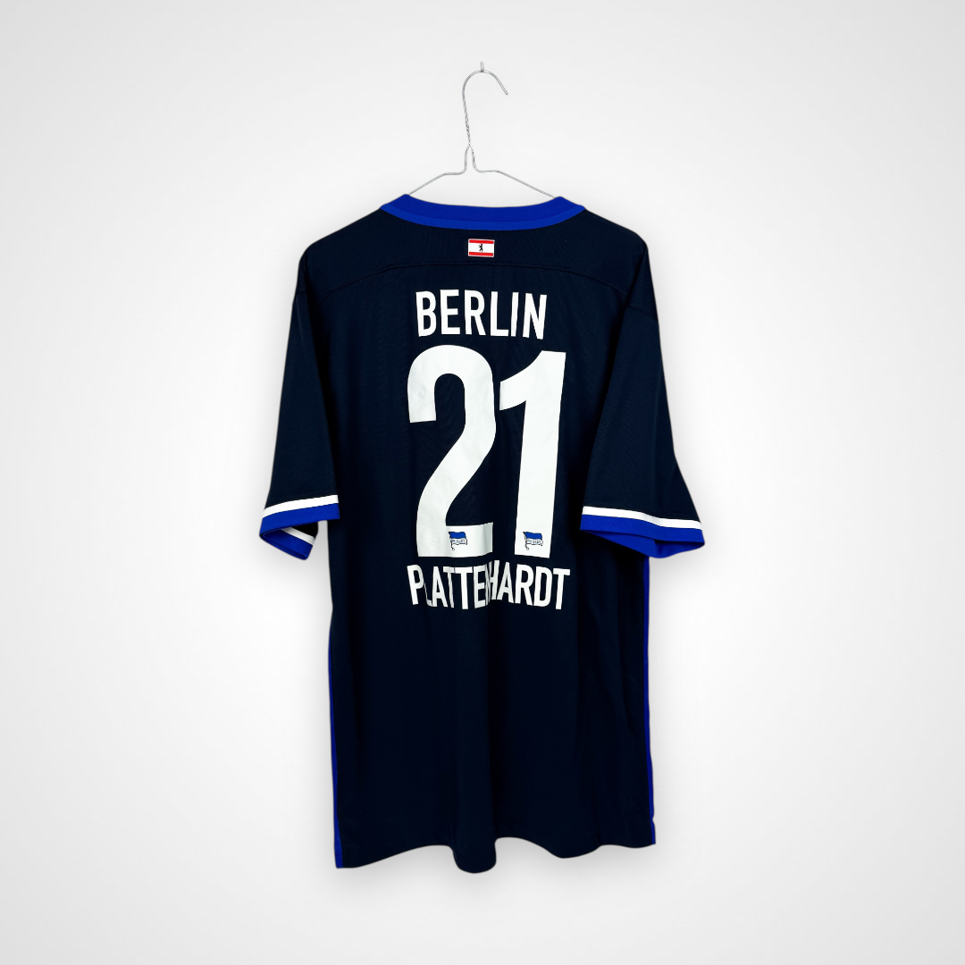 Oryginalna wyjazdowa koszulka piłkarska Herthy BSC z sezonu 2015/16 z nadrukiem Marvina Plattenhardta.