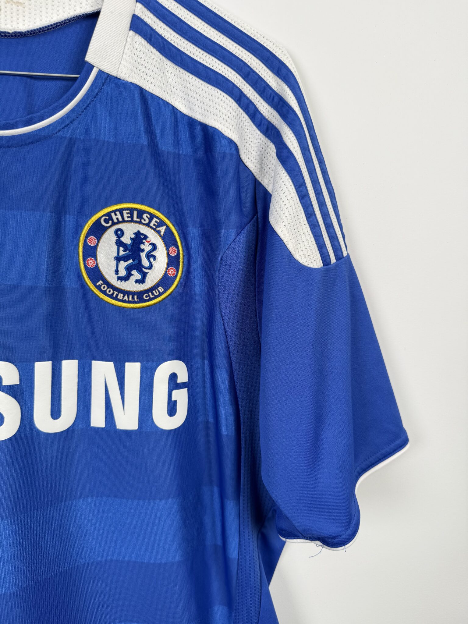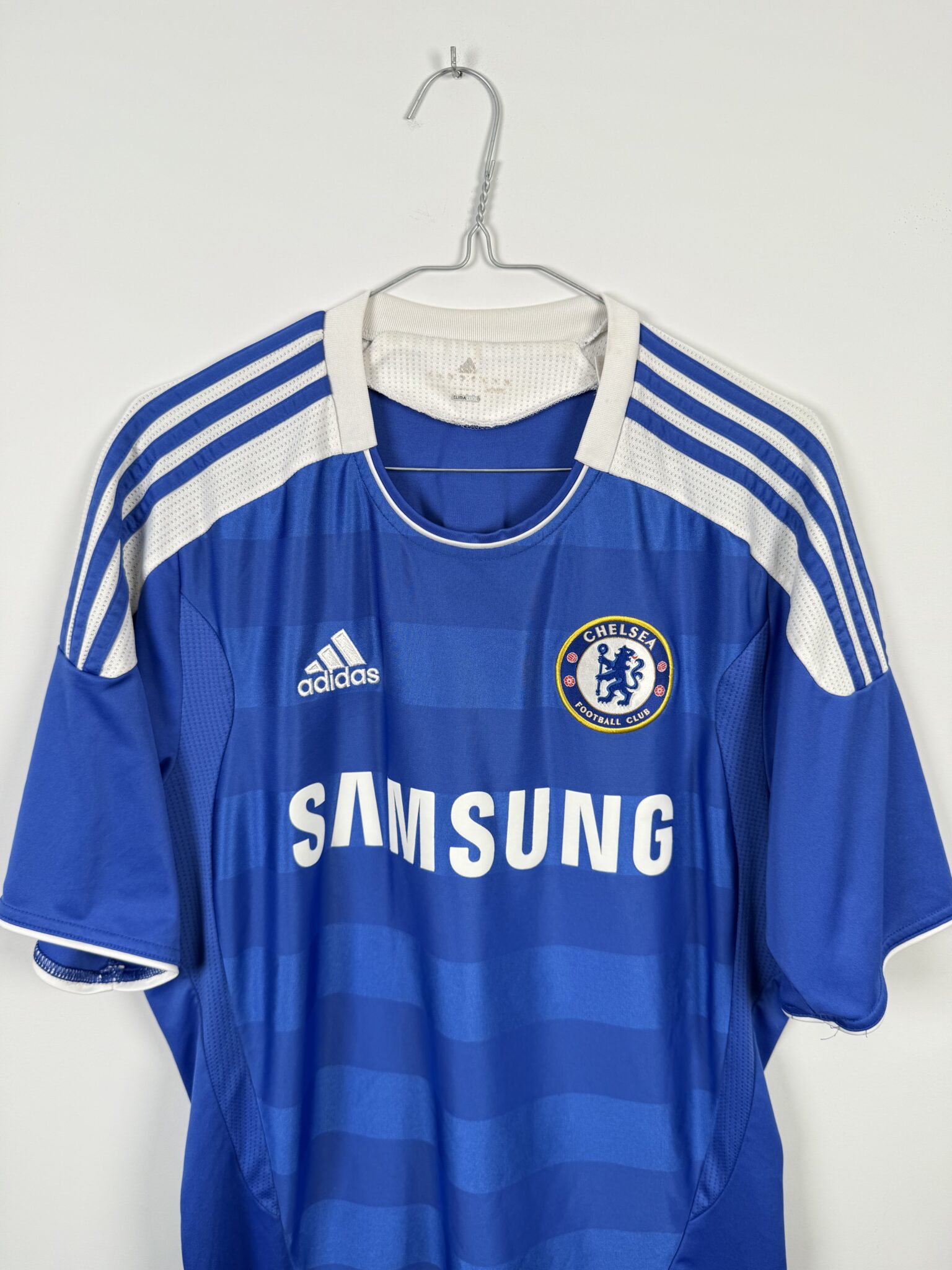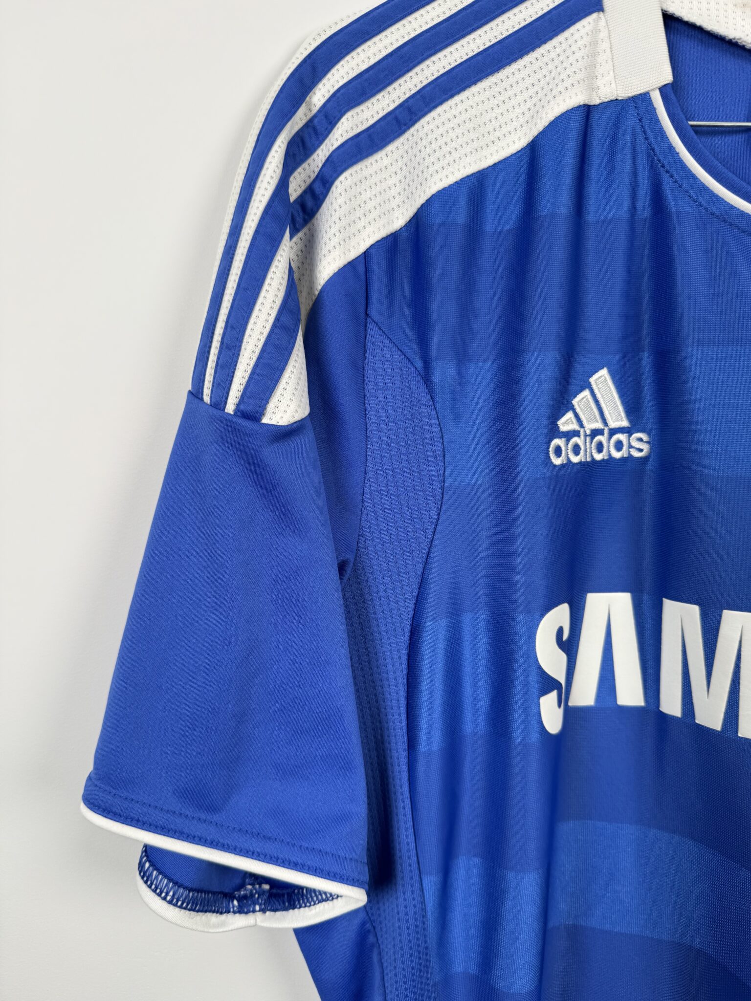 Na froncie koszulki umieszczono herb Chelsea FC, logo Adidasa oraz znak sponsora Samsung, które razem tworzą ikoniczny zestaw elementów dobrze znanych kibicom z początku drugiej dekady XXI wieku. Wykonana z materiału o właściwościach oddychających Climacool, zapewniała piłkarzom komfort i wygodę podczas gry.