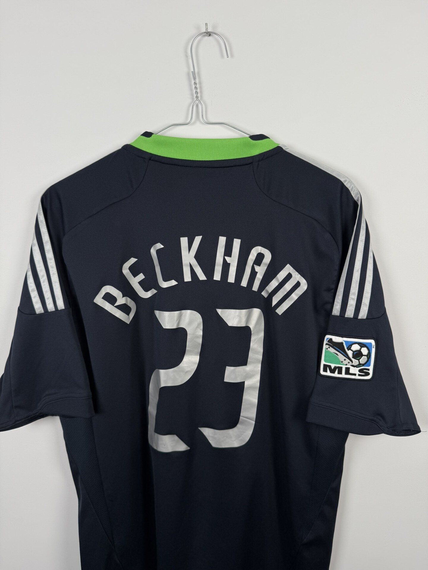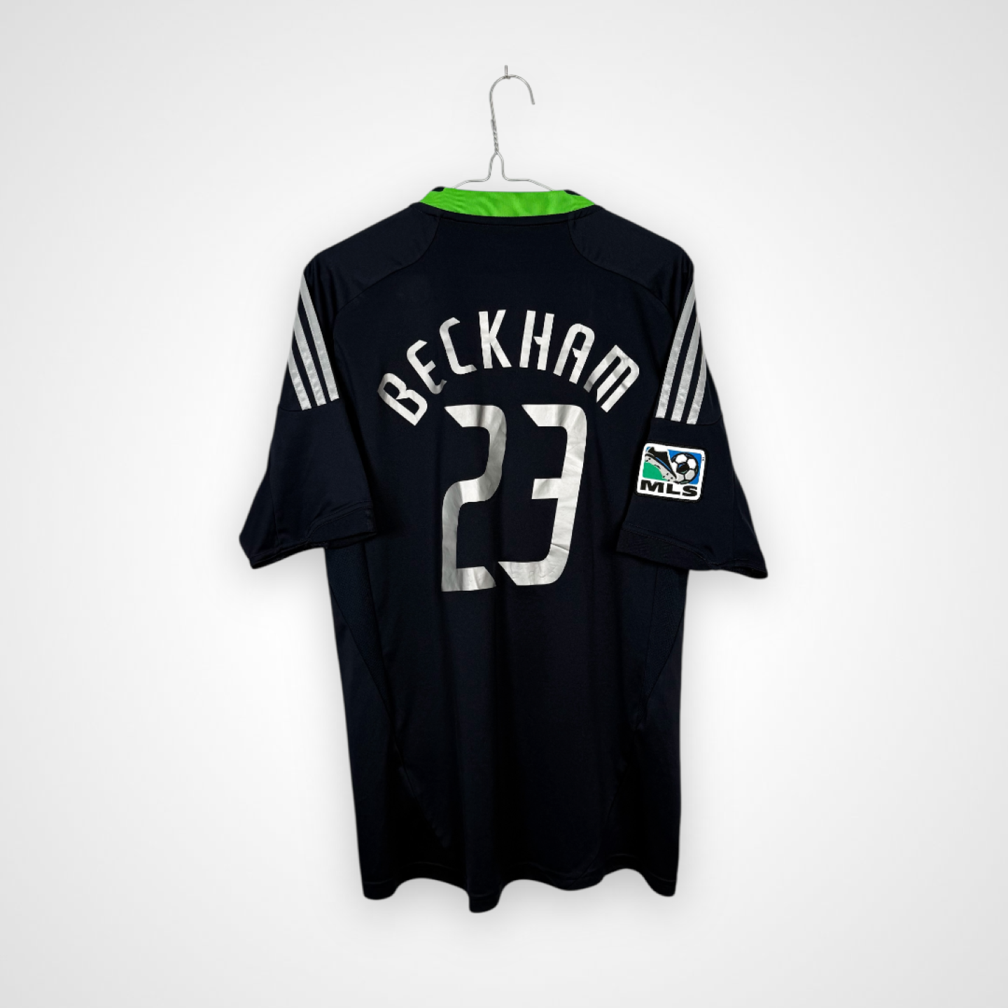 Na plecach znajduje się nadruk Davida Beckhama, jednej z największych gwiazd światowego futbolu, która w tamtym okresie reprezentowała MLS i była kluczową postacią pokazowych meczów All-Star. Na froncie umieszczono również herb drużyny MLS All-Stars oraz logo Adidasa, dopełniające nowoczesny i dynamiczny projekt.