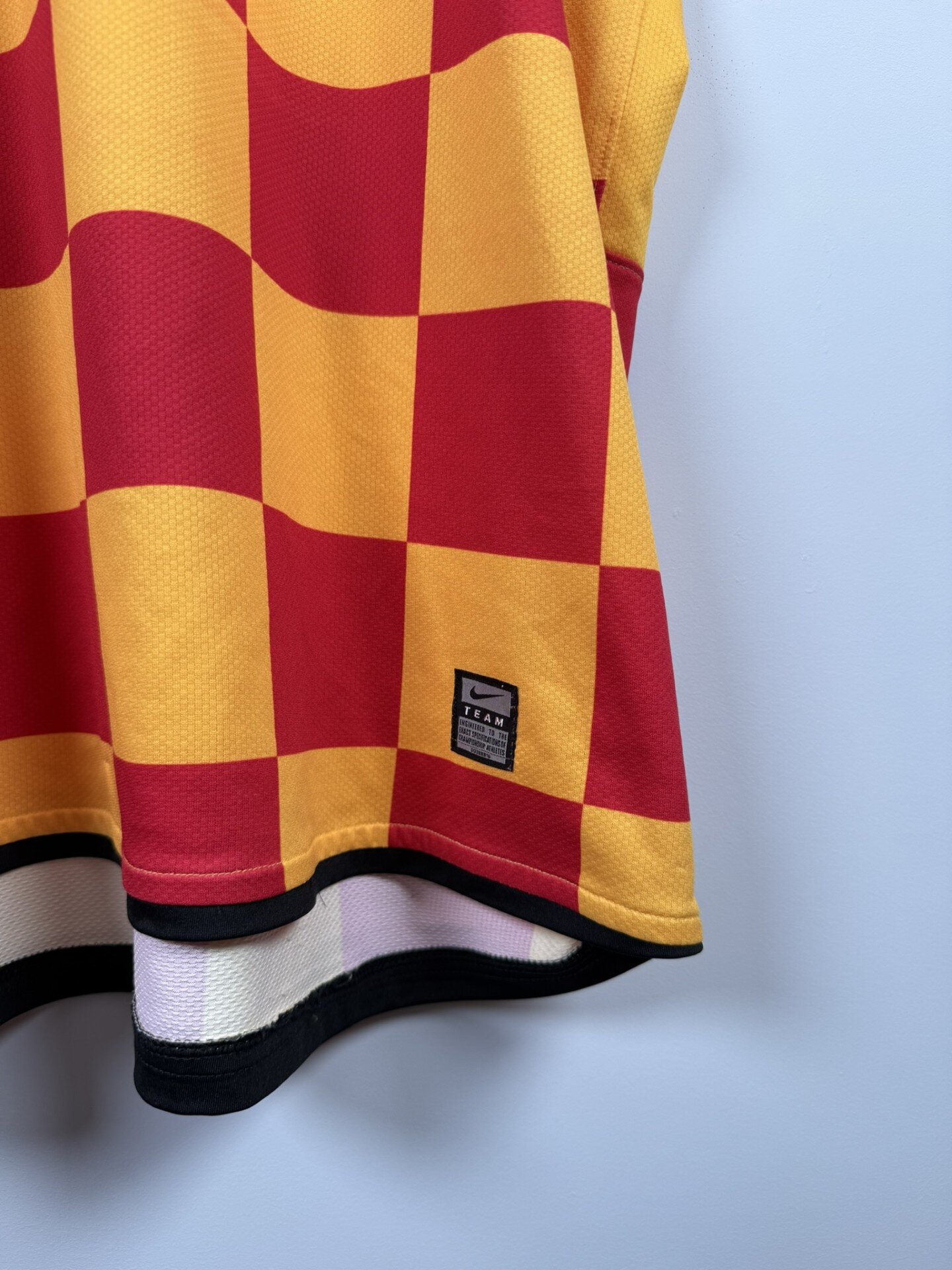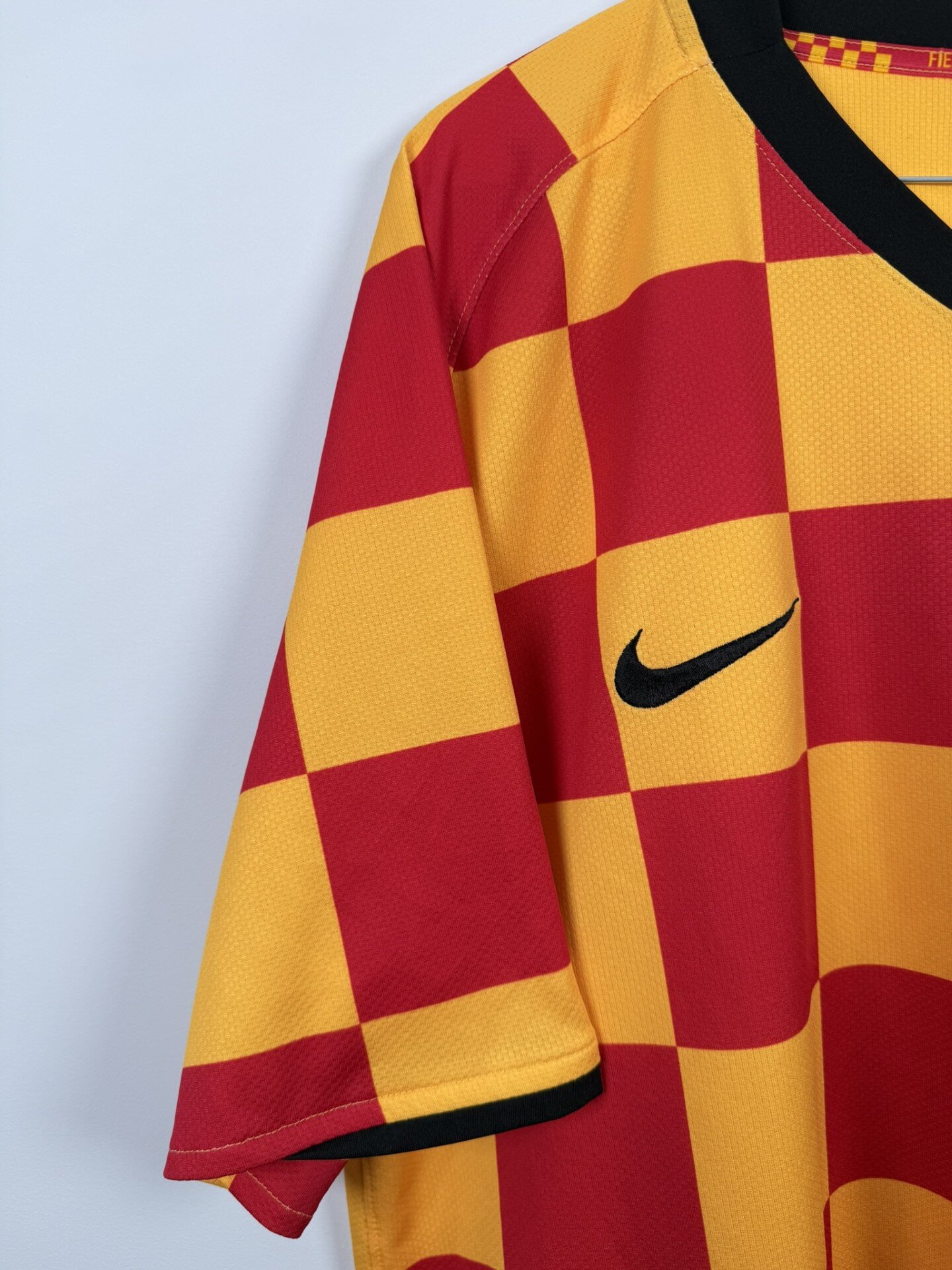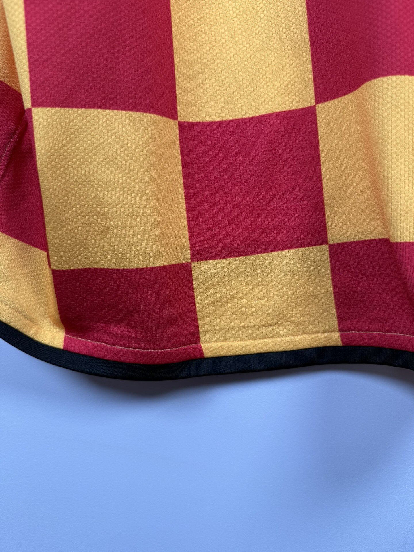 Ta oryginalna domowa koszulka RC Lens z sezonu 2008/09 to wyjątkowy projekt marki Nike, który wyróżnia się unikalnym motywem czerwono-żółtej szachownicy. To odważne i efektowne wzornictwo podkreśla klubowe barwy „Les Sang et Or”, czyniąc ten model jednym z najbardziej charakterystycznych w historii zespołu.