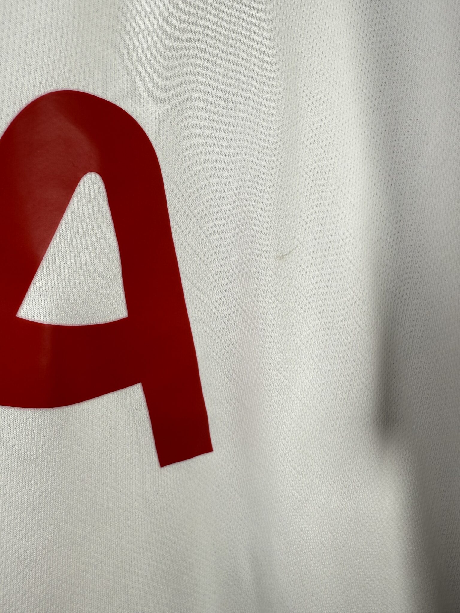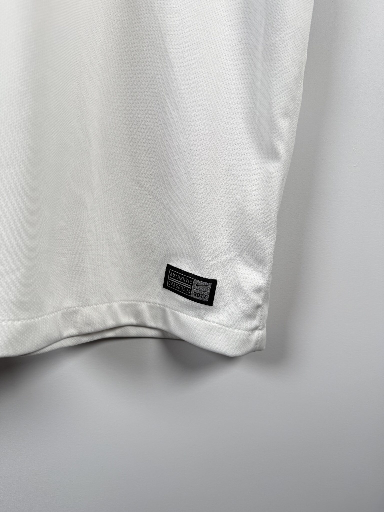 Ta oryginalna domowa koszulka Tottenhamu Hotspur z sezonu 2017/18, wyprodukowana przez Nike, to klasyczny model w tradycyjnych białych barwach „Kogutów”. Był to pierwszy sezon, w którym klub współpracował z Nike, a projekt wyróżniał się nowoczesnym, minimalistycznym designem z granatowym herbem w tarczy oraz subtelnymi detalami w tym samym kolorze.