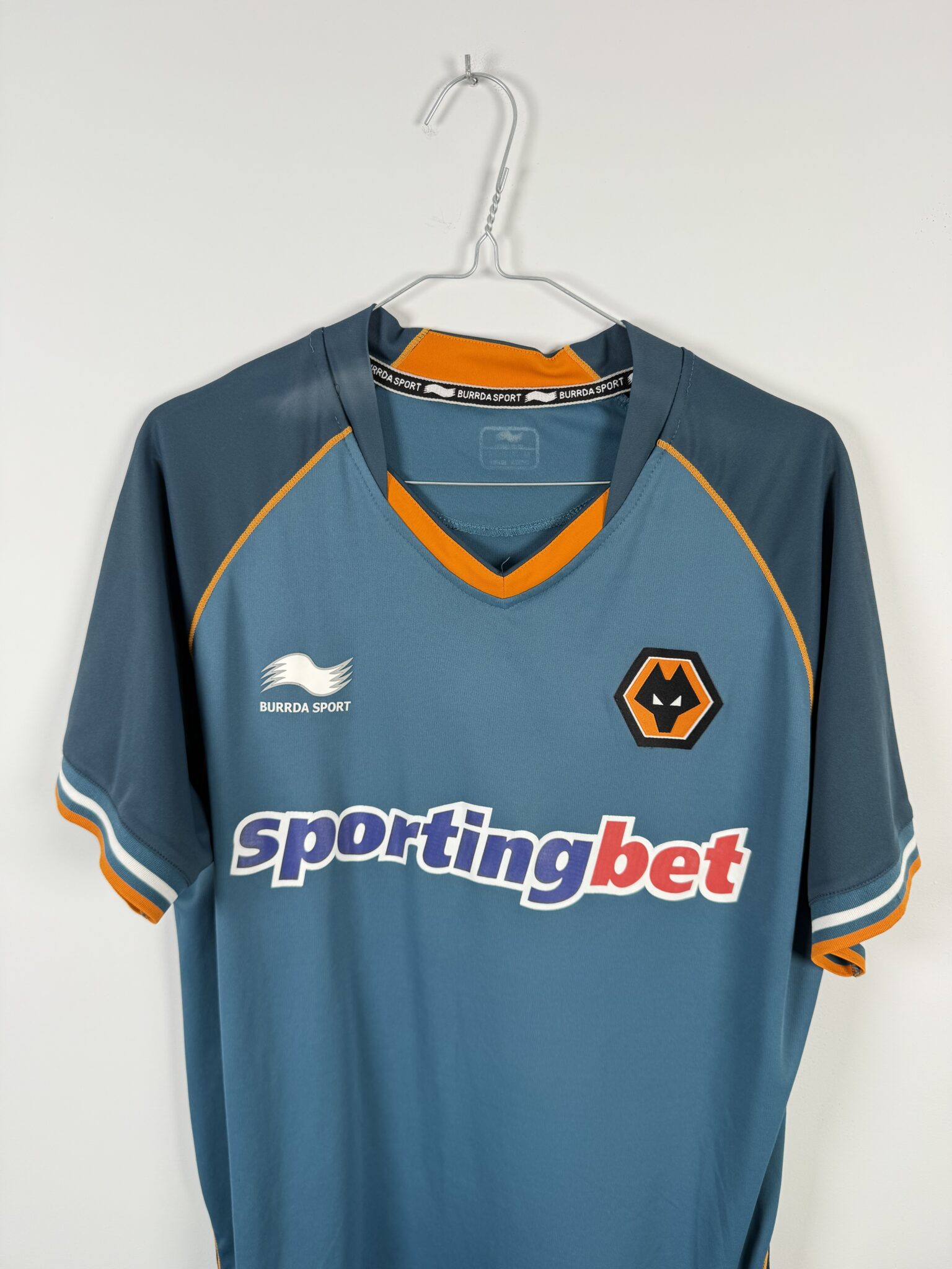 Na froncie koszulki znajdują się herb Wolverhampton Wanderers, logo Burrdy oraz znak sponsora Sportingbet, co podkreśla jej autentyczny charakter. Wykonana z wysokiej jakości materiału o właściwościach oddychających, koszulka zapewniała piłkarzom komfort i swobodę ruchów w trakcie intensywnych spotkań ligowych.