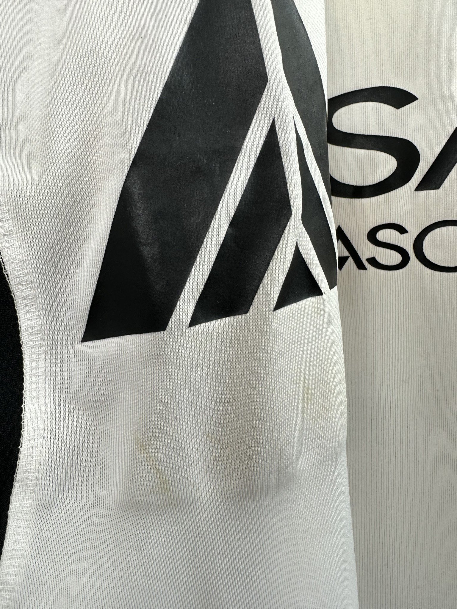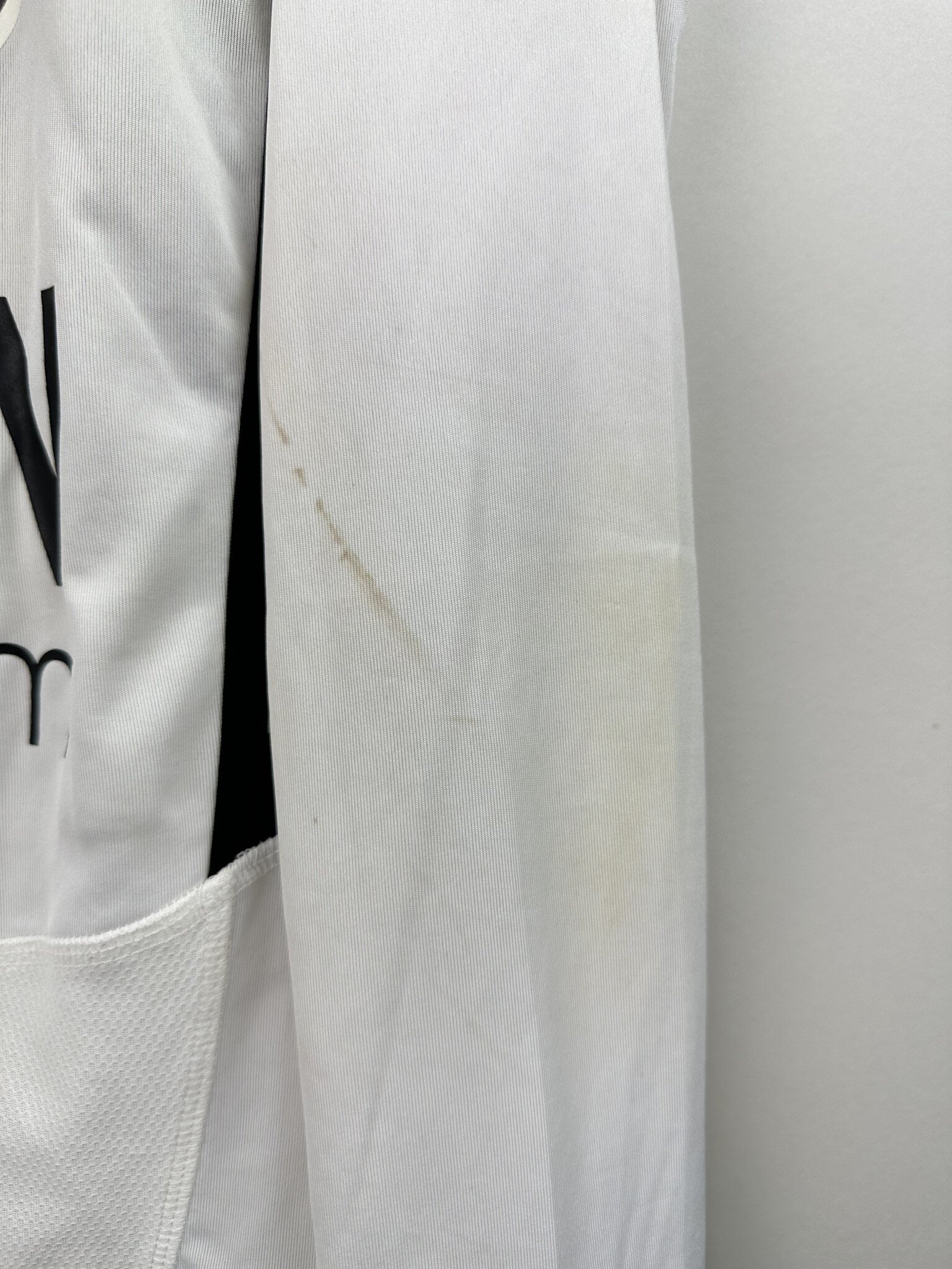 Stan: Zadowalający – kilka zabrudzeń oraz zniszczony nadruk sponsora na rękawie.