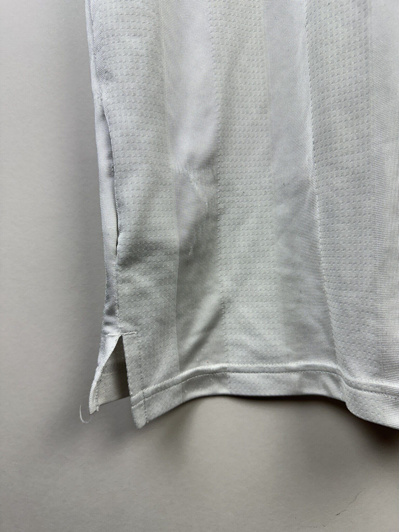 Stan: Zadowalający – sporo mikro zaciągnięć oraz zabrudzeń zarówno na froncie jak i z tyłu koszulki.