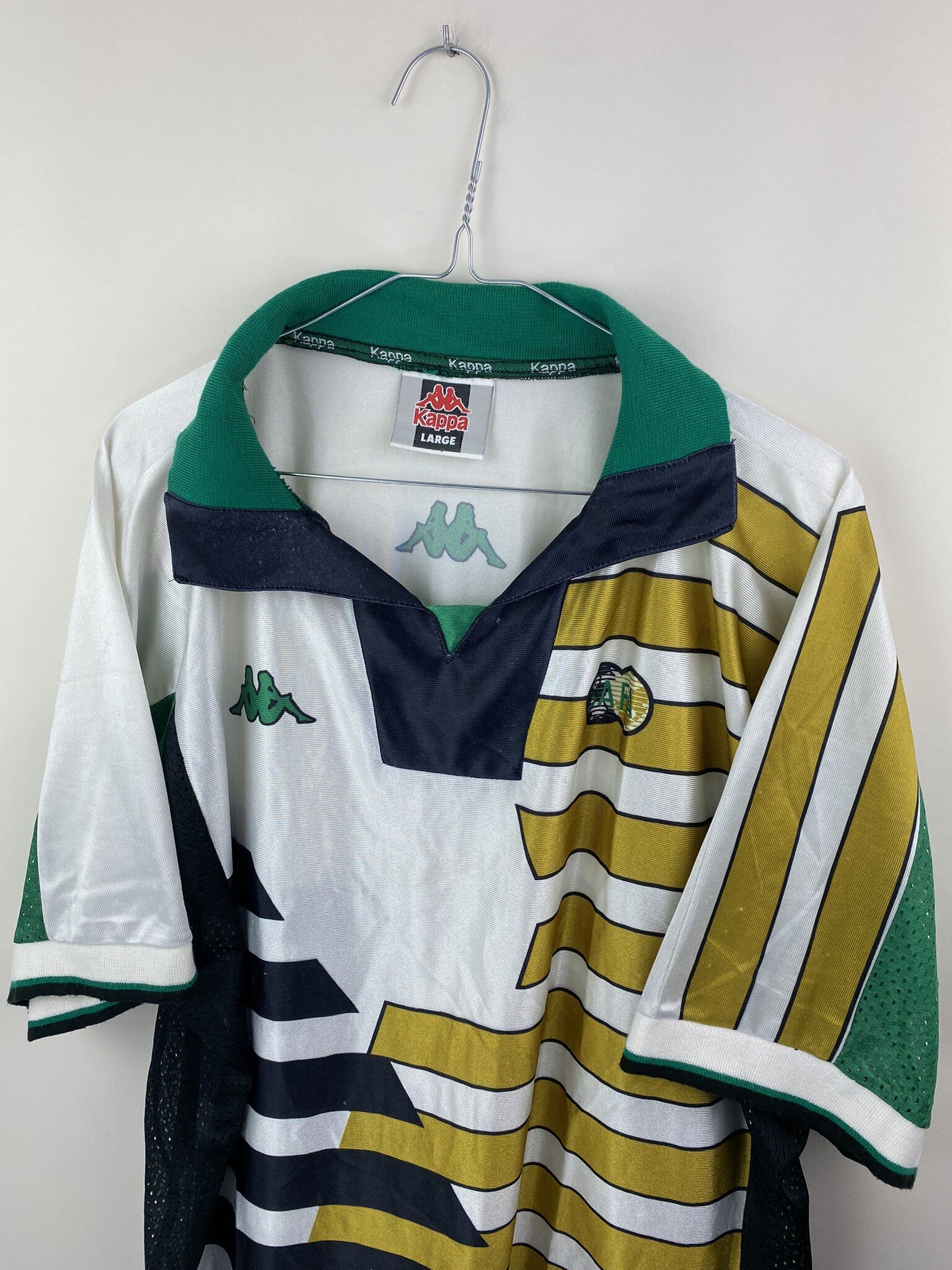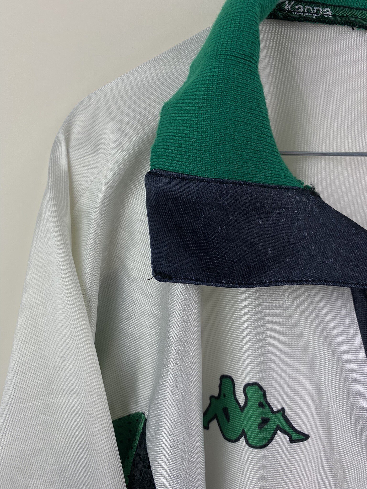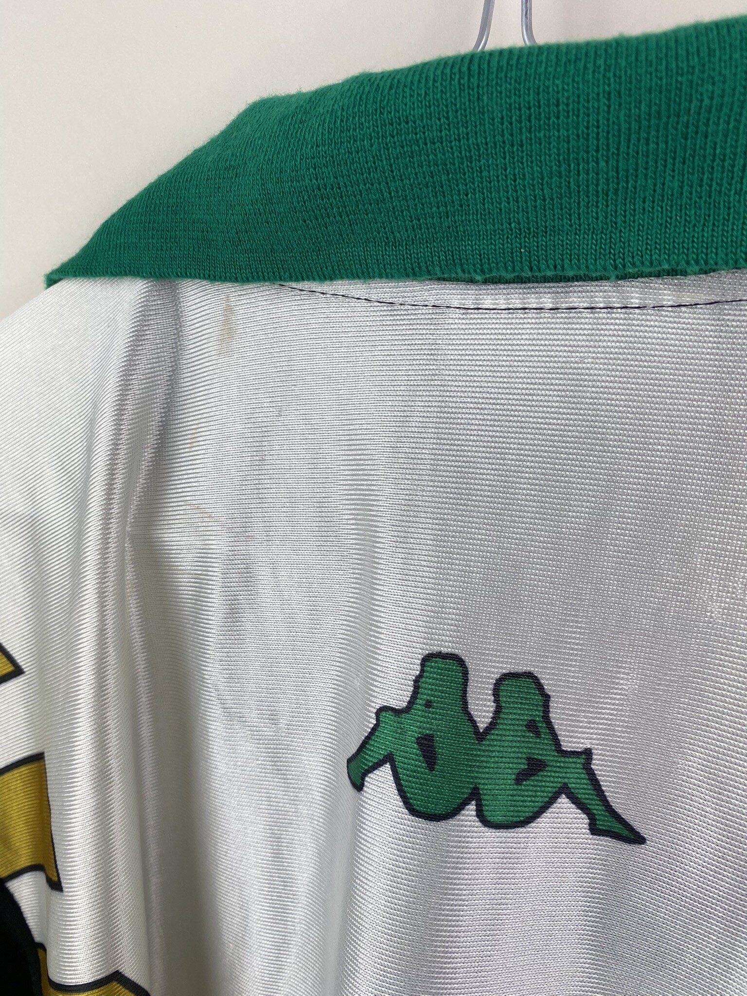 Stan: Dobry – koszulka posiada nieznaczną ilość drobnych zaciągnięć, kołnierz jest delikatnie zmechacony, a na karku jest drobne zabrudzenie.