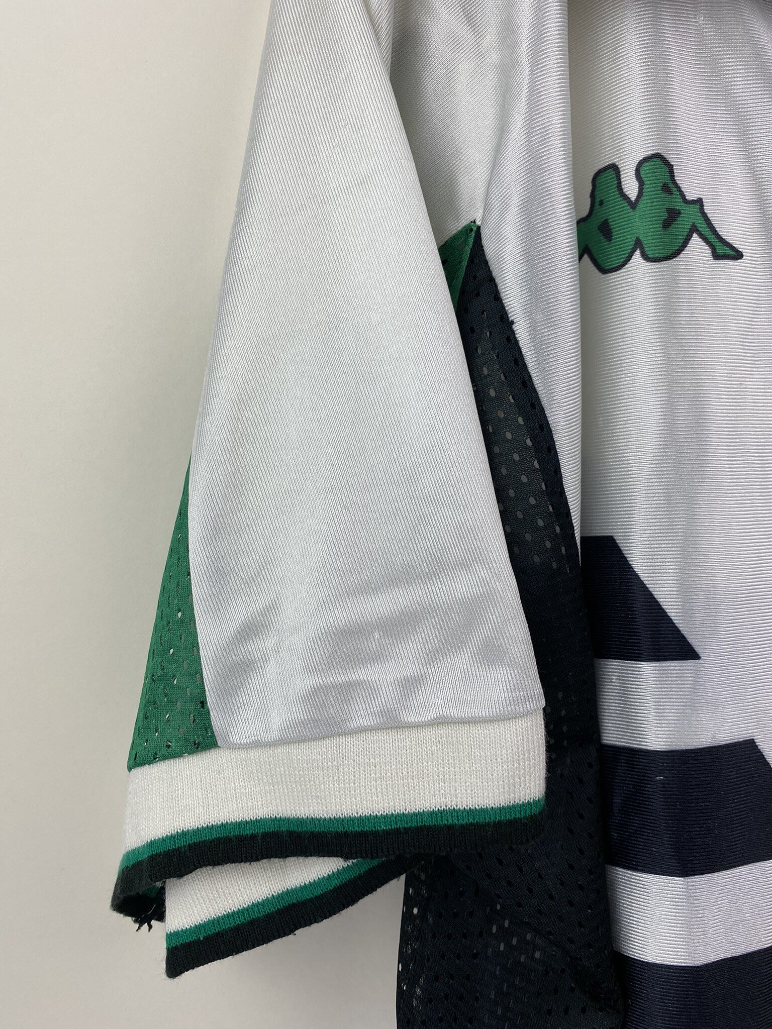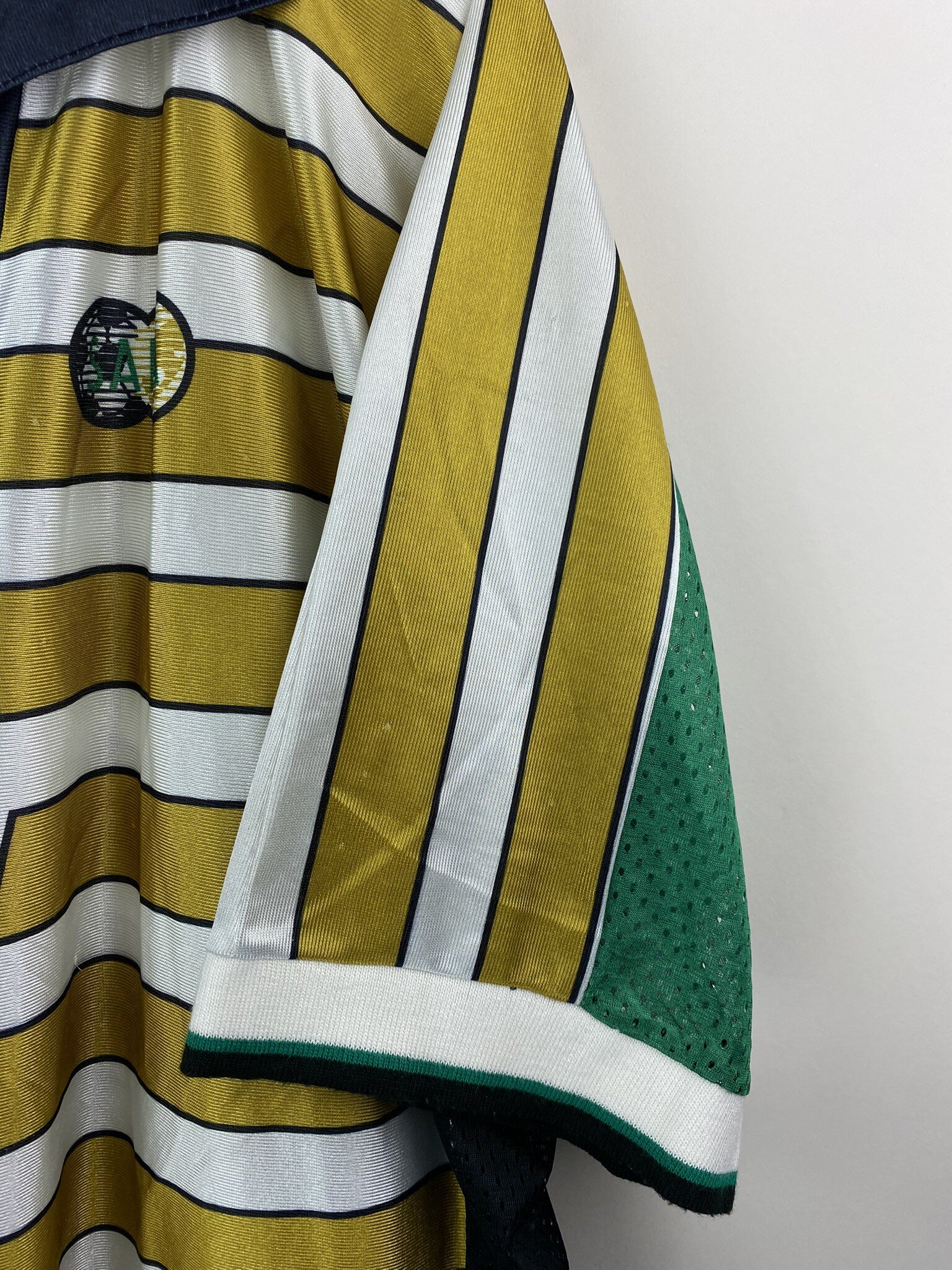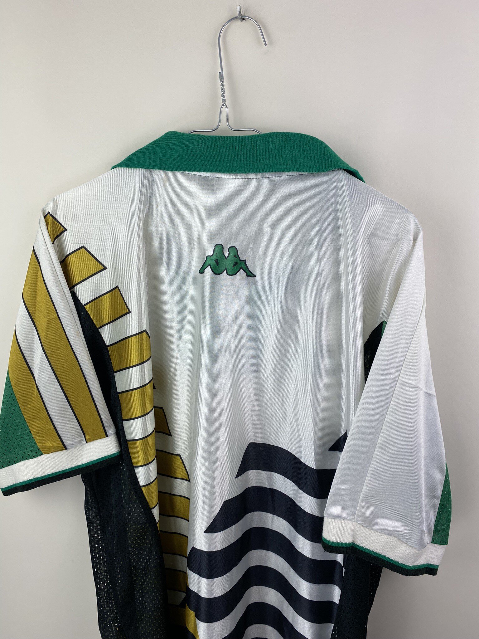 Stan: Dobry – koszulka posiada nieznaczną ilość drobnych zaciągnięć, kołnierz jest delikatnie zmechacony, a na karku jest drobne zabrudzenie.